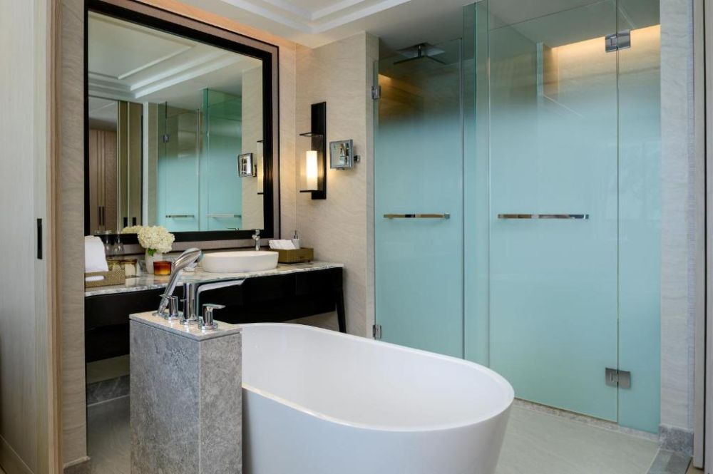 В комплектации номера балкон с видом на бассейн, двуспальная кровать, кондиционер, телевизор, сейф, телефон, мини-бар. В числе прочих удобств беспроводной Интернет и набор для приготовления чая и кофе. Ванная комната с душем/ванной, феном и туалетно-косметическими принадлежностями.