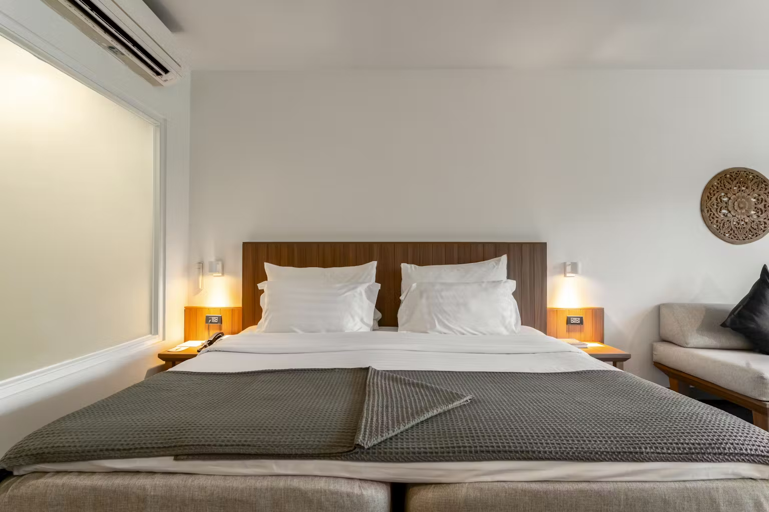 Отличное расположение прямо в самом центре пляжа Камала, легкая прогулка ко всему необходимому и множество ресторанов. Это было не занято, когда мы посещали в сезон дождей, но все еще оживленно. Курортные территории фантастические, ухоженные сады и выбор прекрасных бассейнов. Наш номер Гранд Делюкс был немного подавляющим по сравнению с местами общего пользования. Как уже упоминали другие, номера, похоже, нуждаются в определенном обновлении. Кондиционер работал хорошо, но довольно шумно. Напитки и еда очень хорошая цена и хорошее разнообразие.