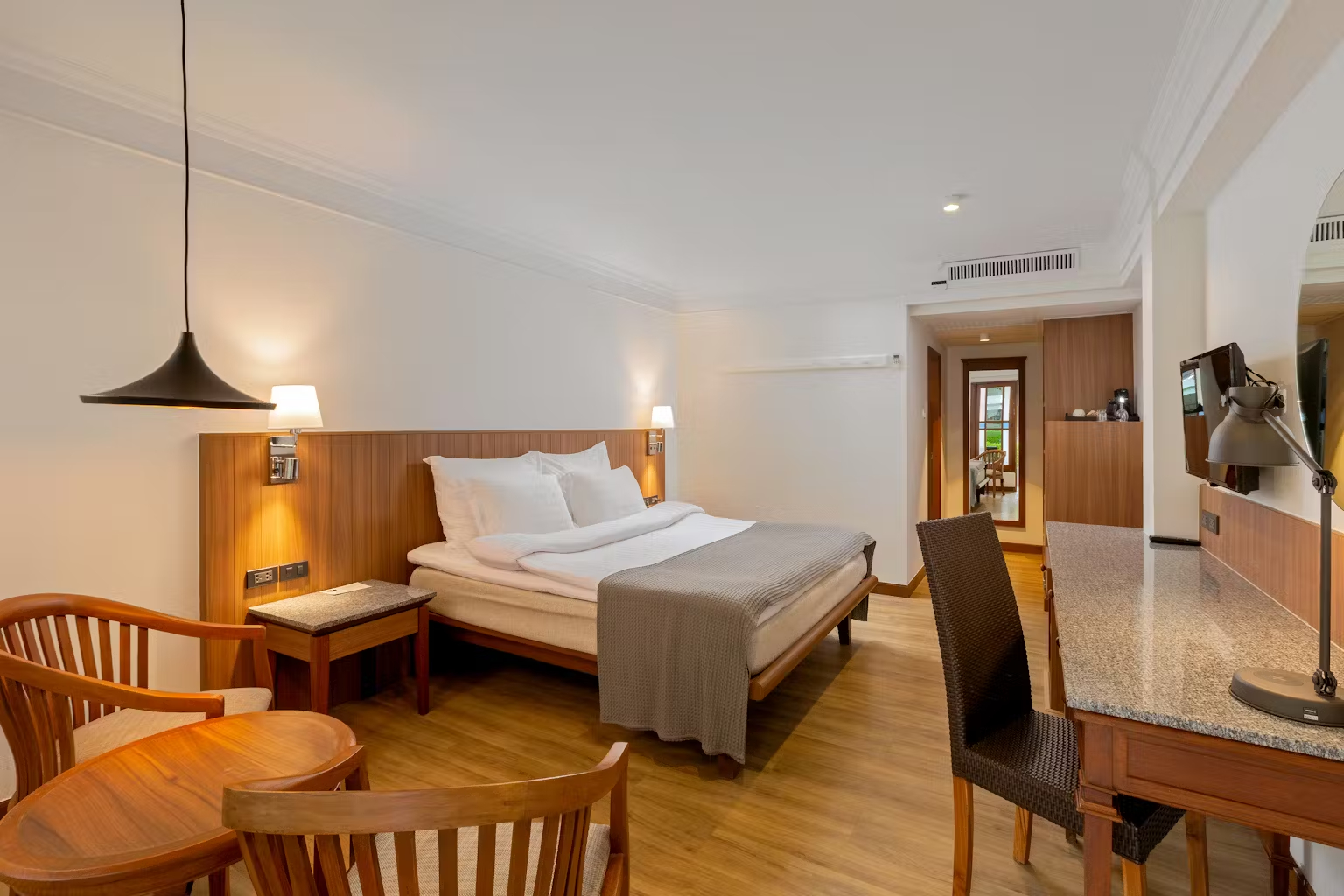 Превосходное место для отдыха, с тишиной и покоем и спокойной атмосферой. Food была высокого уровня и разнообразна на любой вкус. . Особенно выделялся завтрак. Номера просторные и безупречно чистые (уборка в номерах 6104 и 6106 заслуживает похвалы) . Все сотрудники полезны, вежливы и заботливы. Нас особенно впечатлили услуги, предоставляемые Fanta и Puangpet Намваном, Каром и стажером Гергулом, достигшими высоких стандартов обслуживания. Курорт хорошо расположен недалеко от пляжа и находится недалеко от крупного центра Пантонга. . гавань для подарочных покупок.