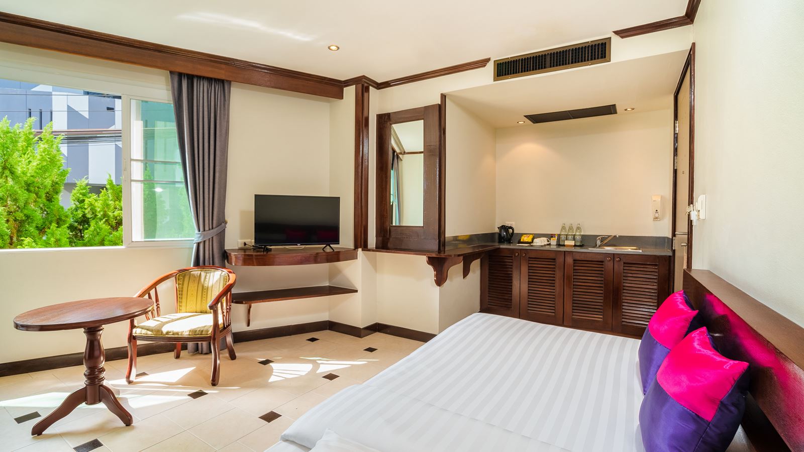 Отдыхали с мамой в этом отеле с 24 января по 3 февраля. Чудесный отель, оставил только положительные эмоции. Жили в 5 корпусе, он находился не очень высоко, поэтому подниматься было не сложно. Отель находится между двух пляжей. До Каты 5 минут пешком, до Ката Ной 7-10 минут. В номере было все необходимое для проживания: тапочки, халаты, мыльные принадлежности. Вся связь была через WhatsApp. Очень удобно. Вай фай работал хорошо. Убирались каждый день, постель раз в три дня. Ходили на завтраки. Все было очень вкусным. За 10 дней не приелось. Кофе из кофемашины, свежие фрукты, омлеты, сосиски, беконы. Из минусов последние 3 дня не работал телевизор. Сказали что сломана антенна на крыше и на этом все. Но мы особо не расстроились. Плюс наш номер был смежным номером с соседним и разделялся только дверью, поэтому было сильная слышимость от соседей. Но если брать в общем то отдых нам понравился. Отличный отель, доброжелательный персонал, с радостью вернемся еще раз!
