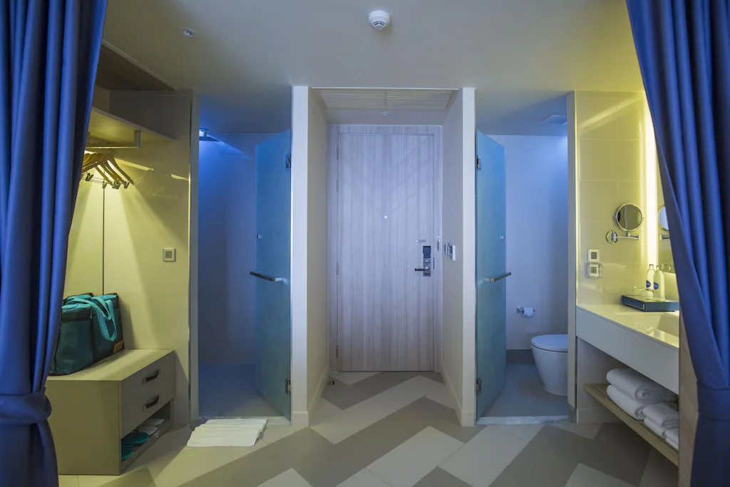 Отель очень красивый! Персонал превосходный, все доброжелательные и позитивные! Bank просто супер, очень позитивный! Сделал вкусные коктейли, когда мы были в бассейне вечером) Завтраки превосходные, очень большой выбор блюд и разные вариации яиц. Я ем почти одно и тоже на завтрак, но удалось попробовать блюда от шефа. Очень классно, что можно приготовить фреш. Очень вкусный кофе! Что на завтраке из кофе машины, что капсулы в номере! Очень вкусно пахнут банные принадлежности. К сожалению, есть и но. У нас был медовый месяц и мы об этом предупредили. Я видела красивые фотографии в отзывах и думала, что нам сделают так же. Выложить просто буковки honey moon. Так же мы прилетели 25, а забронирован номер был с 24. Думала, что раз одну ночь пропускаем, то нам красиво украсят номер. Этого не было :( Путь до отеля немного сложный, в горку. Не подойдет для пенсионеров. Так как горка оооочень крутая! На пляж возит трансфер с 9 (несколько раз) и с пляжа забирает тоже машина в 10:00 и 16:00. Это очень удобно. Так как в жару бывает тяжело вернуться в горку. Нас горка эта не смущала, но иногда конечно уставали ноги, забивались мышцы. Хотя идти буквально по этой горке пару минут. До пляжа пешком минут 7. Немного пахнет сыростью в лифтах и номере. Дизайн отеля очень приятный. Красивые локации для фото. Бесконечный бассейн. Игровая комната в которой есть аэрохоккей и настольный футбол. Также спортивный зал, очень хорошего уровня. Мы скорее всего вернемся сюда, так как красота отеля, персонал и виды затмевает все остальное :) Спасибо всему персоналу, за наш позитивный отдых. А мы поехали дальше <3