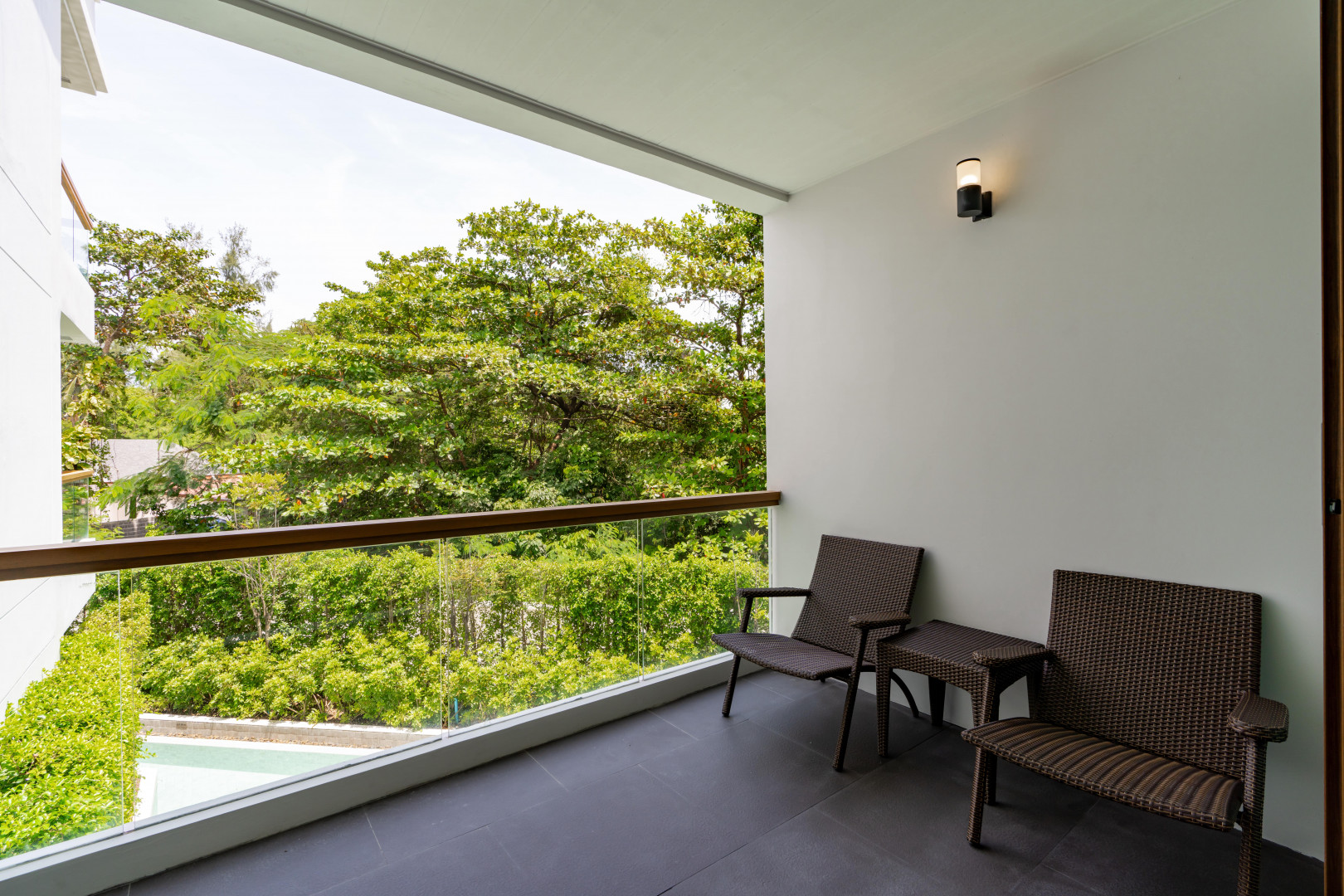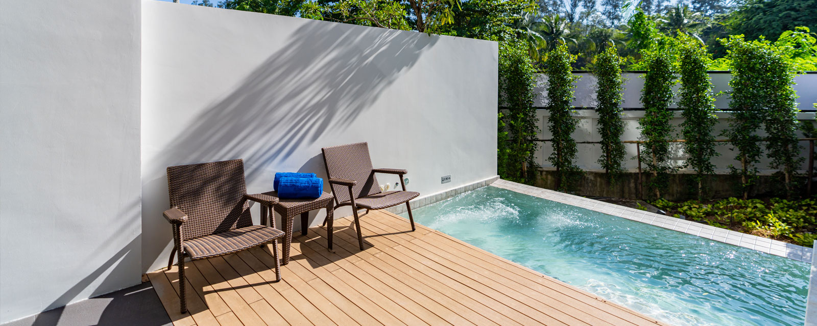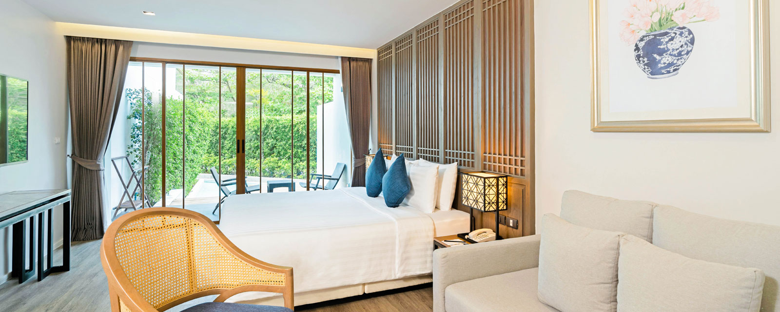 Однокомнатный номер укомплектован одной двуспальной или двумя односпальными кроватями, зоной отдыха, Wi-Fi, кондиционером, кофемашиной, набором для приготовления чая и кофе, сейфом, телевизором, телефоном, мини-холодильником. В ванной комнате душ, фен, банные принадлежности, халаты, тапочки. Есть терраса с прямым выходом к бассейну.