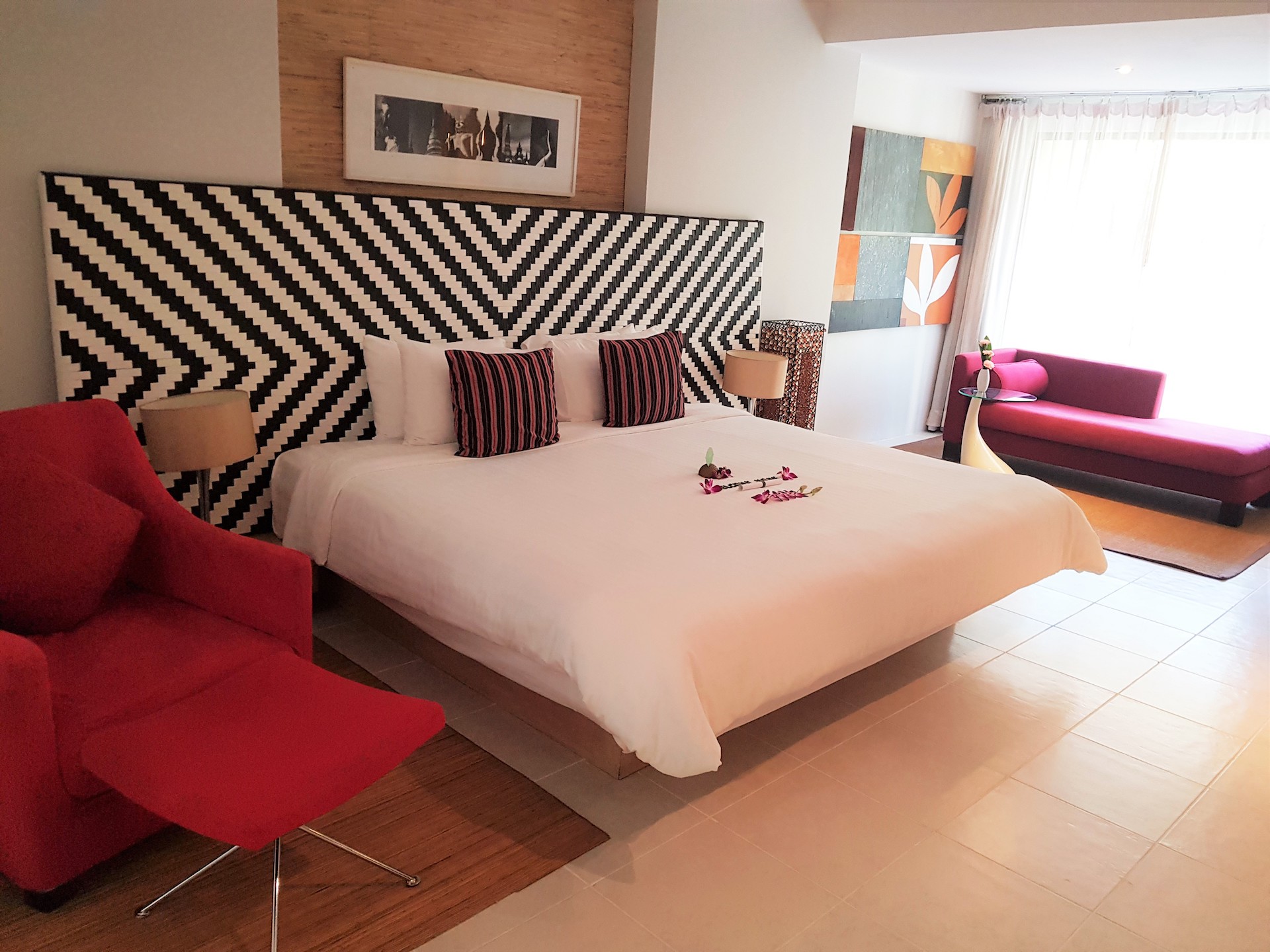 Всё прекрасно, удобный номер с красивым видом из окна. Встретили нас сразу из автобуса, чемоданы, сумки довезли. Любой вопрос решали моментально. Персонал очень хороший, все отзывчивые, приветливые, всегда приятно заходить в отель! Кухня тоже отличная, разнообразная и всё вкусное, свежее. Бассейн классный, очень здорово купаться в окружении большого количества зелени. Весь отель очень красивый, зелёный. Всё в шаговой доступности - обменники (кстати, прямо на углу, рядом с нами, оказался самый выгодный), 7/11, аптеки, массаж и т.д. Единственное, если куда-то ехать, вокруг односторонки, и если тебе в другую сторону, будешь пилить долго, чтобы развернуться. Так что мы выходили на соседнюю улицу и доехать было гораздо быстрее и даже дешевле) Единственное, песочек был в номере, в последние дня три цеплялся мусор к ногам сильно, не мыли. Но мы и не просили, думаю, если бы мы сказали, нам сразу помыли бы.