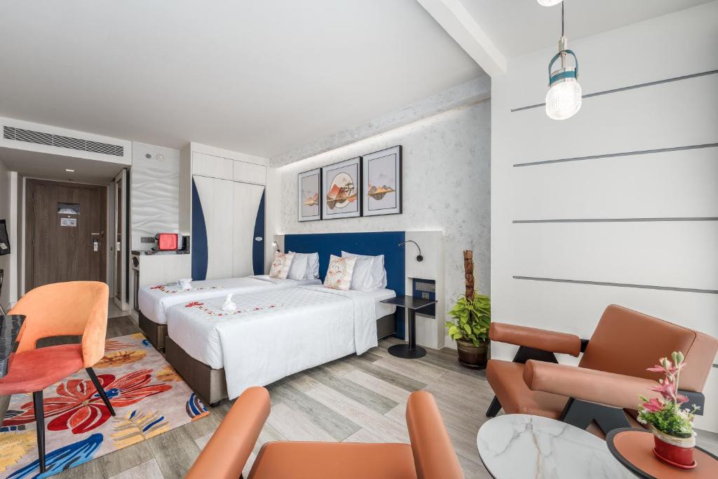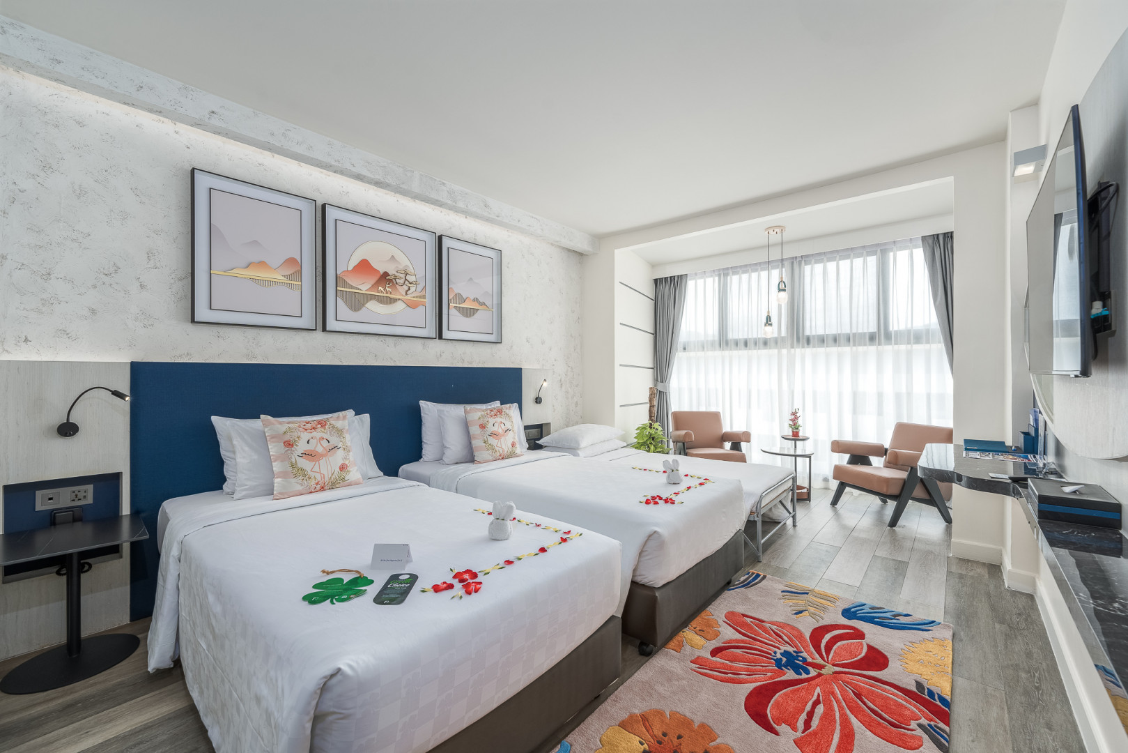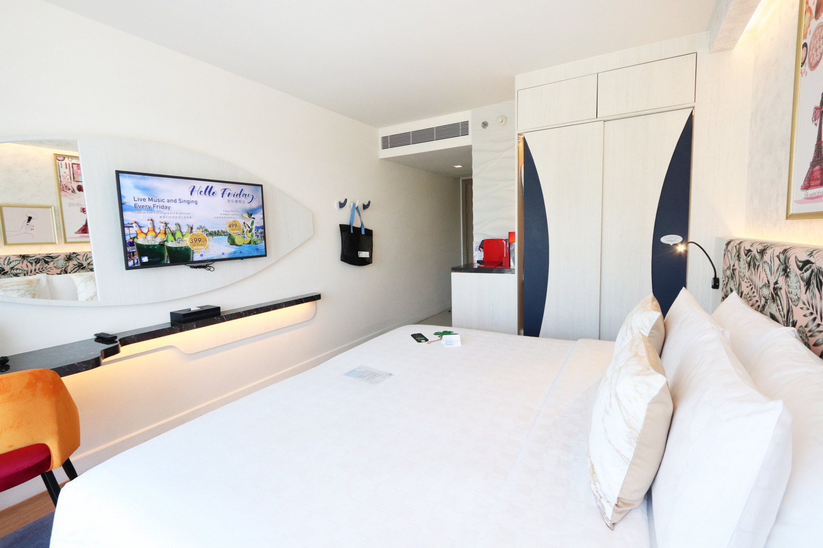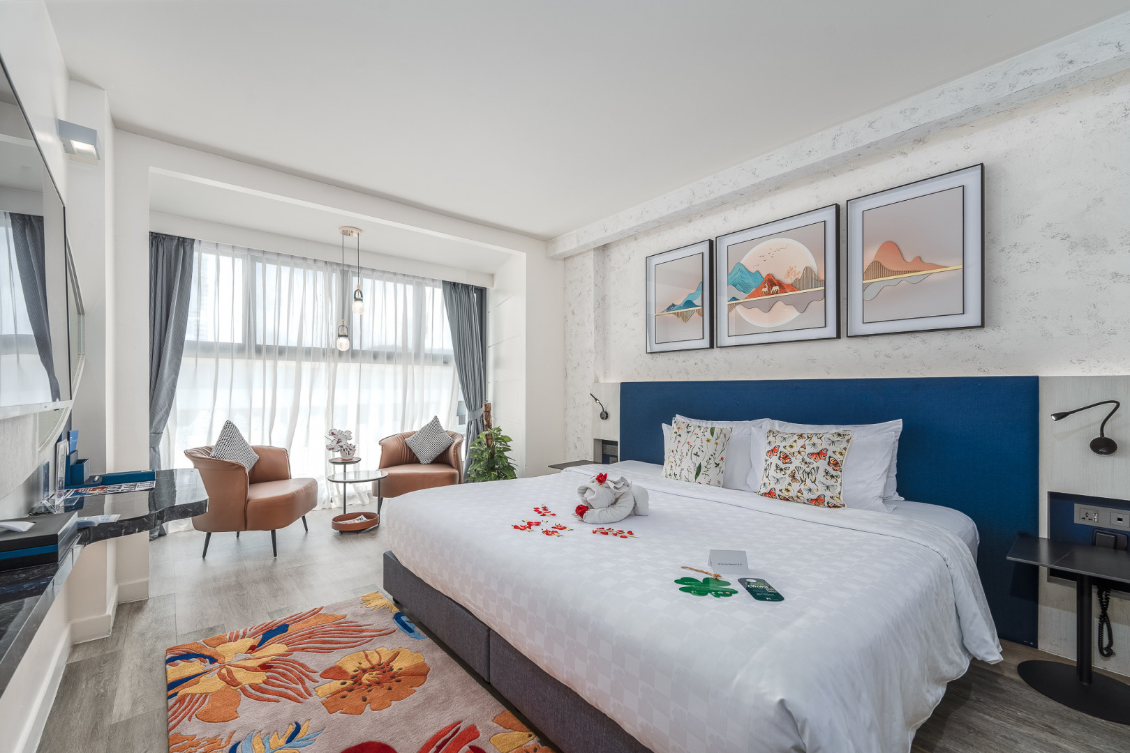 Прожила в этом отеле почти месяц с ноября по декабрь 2025. Поэтому знаю всю внутрянку. Плюсы: Отель новый, современный. Очень классное расположение. 2 мин до моря и 5 мин до Бангла. Очень тихо. Рядом все есть. Справа недалеко рынок еды. Персональчудесный и приветливый. В номерах убираются. Удобная сумочка для похода на пляж. Завтраки очень вкусные! Обязательно берите от супа, омлетов, мяса до фруктов и свежевыжатых соков, причем разнообразные. Бассейн на крыше красивый, 25 м , лежаки свободные найти можно, работает бар . В номере есть все необходимое: халаты, тапки, зонт, сейф, шампуни, фен. Минусы: Если честно- их мало. Пишу для того, чтобы отель улучшал свою работу и совершенствовался. 1. В шкафу нет полок. Только одна. Ваши вещи не будут никогда разложены, а валяться в перемешку! Это ужасно! Шкафы надо оборудовать полками. 2. В номере нет ни одной тумбочки. Поэтому вещи сложить аккуратно просто невозможно! В номера нужны тумбочки с ящиками. 3. Уборка посредственная, не как в достойных отелях. Тайцы моют там, где им нравиться, а не везде. Балкон за месяц не вымоли ни разу! Вообщем на это не обращайте внимания. 4. А теперь то, что меня расстроило больше всего, при чем в первый день заезда. Я вызвала такси, и ждала его минут 15. Ко мне подошел таксист таец по имени Nan , представился отдельным таксистом и предложил меня отвезти. Официальное такси до Банг Тао стоило 400 Батт и ждать его надо было еще 25 мин. Nan запросил 450 Батт, и я согласилась. Приключения начались позже… таксист отельный начал останавливаться и вздыхать, охать и причитать, что ехать далеко, ругаться, требовать деньги… Я была в шоке! Представьте сами, вас останавливают в неизвестном месте и орут, что далеко. Это было ужасно! Вообщем он вместо 450 Батт заставил заплатить меня 700 Батт!!! Это был кошмар! Номер его микроавтобуса бежевого цвета «55..». Прошу принять меры по увольнению данного человека! Он обманывает туристов, нагло вымогая деньги! Это нахал и гадкий человек! А еще говорит, что он отельный таксист. Именно он портит репутацию такого прекрасного отеля! Избавьтесь от него! Вывод: сервис надо немного довести до совершенства и отель будет самый лучший на Патонге.