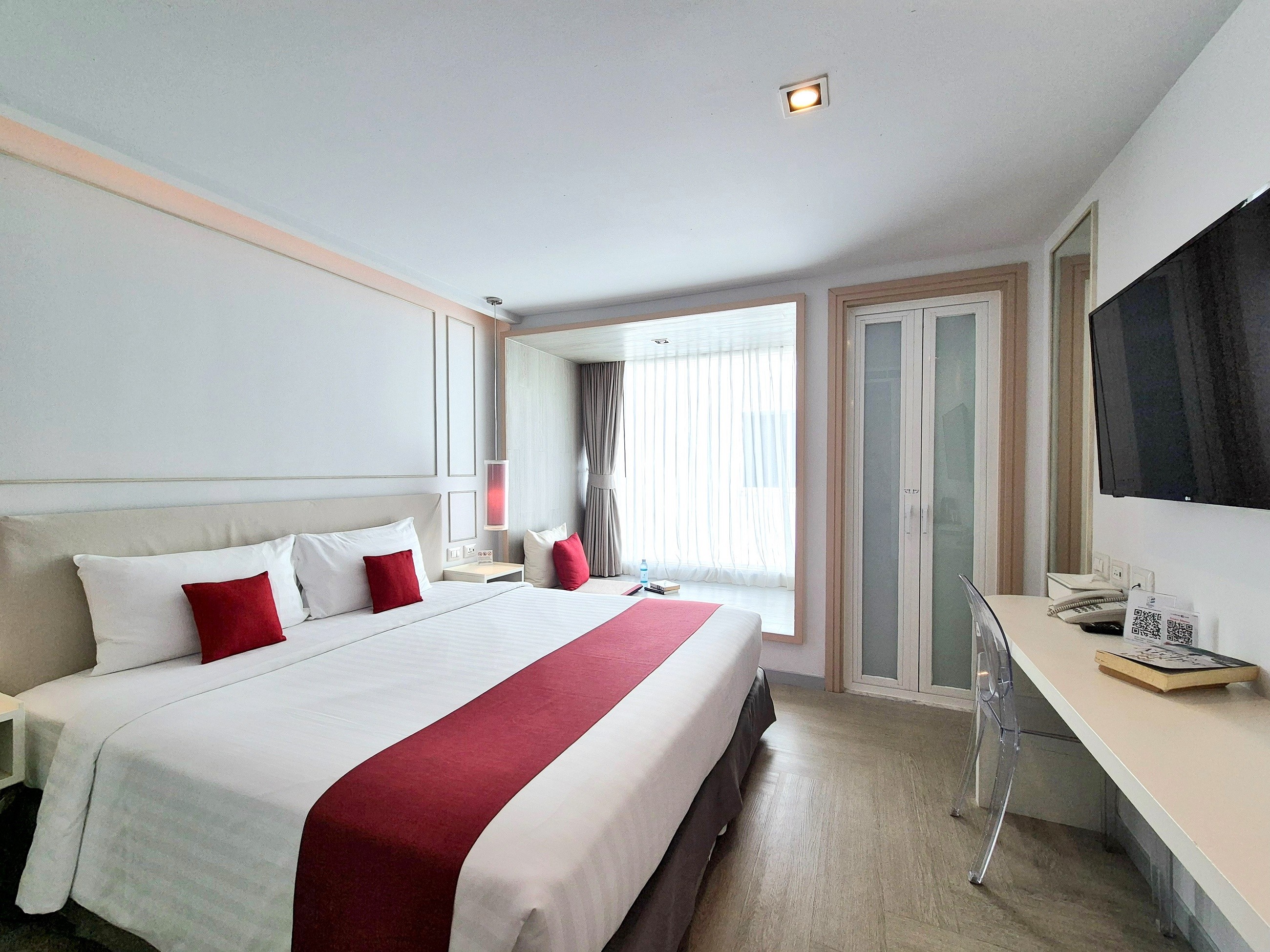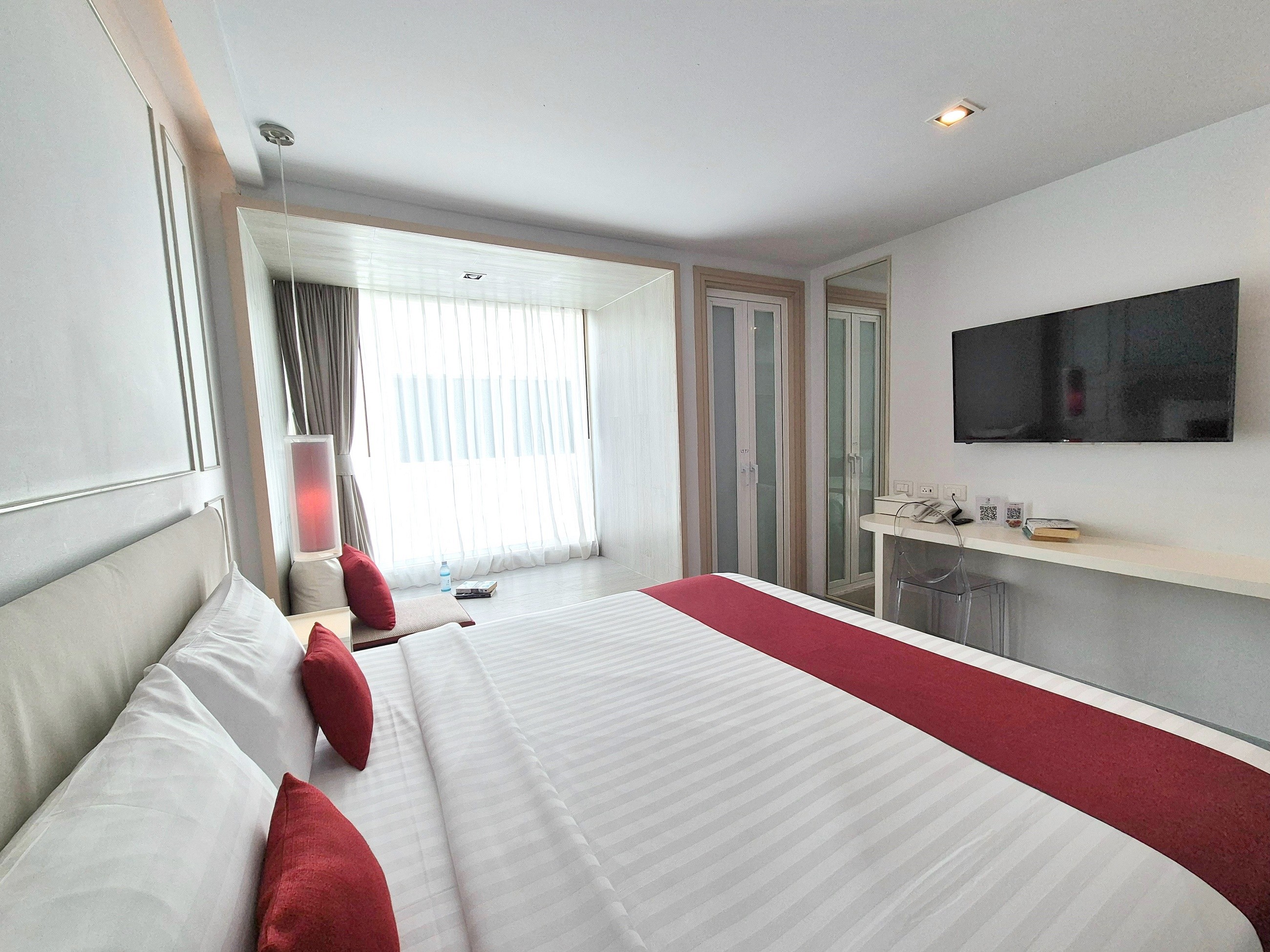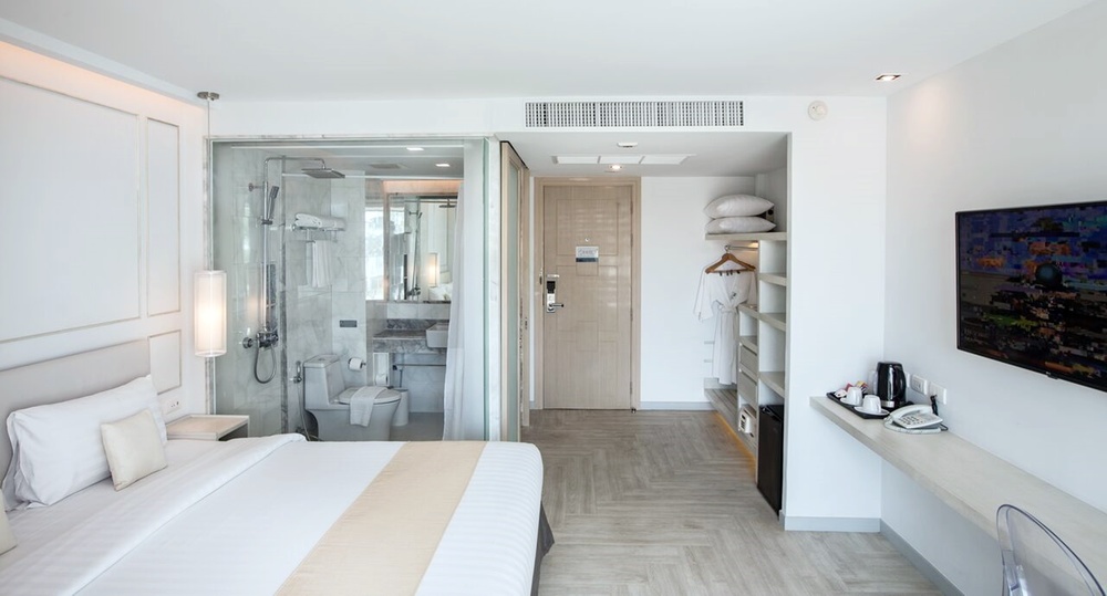 Номер состоит из балкона с частичным видом на море, спальни с двуспальной кроватью, ванной комнаты с душем. В удобства включены Wi-Fi, кондиционер, сейф, телевизор, телефон, мини-холодильник, набор для приготовления чая и кофе, гостиничная косметика, фен, халаты и тапочки.