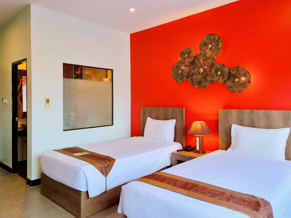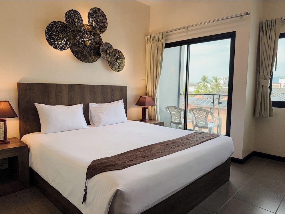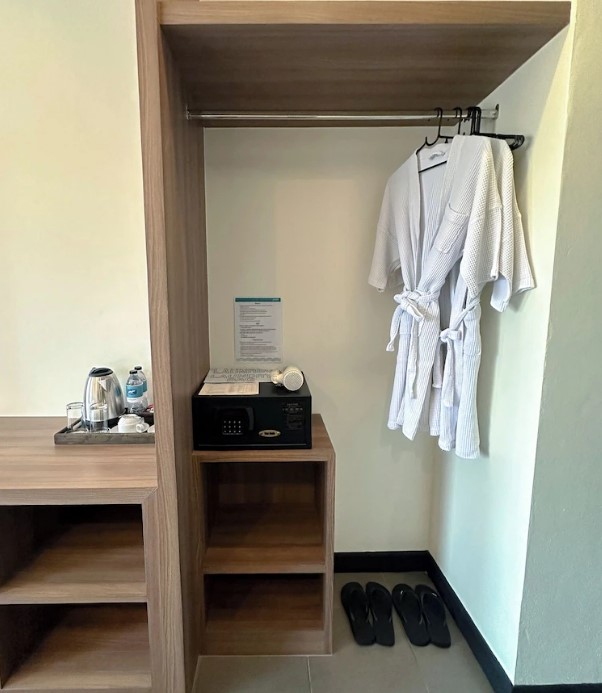 При заезде, номер был убран, уборку делали каждый день, полотенца меняли каждый день. Если вам нужно поменять постель, то необходимо уведомить об этом карточкой, которая будет лежать на кровати при заселении. Номер вполне уютный, у меня был супериор на 4 этаже, интернет работал хорошо. Тапочек в номере нет, это было ожидаемо, у меня были свои. Завтраки нормальные, но потом видимо заехало много туристов, и как писали ранее, емкости с едой и фруктами были опустошены, и наполнить их не торопились, пришлось довольствоваться омлетом и салатом, благо это мой привычный завтрак. Кофе на завтраках растворимый, но это вам не Дубай, где натуральный раздают:) Я всегда беру с собой молотый кофе в дрип пакетах. На близлежащий пляж, ходить не советую, вода там грязная, и если вы первый раз на Пхукете, то вы просто испортите свое впечатление об этом райском острове. За 100 батт и 10 минут, можно доехать на муниципальном автобусе Smart Bus до чудесного пляжа Карон с прозрачной водой. Такси до Карона, по приложению Bolt-200 батт. Единственное у меня замечание, это холодная еда на завтрак. Ее не греют, почему не понятно, так как под емкостями с едой, есть газовые горелки, но их не используют. Яйца жарят под заказ, будут горячими. Для меня идеальная локация, я люблю торговый центр Jancelong. У отеля есть собственная парковка, если планируете арендовать транспорт.