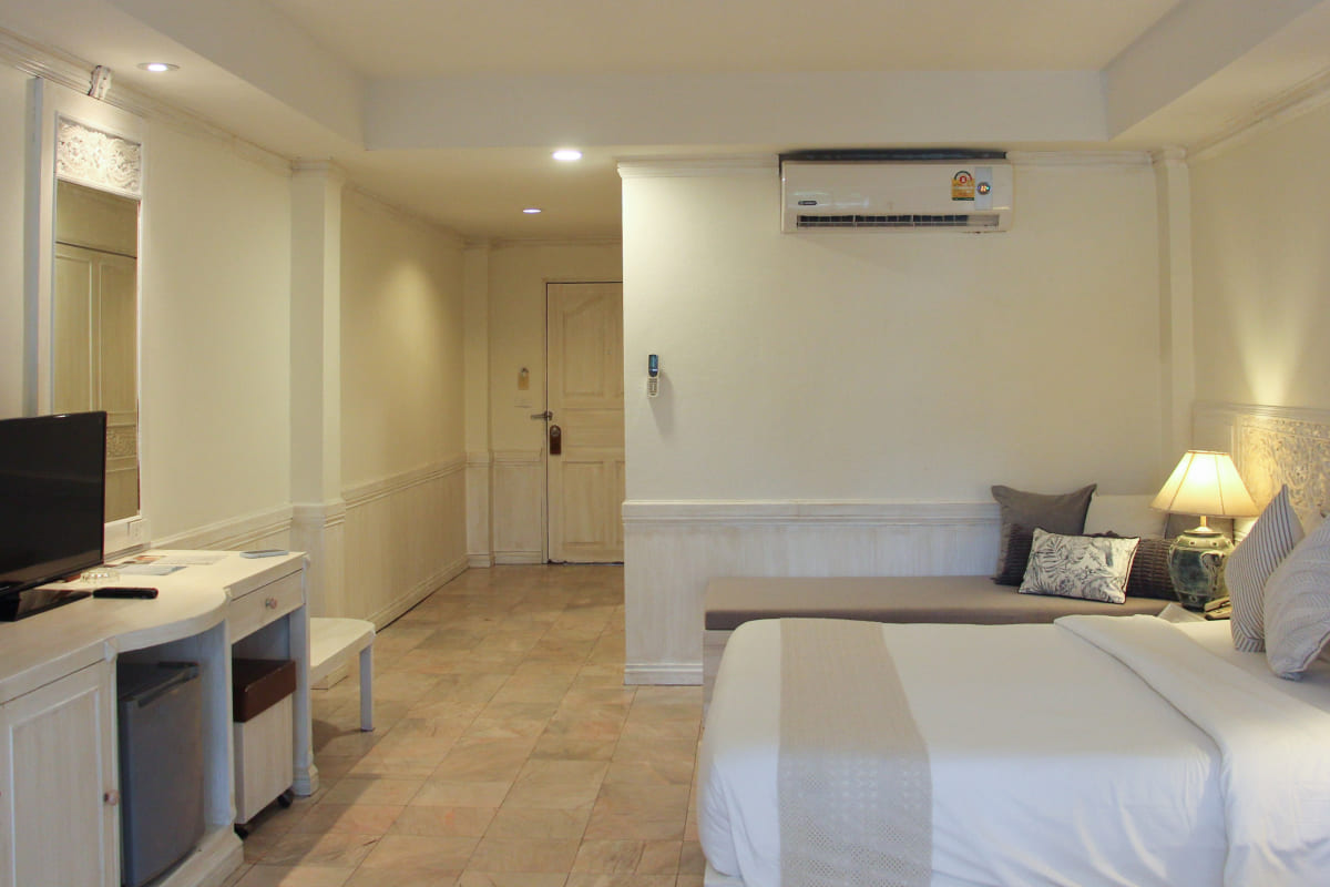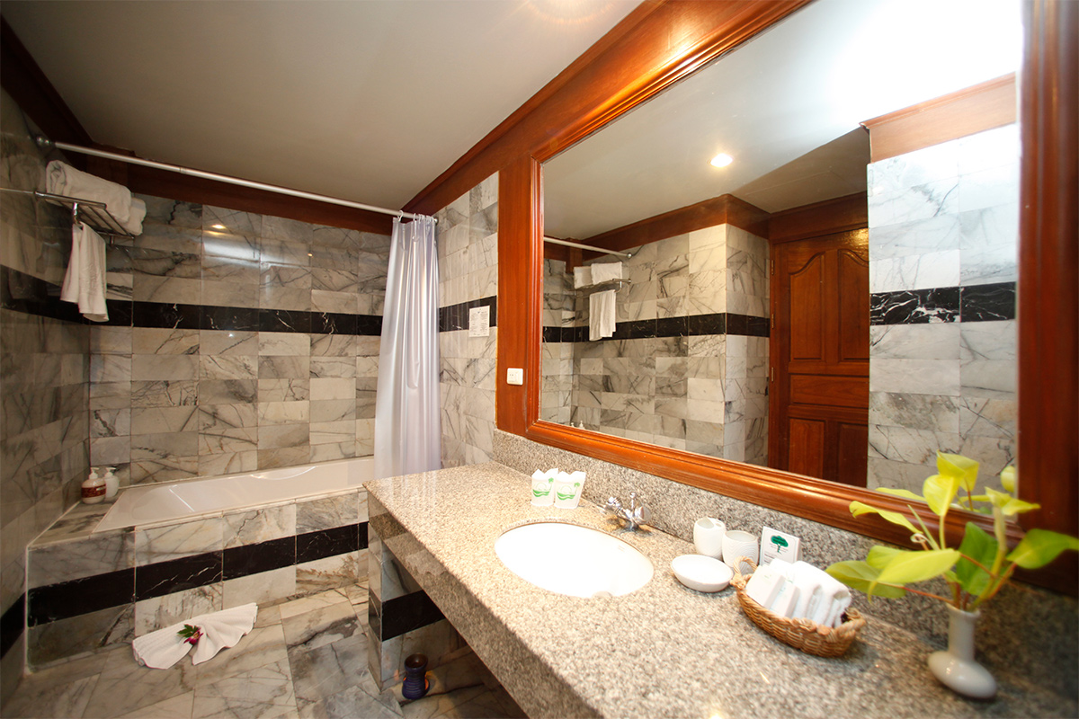 В комплектации номера двуспальная кровать/2 односпальные кровати, кондиционер, телевизор, сейф, телефон, мини-бар, балкон. В числе прочих удобств беспроводной Интернет и набор для приготовления чая и кофе. Ванная комната с душем, ванной, феном и туалетно-косметическими принадлежностями.