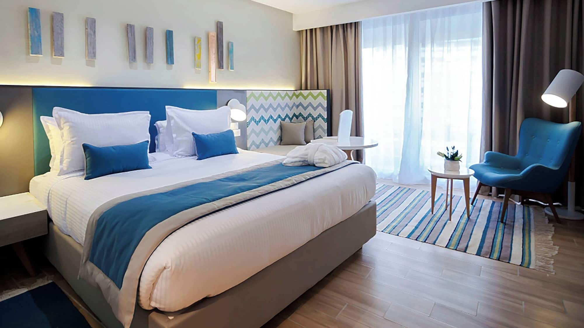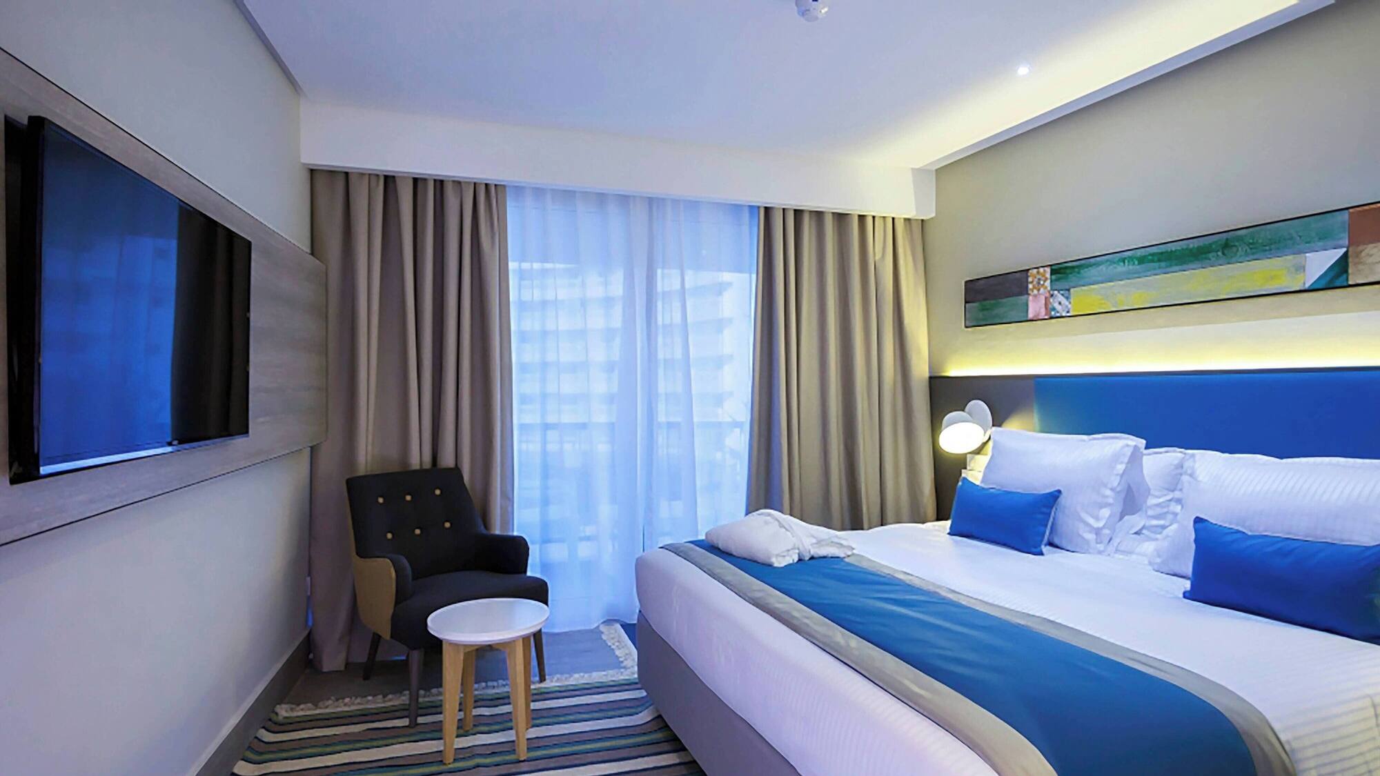 Небольшая гостиница с отзывчивым персоналом . Мы приехали около восьми вечера, на ужин успевали . Нас пытались заселить в номер с видом на парковку и город, хотя в ваучере было указано – вид на море . Второй номер , куда нас очень быстро и любезно привёл Muhhamed вместе с нашими чемоданами, был лучше с частичным видом на море, на очень шумную дорогу и здание напротив. Думали что поменяем , но персонал стал убеждать что у них вид на море только в сюитах. Зачем же тогда такие номера продавать по более высокой цене , чем с ограниченным видом . Первые два дня номер не убирали, только меняли полотенца. Потом была какая то странная уборка, один раз за неделю поменяли бельё , но в общем то и достаточно. Общий ресторан нам понравился , еда была разнообразной , на все вкусы. Повара , казалось , ежевечерне выдумывали блюда для того что бы удивить гостей . Были и традиционные востребованные блюда для европейцев - картошка фри ,пицца, макароны . Европейскиие красивые и вкусные пирожные с заварным кремом . Обед , ужин с алкогольными напитками . Вода была на столах , можно было забирать и в номер. Официант Khemais был очень вежлив , предупредителен и старался поднять настроение гостям. Хотелось к нему возвращаться . В ресторан Soho стоит идти только в качестве развлечения ,без особых ожиданий. Детский бассейн совершенно в отдельной зоне , казалось что деток вообще нет . Пляж ,через подземный переход, очень широкий с чистым светлым песком и пологим входом в море. По морю можно гулять на много километров . Рядом с гостиницей есть и променад. Вечером там посиделки местных жителей, сложилось впечатление что туристы для них развлечение. Оттуда же можно доехать до своего адреса на красивой карете или прокатиться на шумном паровозике. 20 минут пешком от гостиницы до Медины. Администратор через пару дней знал наш номер 721 . За неделю телевизор настраивали 3 дня, ремонтировали туалет , ремонтировали слив в раковине, неговоря уже о постоянной, безуспешной , просьбе замены номера . А вообще , если ко всему относиться с юмором , то всё замечательно . Тунисцы очень доброжелательные , все старались помочь .Объехали все окрестности на такси, его нам девушка охраны заказывала . Отвозили , а потом забирали в оговоренное время . А в дальние места были интересные экскурсии . Провожала нас целая делегация . Расставались друзьями.