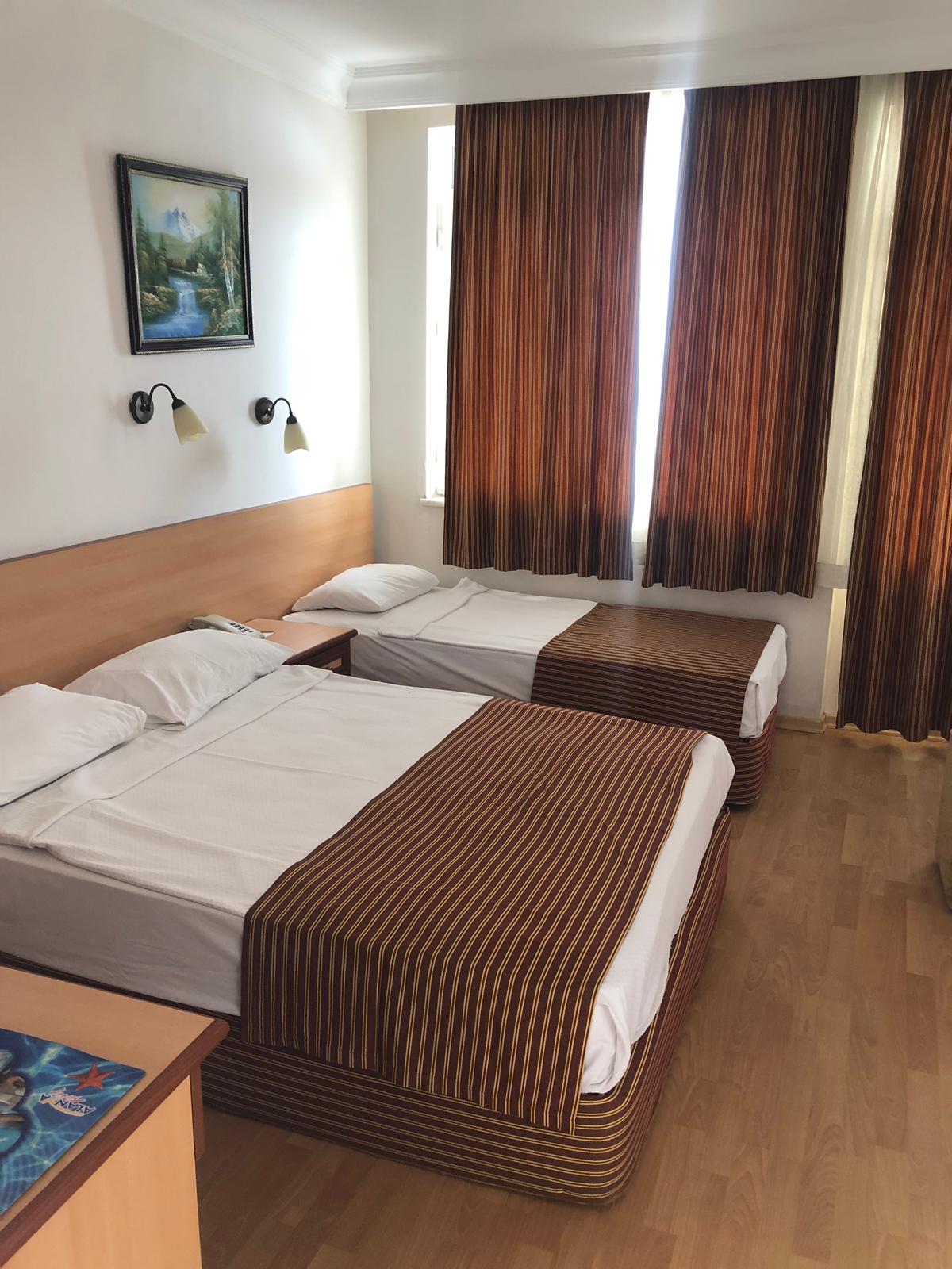 Здравствуйте! Отдыхали с девушкой с 6 по 11 августа (не указал даты перелетов), из-за задержки рейса прибыли в отель только в 3 утра, на ресепшене нас быстро приняли, оформили и выдали ключи. Мы хотели воспользоваться бесплатным вай-фаем в лобби, как это было указано на сайте, но никакого бесплатного вай-фая там не оказалось. Пришли в номер, нас по ошибке заселили в номер с балконом, за это спасибо, иначе мы бы просто задохнулись в номере без балкона. Номер достаточно простенький, две односпальные кровати, мини холодильник с водой, стол, разделяющий кровати, на удивление хороший телевизор, шкаф и в нем сейф(естественно, как платная услуга). Осмотрев все вокруг, поняли, что протирают в номерах только пол и больше ничего. На стенах были припечатаны убитые насекомые, на кроватях чьи-то волосы. На любой поверхности, будь то шкафы, столы, тумбочки, подоконники, пыль достаточно видимым слоем. Также был кондиционер, но за все время отдыха было включать его страшно, так как не думаю, что его хоть раз чистили, только в предпоследний день отдыха его включили охладить комнату и вместе с прохладным воздухом получили аромат отходов. Касаемо душевой - так как мы заселились в 3 утра, то с дороги хотелось принять душ, но и тут отель смог "удивить", так как горячей воды попросту не было. Пришлось ждать до утра, когда обратились на ресепшен, нам сказали, что все починят, но только с третьего раза и на очень повышенных тонах смогли дать горячую воду. НО каким-то образом еще несколько раз горячая вода исчезала после 23:00, наверное ее рабочая смена заканчивалась. Касаемо полотенец - за 6 дней отдыха ни разу не увидели чистое полотенце, пришлось купить свои, а день на 4ый нам вообще перестали их приносить. Также, видимо сотрудники на нас обиделись за то, что мы указали на недостатки отеля, поэтому не приносили нам шампуни, гели для душа и не доливали мыло. Еда - в целом неплохая, но местами. Максимальное однообразие и малообразие, прям ну совсем-совсем. Завтрак - яйца вареные и яйца жареные/панкейки(чередовались), кусочки какой-то запеченной колбасы к яичнице, каша рисовая околомолочная, так как просто рис заливали молоком, шарики молочные несладкие. Какие-то джемы, варенья, мед тоже были, но так как подписано было только парочка позиций. Обед и ужин менялись чаще, но тоже самая банальщина, рис, картофель фри, макароны, хотя рис и фри были довольно вкусные. Мясные блюда тоже были неплохими, рыба тоже вкусная, но настолько костлявая, что желание ее съесть отпадало максимально. Салаты все были максимально одинаковыми на завтрак, обед и ужин, состояли они из огурцов, помидоров, красной капусты, листьев салата, все это было как вместе, так и комбинировалось. Были соленья, огурцы и капуста, по вкусу нареканий нет. К сожалению контроль качества салатов был достаточно печальный, так как те салаты, которые оставались на раздаче и люди не доедали их, то просто перекладывались на следующий день и так до того момента, пока не скисали (но это замечали уже посетители отеля). Десерты тоже разнообразием не блистали, только пахлава и панна-котта с бисквитом в куче разных вариаций, но, естественно не все в один день. Что-то было вкусным, а что-то нет. Напитки - ну к ним вопросов меньше всего. Пиво для все включено было неплохое, но наливали его в небольшие пластиковые стаканы, поэтому вместо приятного врем