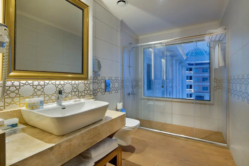 Начну с трансфера до отеля. Туроператор Anex. Остались самые плохие впечатления о туроператоре. Прилетели в 06.40 Аэропорт неудобный в Анталье. Что отлет , что прилет с вещами надо проходить большие расстояния и всё не информационно. Очередь на стойке регистрации Anex чтобы попасть на трансфер просто огромная. Другие туроператоры курят в сторонке без работы. Возможно мы так попали. Итого попали в отель в 11.15 только. Полдня на смарку. По приезду в отель вещи приняли и одели браслеты сразу. Но … номер не дали - сказали все занято. Осадочек остался после утомительной дороги. Ладно, часов до 14 пришлось бродить без номера в изучении прекрасного холла. Отель впечатлил и инфраструктурой продуманной и персоналом , и едой. Дали номер с боковым видом на море. Номер хороший на 4 этаже. Чистота везде. Что в общественных местах, что по уборке в номерах. Туалеты в лобби с телевизорами над писсуарами. Есть магазинчики внизу. Впечатлил бесплатный хамам и бани с саунами. Отлично ! Сходите , не пожалеете. Я ходил в обеденный перерыв когда жарко на пляже. Пляж великолепен , включая чистоту воды и наличие снек бара. Вода прозрачная. Рядом утесы. На дне видно валуны. Единственное разочарование : зонтики -это бесполезные сооружения. Лучше бы был один сплошной навес. Не спасают от знойного солнца ваши зонтики. Но если вы хотите загорать, то самое оно. Есть бунгало по 50 €. Бар отличный. Там в основном спасались от солнца. Трансфер до пляжа норм. Но можно вниз пешком. Обратно уставшим тяжеловато подниматься. Территория и анимация в целом отлично! Персонал просто супер! Вас все поймут и сделают все для вашего комфортного отдыха. Не скупитесь на чаевые. Будет вам счастье. И коктейли получше и напитки приносить , чтобы самим не бегать. Еда супер. Много всего всякого. Включая мясо ( было 2 раза баранина , морепродукты , рыба постоянно , индейка, курица , говядина ) тематические вечера по кухням мира. Овощи гриль и куча соусов и салатов, зелень и овощи. А пахлава. Отдельная песня. Любовь с первого дня. Запишитесь в Аля карт. Отлично! Отель на возвышенности. Внизу базар , магазины , аптека И так далее. Могу смело рекомендовать к посещению. Но выбирайте другого туроператора. Нам рейс обратно задерживали , так вот мы намучались в общении с Anex. Много иностранцев. А также много местных. Ну и конечно с России также много. Выделил два минуса: не дали сразу номер( возможно надо было дать чаевых) и тень на пляже ( вернее ее отсутствие из за типа зонтиков) в остальном респект и уважение администрации и персоналу отеля. Всё продумали и обслуживание не хромает. Напитки норм. Есть Chivas regal в лобби баре. Пиво, ликеры , ром И так далее норм. Чай супер. Кофе норм.