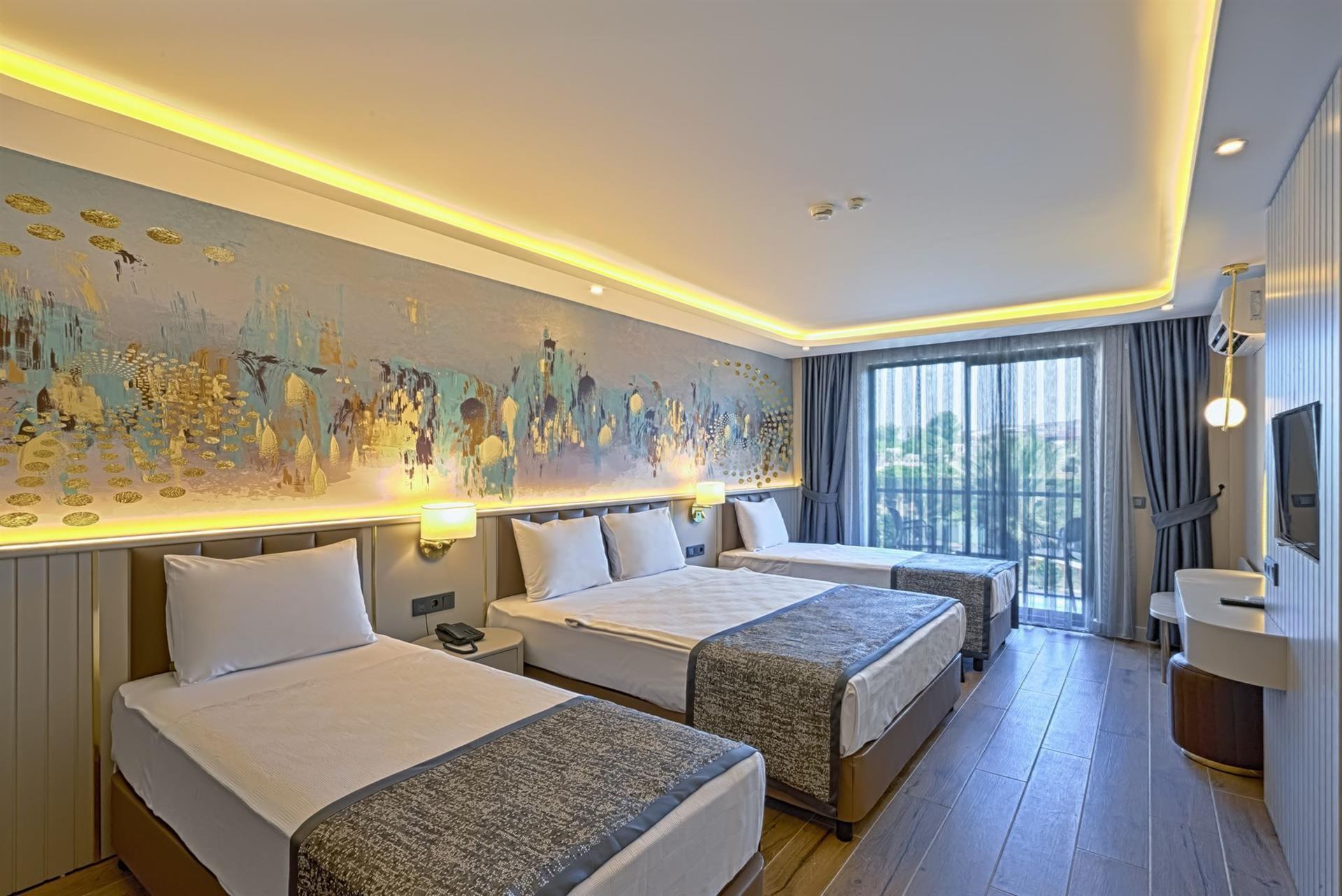 Это была первая поездка в Турцию. Отель все включено, как и на многих других курортах. Плюсы: - первая линия: от отеля до собственного пляжа пройти метров 50 через открытый бассейн и зону гриля. - персонал хорошо говорить по-русски, готовы помочь в решении любого вопроса Минусы: - что такое уборка, там просто видимо не знают. заселяют в номер, который пришлось самостоятельно отмывать. это касается и мебели и сантехники. если кто-то брезглив, вам там точно не получится задержаться и на сутки - питание: есть нечего, только овощи, очередь за фруктами, которые не всем достаются. мысо/рыба одного вида, много сладостей. Общий итог: главный плюс - рядом пляж, но там огромные камни и зайти в воду было большой проблемой. Если хотите сесть на диету - вам сюда. Готовы жить в грязном номере - добро пожаловать.