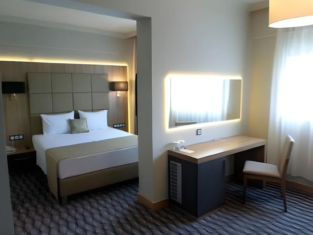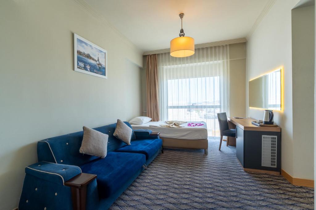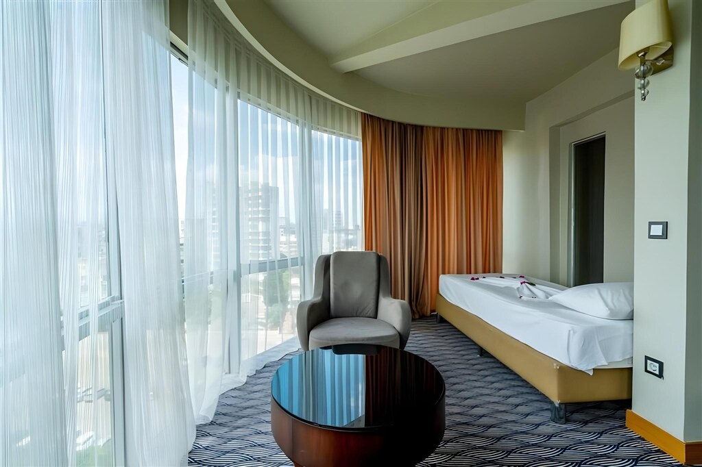 Улучшенный номер предлагает спальню с двуспальной кроватью, зону отдыха, ванную комнату с душем. К услугам гостей Wi-Fi, кондиционер, телевизор, телефон, мини-бар, сейф, фен, набор гостиничной косметики.