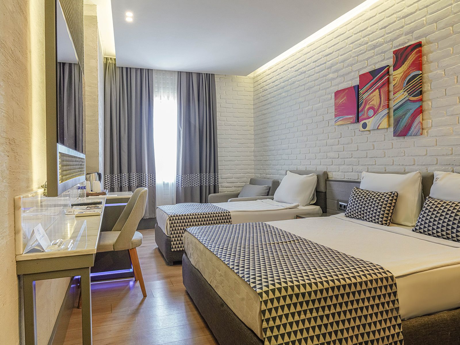Мы прибыли в отель все сотрудники были дружелюбной кухней были закрыты, но они заказали пиццу извне отеля. Первая ночь понял, что кондиционер не работает прекрасный менеджер звоните Лейле на стойке регистрации дайте нам варианты на другой номер. Все номера прекрасная еда прекрасный персонал супер полезный и доброжелательный. Определенно рекомендуем вернуться в августе ️