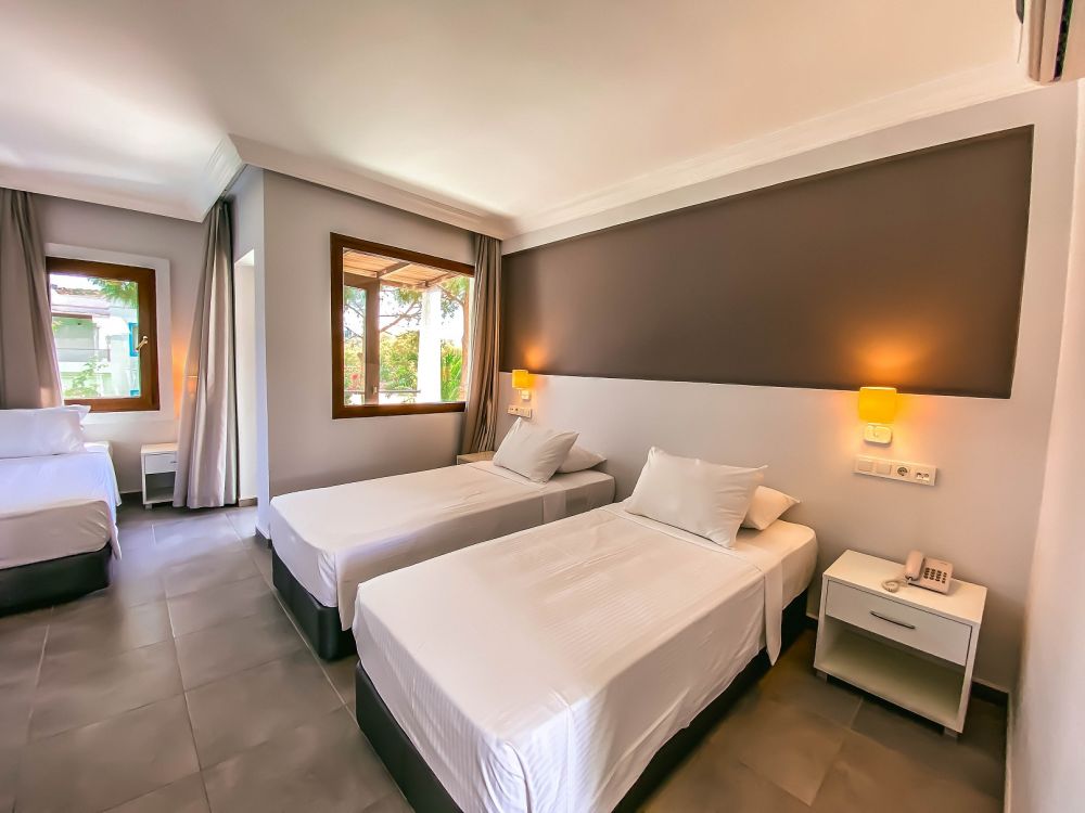 Отдыхали семьёй, двое взрослых и двое детей. Переехали в этот отель с доплатой из другого отеля, в котором все было отвратительно. В этом же отеле нам понравилось всё. Отель с прекрасной зелёной территорией, где запахи хвои от кедров сменяются приятными ароматами от розовых кустовых цветов похожих на розы. Между корпусами ставят шезлонги и отдыхают наслаждаясь видами, тишиной и ароматами. Номера не новые, но чистые, с хорошей, регулярной уборкой. У нас был номер с двухспальной кроватью и 2х этажной для детей. Корпуса 2х этажные по 8 номеров в корпусе. Ресторан с достойным выбором блюд в т ч мясом, рыбой. Около бассейна есть бар с очень приятной атмосферой и обстановкой (столики, диваны) в тени плетистых деревьев. В баре вкусный чай, турецкий кофе. Персонал очень приветливый и общительный. Есть амфитеатр в котором иногда проводят детскую анимацию. Море чистое, пляж с плавным заходом, рядом с корпусами, при входе есть полоса с камнями, далее песок, местами были водоросли в зоне буйков. Отель расположен далеко от населённых пунктов поэтому до ближайших магазинов нужно идти 25-30 мин или ехать на маршрутке # 2-28. В отеле практически нет русских, в основном турки, что как объяснил наш гид хорошо, поскольку они очень требовательны ко всему. Отдыхом в отеле мы очень довольны и благодарны сотрудникам отеля.