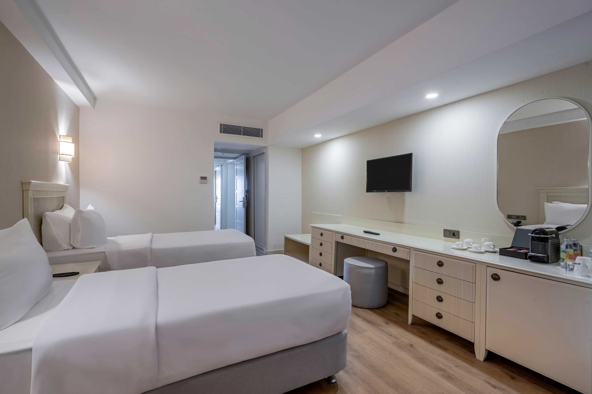 Несмотря на то, что это 5-звездочный отель, качество не выходит за рамки 3-х звезд, причина для 3-это отличный пляж. ЕДА: почти ужасная. ЧИСТОТА: Опять почти ужасно. Везде грязно, пепельниц нет, в качестве воды дают мультик. ПЕРСОНАЛ: Они милые и стараются изо всех сил, но в отеле совершенно не хватает персонала, за исключением команды аниматоров. АНИМАЦИЯ: Хотя их было 6 , их производительность могла быть достигнута за 2 . ПЛЯЖ: Отлично, однако в час пик вам будет трудно найти свободные шезлонги. НОМЕР: Останавливались в одном с видом на море, он широкий, но старый и нуждается в ремонте. Кондиционер почти ничего не делал, и в комнате все время было жарко. Какого черта кто-то должен стучать в вашу дверь в 9 утра и спрашивать, не хотите ли вы, чтобы ваша комната была убрана? Простые значки с DND/CLEAN не так уж и сложны. Везде зеленоголовые, всех покусали. Пожалуйста, держитесь подальше от этого отеля.