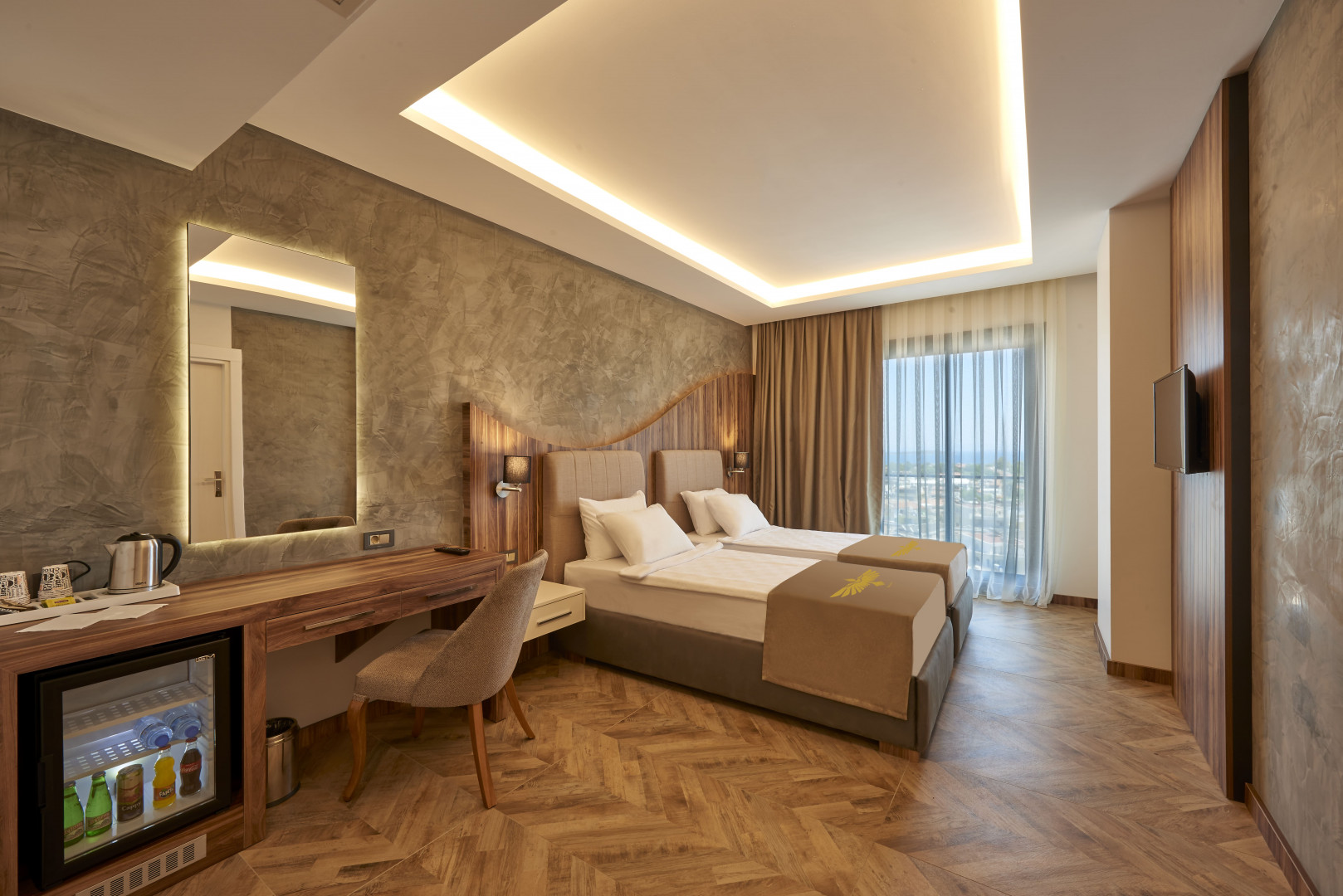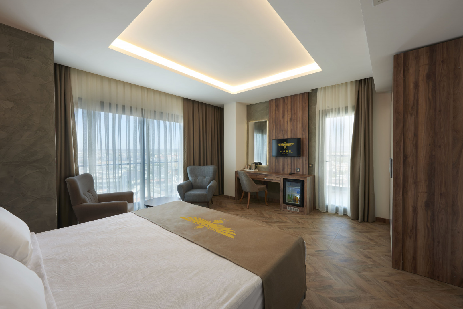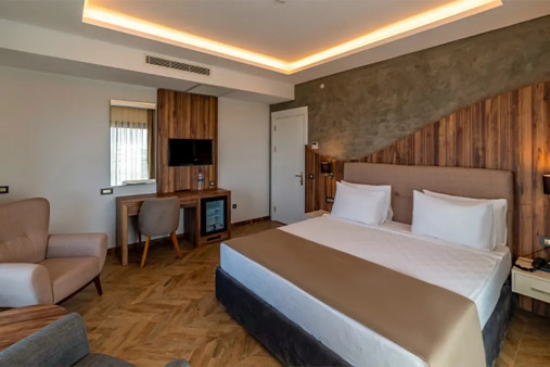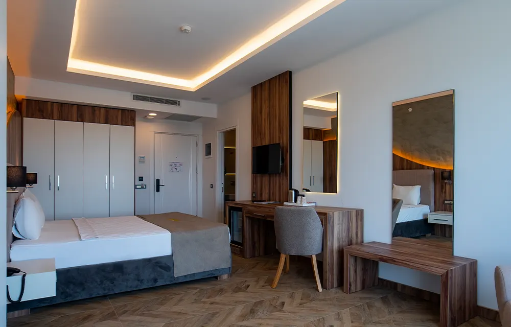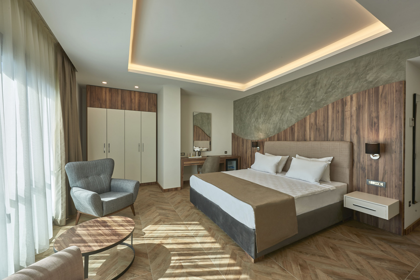 В однокомнатном номере гости размещаются на двуспальной кровати, ванная комната оборудована душем, феном, гостиничной косметикой. Среди удобств телевизор, кондиционер, сейф, мини-бар, чайно-кофейный набор, беспроводной Интернет. Из номера открывается вид на окрестности.