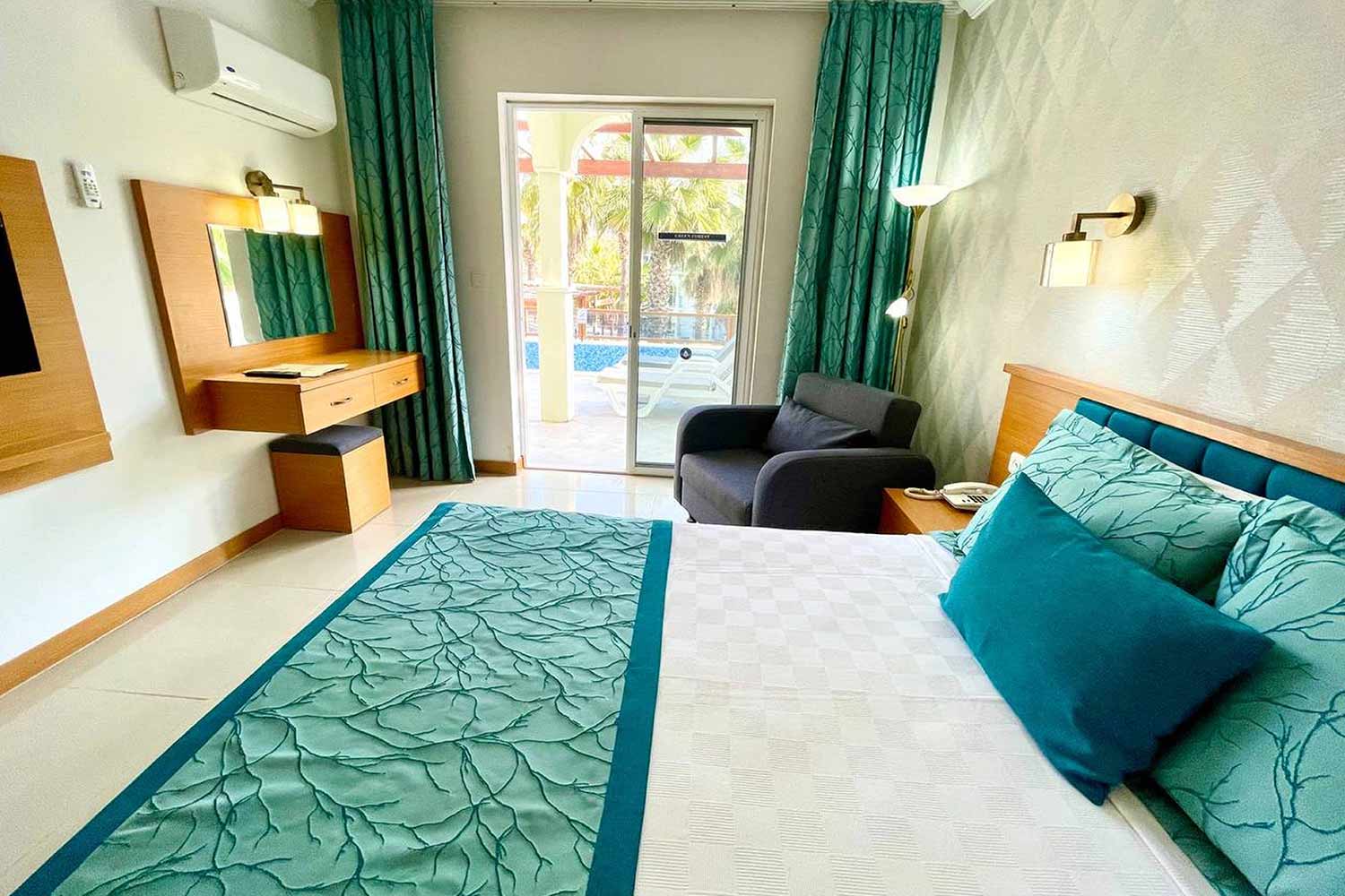 Комнаты у бассейна - честно говоря, не вижу в этом привлекательности: все сады расположены рядом друг с другом, без уединения с соседями и гораздо более мелким бассейном.