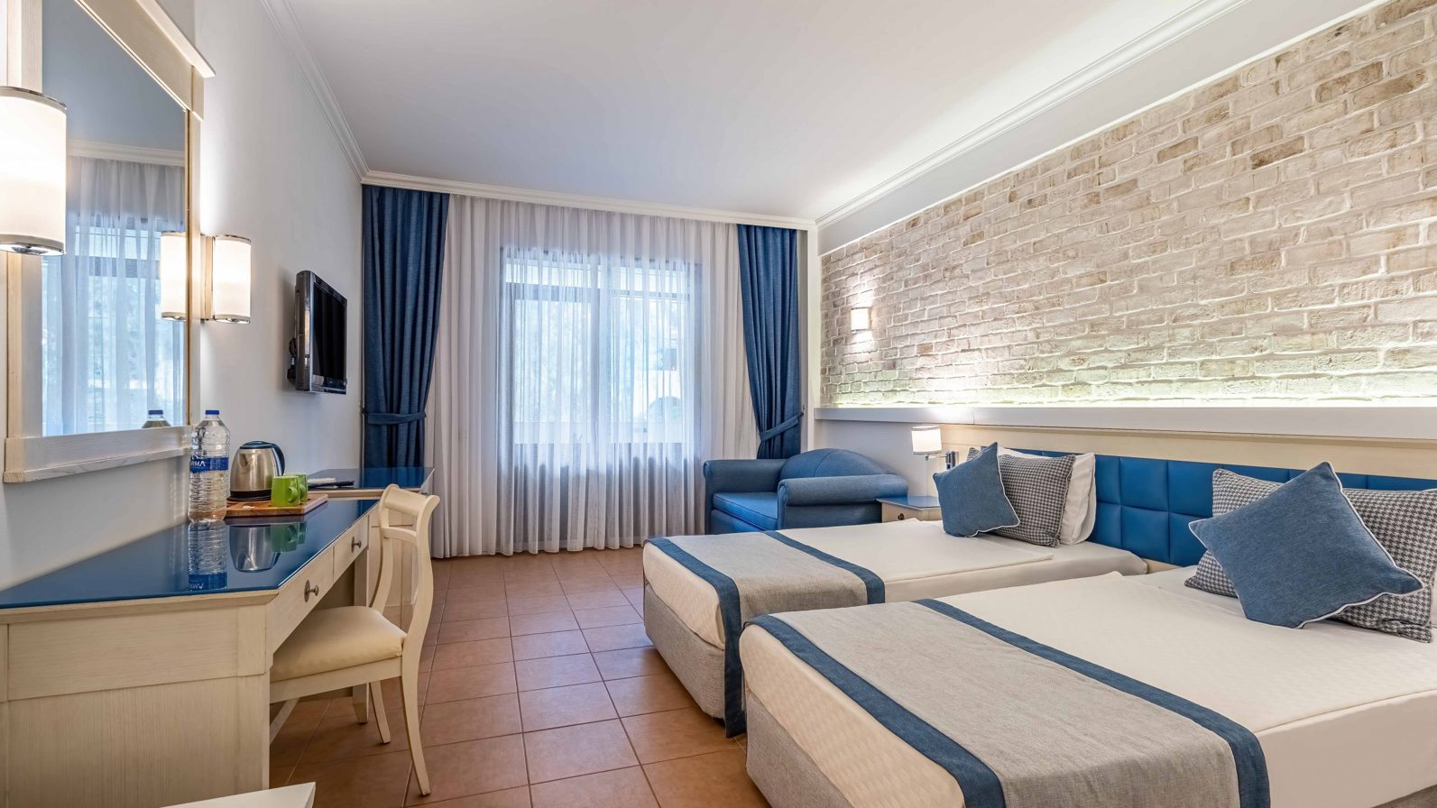 Отель полностью соответствует реальным ожиданиям.Если правильно читать отзывы то отель Вам понравится. ЗАСЕЛЕНИЕ (рецепшен) Приехала около 8 утра, оставила вещи. Ребята на рецепшен подсказали где можно переодеться, одел браслет. Номер ожидался к 2 часам. ТЕРРИТОРИЯ Не скажу что большая, но удачно спланированная. Если идти по главной алее то с права и слева будут находится корпуса с номерами (2-3 этажные). ближе к морю расположены главный ресторан, главный бассейн, хамам, амфитеатр. Таким образом главный образователи шуму находятся в самом конце территории и в номера шум проникает слабо. НОМЕР мне достался номер 408 к корпусе DERMAN HAN(самый первый корпус с правой стороны если идти то рецепшен). номер на первом этаже. Сам номер небольшой с 1 кроватью (не очень большой но 2 человек), мальникий балкон. при заселении в номере: вода в мини баре, в ванной 2 набора с ватными расходниками и мыло с шампунем только в дозаторах. В шкафу 2 пары тапочек. Слышимость в номерах странная: я слышала только соседей из номера с сверху, и шум из-за двери, т.е. изнутри корпуса. другие соседи мною были не слышимы. УБОРКА как в номере так и на территории к уборке претензий нет. В номере есть 2 кнопки у входной двери: 1 убрать в номер, 2 не беспокоить. ХАМАМ В целом в турции сложно прям удивить хамамом, в этом Хамаме удивляет только отсутствие раздевалки и шкафчиков для вещей. ПИТАНИЕ Ну тут не знаю... Если вам надо прям километры выбора, то не в этот отель. А так все есть, мясо (белое, красное, котлеты, нагецы), гарниры (макароны, рис, картофель(пюре, фри), ... и д.р.), зелень, салаты, фрукты, сладость, всегда есть один или 2 супа, на завтрак каша, небогатый но достаточный диет стол. весь ассортимент расположен в одном зале, спланирован грамотно, нет толчаи и беготни. АНИМАЦИЯ Участвовала сама только в ДАРЦЕ аниматор Асан умничка: заводной, молодой полон сил и позитива. БАРЫ Ну тут на любителя. Мне коктейли больше всего понравились в баре у моря. Пиво в баре у бассейна. Чай и кофе вкусные в лоби баре. ГЕСТРЕЛЭЙН ОСОБУЮ благодарность выражаю сотрудницам отдела по работе с гостями: СВЕТЛАНЕ И ЛЕЙНЕ благодаря им решается любой вопрос: нужно сменить полотенце-пожалуйста, есть небольшая библиотека(можно взять или оставить книжку), я благодаря им приобрела при выезде свежую и вкусную Пахлаву. Обратиться к ним с любой мелочью всегда было удовольствие. ИМЕННО ТАКИЕ СОТРУДНИКИ ДЕЛАЮТ ИСТОРИЮ И ЛИЦО ОТЕЛЮ