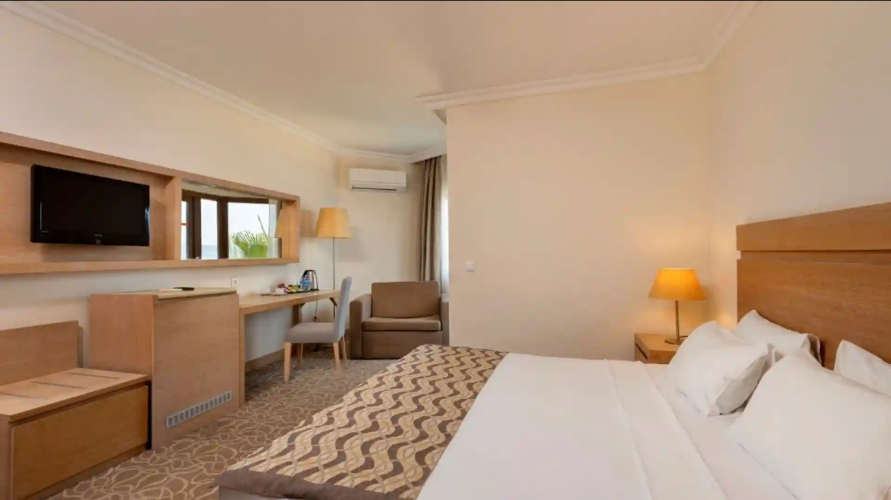 Что понравилось??? Да, немногое!!! Первое, расположение отеля на первой линии, чистое море! Хорошие повара, питание вполне адекватное для 4х звёзд.... и всё!!! Я не понимаю восторженных отзывов о данном отеле!!! Видимо, все купленные. Либо за хороший номер, либо, за бесплатный интернет, либо еще за что-нибудь!!! Начну сначала.... Мы с мужем приехали в отель в начале сентября 2025г. Ехали от Санмара ...отвратительно. Водитель по дороге подсадил своего знакомого молодого человека и они громко, на весь салон говорили и говорили без умолку!!! Вообще, хочется спросить... это правомерно подсаживать левых людей к отдыхающим. У нас разболелась голова от их трескотни!!! ( номер машины видно на фото ..109...) Приехали в отель и когда зашли на рецепцию я просто офигела!!! Такого ужаса я не видела никогда!!! Старые проваленные диваны и банкетки.... ВСЁ!!! Кошмар. просто для скотов каких - то!!! Подошли к молодому человеку на рецепции ( их два. один в очках, другой без очков, более наглый!) Я попросила номер не на первом этаже, на что услышала в ответ:" А что мне будет в подарок?" Я в очередной раз офигела.... И уже принципиально не стала предлагать денег. Номер нам не дали. Ничего не объяснили, куда можно пока пойти, посидеть или покушать, или умыться и т.д..... Мы вышли на неимоверную жару. Мужу стало совсем плохо от головной боли!!! Я вернулась и, всё-таки, предложила оплату за номер, который нам был нужен, но мне сказали, что ничего нет, видимо, тоже принципиально.... и мы поехали на первый этаж, в номер 605. ( все наши злоключенеия в этом отеле есть на моём канале в рутуб. Просто наберите название отеля). Номер 605 был в совершенно убитом состоянии. Вода в раковине в санузле не бежала, пришлось трижды ходить на рецепцию, чтоб чего то добиться. Спасибо уборщице. Она молодец!!! За регулярно оставленный доллар что то убирала... Холодильник открывался с трудом, шоркая по полу, т.к. стоят, видимо, ниже уровня пола))) Покрытия на полу не НИКАКОГО, поэтому, выходя из душа можно поскользнуться и упасть... НАСОВСЕМ!!! Кондиционер кое- как работал. Кровать, типа двуспальная состояла из двух односпальных, которые стояли на чурбачках и на них лежал двуспальный ПРОЛЁЖАННЫЙ матрац!!! Мы люди не привередливые и понимали, что едем в 4 звезды, но такого я не ожидала!!! В баре у бассейна пойло (по - другому и сказать не могу) ужасное. Как его пили наши соотечественники - неясно. Анимации НИКАКОЙ. Аниматоры делали одолжение подвыпившей публике, что вообще появлялись по вечерам. Радовала кухня и то, только в обед и ужин. В завтрак даже омлеты и яичницы невозможно было дождаться... Отношение к туристам отвратительное!!! В столовой столы грязные, пол грязный... Лежаков на пляже не хватает. Они в непотребном виде и матрасы тоже ужасные. Грязные, отвратительные!!! Вопрос!!! Откуда такой рейтинг у отеля??? Спасибо хочется сказать ПОВАРАМ, УБОРЩИЦЕ 605 НОМЕРА и МОРЮ!!! ВСЁ!!! Стыд и позор!!! P.S. Гид ( имя на фото) НИКАКОЙ. .Если не купил платную экскурсию, так и говорить с тобой не будет!!