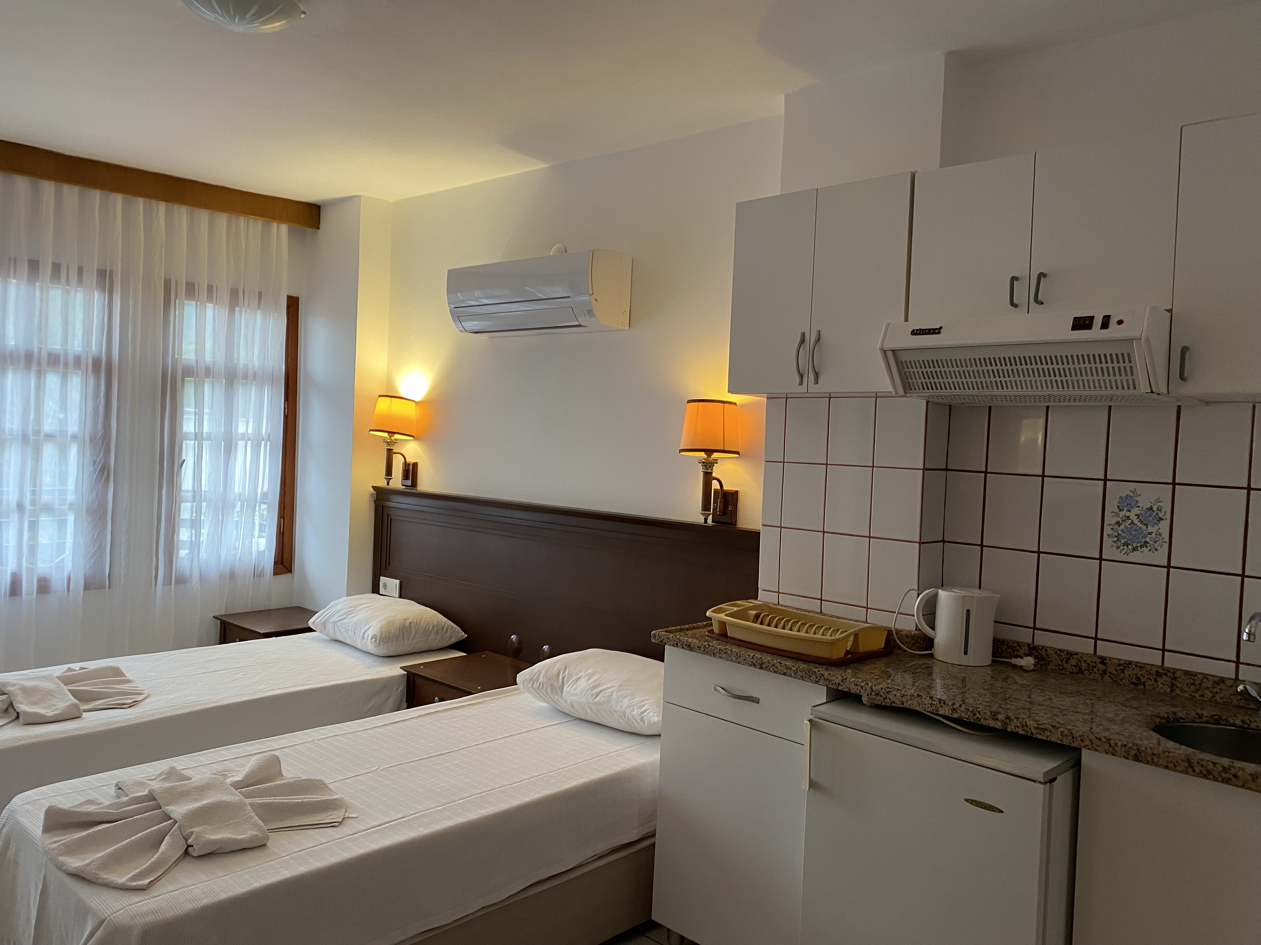Провели здесь неделю. Архитектура красивая, сад и бассейн тоже красивые, виды красивые. НО Персонал совсем не говорит по-английски (кроме хозяина и милой дамы, возможно, его дочери) Wi - fi бесплатный только возле стойки регистрации и скорость низкая, поэтому если вам нужно что-то объяснять персоналу где-то еще, кроме стойки регистрации - это невозможно, они пытаются говорить по-турецки. МЫ ПОХОЖИМ НА ЛЮДЕЙ, ГОВОРЯЩИХ НА ТУРЕЦКОМ? Помогли донести лекарства до холодильника, что приятно, у нас такого не было. Также холодильник и чайник всегда находятся в номерах отелей, НО здесь это «удовольствие» доступно только для апартаментов, а не номеров. Они берут 30 лир за чашку чая и 10 за горячую воду (в кафе цена за чашку около 8-15 лир). хозяин грубый, жадный (не только наше мнение, нам так сказали) и пытается заработать даже на таких мелочах, как вода и подключение к интернету. Он, конечно, поначалу кажется милым, улыбается тебе и так далее, но как появляется проблема - он меняется Отношение отличное, если вы готовы платить за все и много. Плохой кофе в кофемашине, в первый завтрак в банке было испорченное молоко. Завтрак плохой и одинаковый изо дня в день. Апогеем были грязные простыни, которые обещали менять каждые 3 дня. Мы искали простыни в надежде получить новые, но в течение 5 дней они были такими же. Уборщики только что заправили постель, спасибо, я могу сделать это сам. Так около 14 часов мы спустились на ресепшн и попросили их поменять , мальчик сказал ладно я передам информацию уборщикам (разговор был в гугл переводчике) Затем мы вернулись в номер примерно в 7-8 часов вечера, и угадайте, простыни все еще грязные :) Затем мы столкнулись с «принимающей семьей», которая попросила хозяина наконец поменять простыни. Он спросил девушку, которая отвечала за уборку в этот день (она сидела рядом с ним). Она сказала, что поменяла их :) Лол, такая лгунья (она еще сказала, что я сказал ей ничего не трогать, но как она поняла, не зная ни одного английского слова))) Мужчина сказал "Я верю своим работникам, подождите еще 3 дня" у нас осталось только 2 Поэтому нам пришлось привести аргумент, чтобы заставить их изменить их, типа, это нормальное отношение? Он также сказал, что «вы, русские, привыкли к своим стандартам, это же Турция» и т. д. Я был в 26 странах, и мне никогда не приходилось спорить, чтобы мне сменили простыни. В конце концов, листы были изменены Так что если хотите остаться здесь - будьте готовы платить за каждую мелочь и ужиться с таким отношением. Лучший человек, работающий здесь, - дочь владельца, и с ней не было ссор, и она в первый же день вынесла лекарства в свою комнату :) милая женщина афро мальчик убирает территорию тоже приятно) Также я получил постер на дверь (ХБ) и вазу для цветов.
