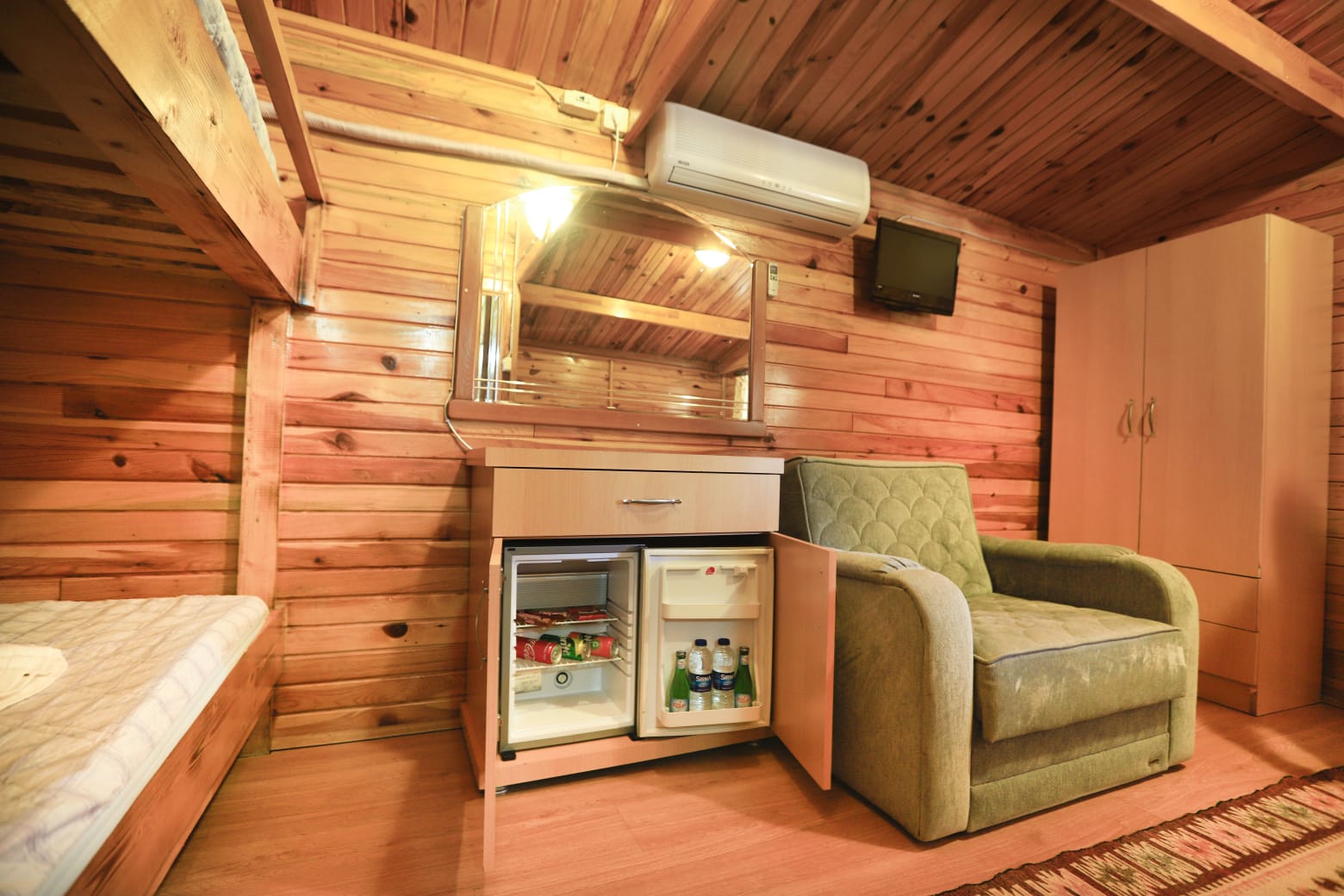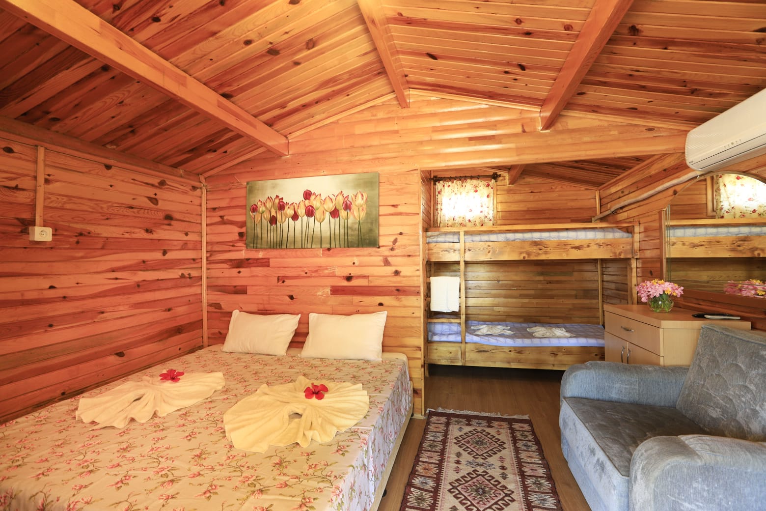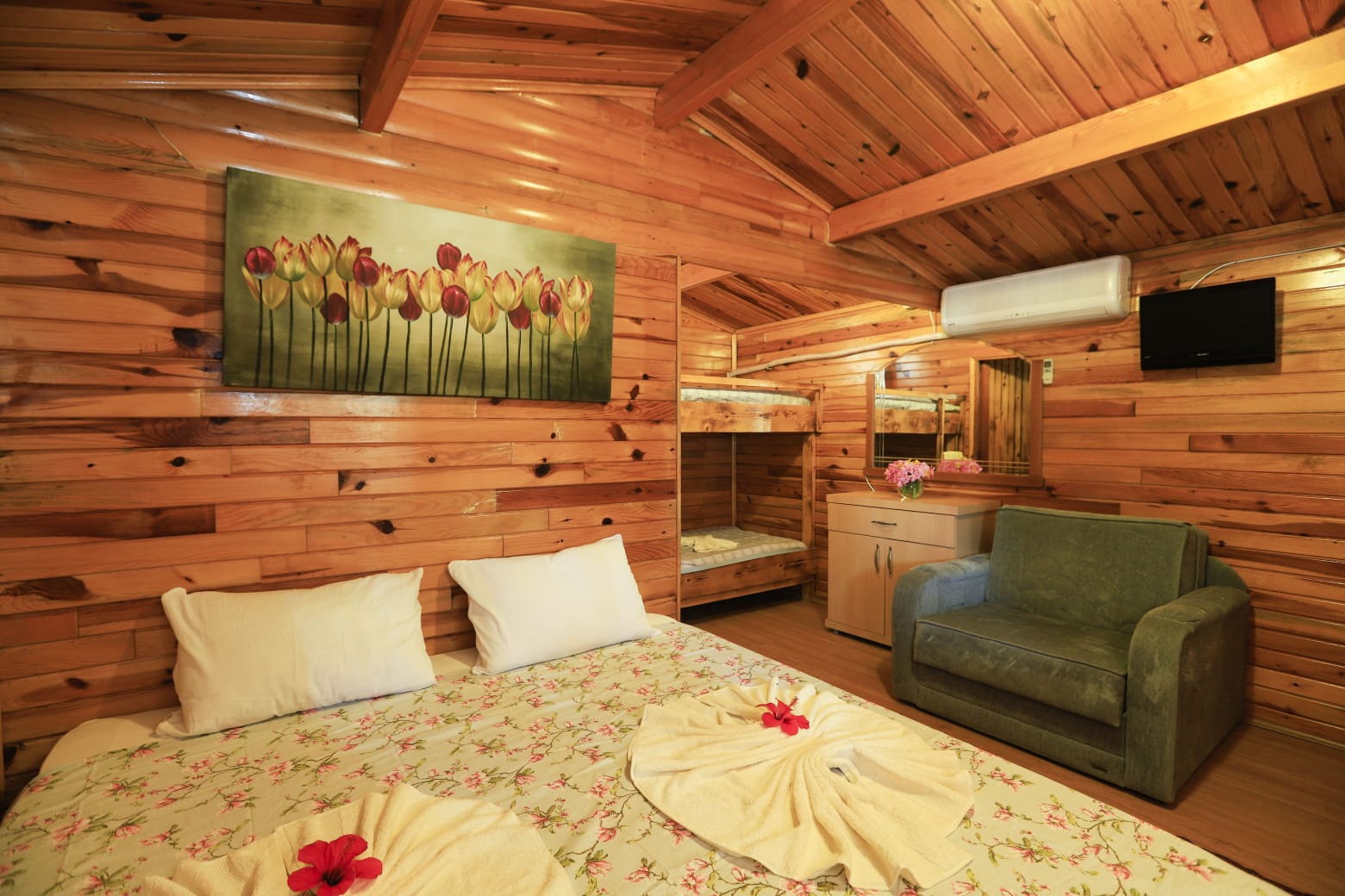 В комплектации номера кондиционер, мини-бар, телевизор, фен, банные принадлежности. Гости размещаются на двуспальной/2 односпальных кроватях и двухъярусной кровати, ванная комната оснащена душем, есть балкон/терраса.