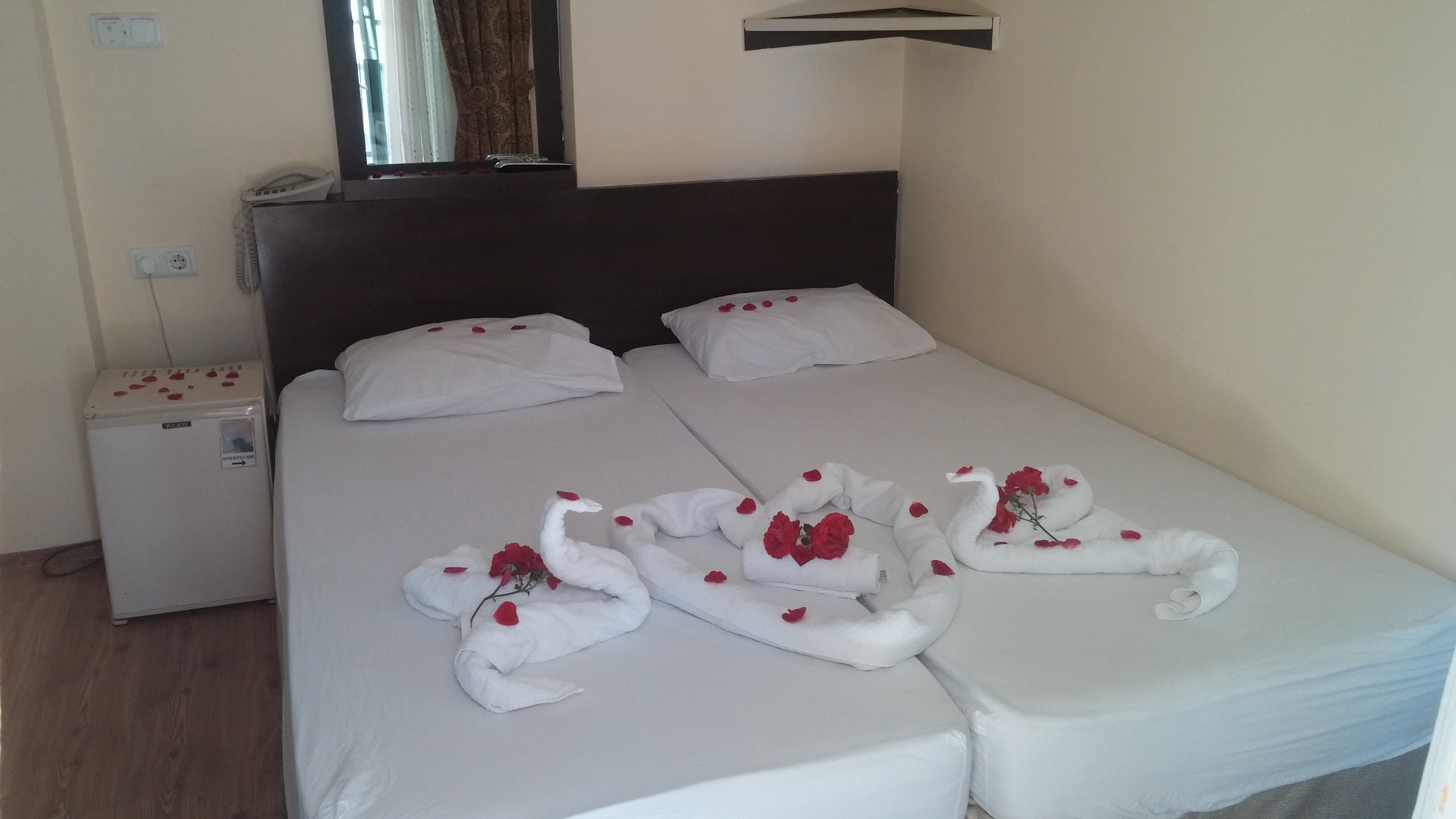 Искала отель с интернетом в номере, и причем быстрым, потому как работу брала с собой в отпуск. И так как отель совсем небольшой, и плюс роутеры установлены на каждом этаже, номеров и желающих посидеть в интернете мало, то интернет у меня просто летал, фильмы можно было смотреть. Еще один плюс отеля в близости к морю. Кормили в принципе хорошо, фрукты были в ассортименте, мясные блюда, пахлава была. Номера в здании трех вариантов: без балкона, с маленьким балконом и просторный номер с нормальным балконом. Меня сначала заселили в номер с маленьким балконом, потом я объяснила, что оплачивала совсем другое, на следующий день переселили. Другую девушку заселили в номер без балкона, она договорилась за 10 евро, ее переселили в номер с маленьким балконом. Девушка, которая занималась уборкой в номерах, только меняла полотенца и застилала постель, еще ставила мыло и шампунь. Но однажды я была в номере, и она пришла, я ей показала на полы, которые не мылись ни разу. Тогда она их отмыла мне с средством! А в туалете, конешно, мыть не стала, я ж там не показывала. Магазины все рядом, вечером есть где погулять по Кемеру, красивые места. Мне мешала спать музыка с баров-кафе, дорога рядом и молитвенные песнопения из мечети в пять утра. Купила беруши в аптеке - вопрос был решен. Хозяева к гостям относятся доброжелательно, все вопросы решают сразу (телевизор настроить, одеяло, интернет сбился).