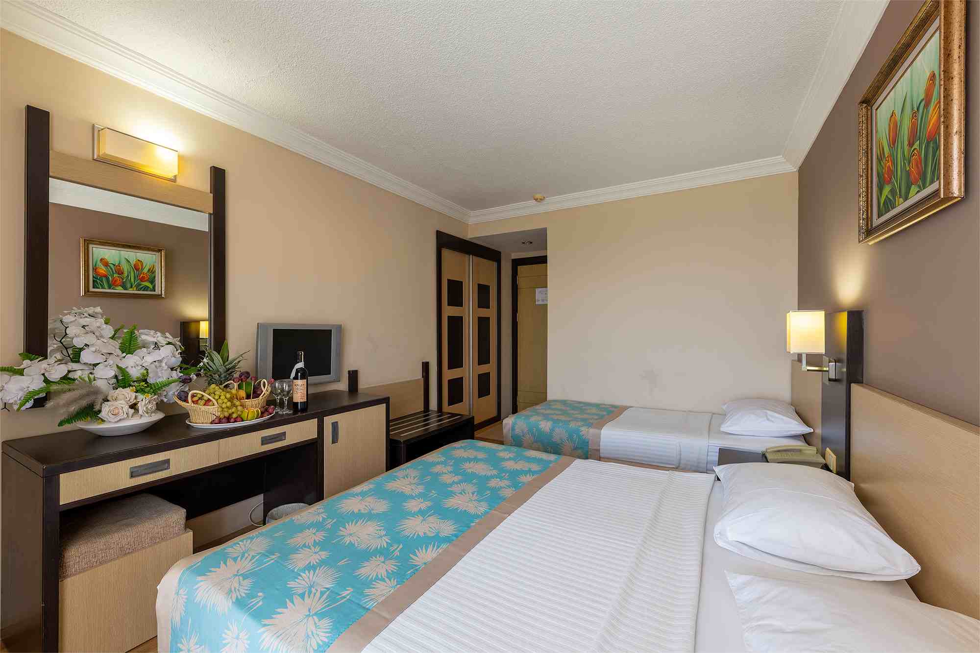 Основным положительным моментом этого отеля является его расположение - камни бросают с галечного пляжа через небольшую пешеходную дорожку прямо в чистое бирюзовое море (имейте в виду, правда, что он круто расставляется по полкам, поэтому необходима осторожность при посещении с детьми) . Направляйтесь прямо, когда вы выходите из зоны бассейна и набережной ведет прямо в пристань. До магазинов и ночной жизни в центре Кемера также всего несколько минут ходьбы. Что касается самого отеля, то для отеля с такой классификацией - чистые, опрятные и тихие в номерах, выходящих на море, - все было в порядке. Персонал в целом был полезен, особенно Наталья на ресепшн и ее коллега Огулкан, который пошел выше и дальше, даже дошел до того, что понес новый холодильник для мини-бара взамен нашего, который был сломан. В целом еда и напитки были стандартным тарифом all inclusive - вполне приемлемым, хотя и немного нетворческим. Клиентская группа, когда мы там были, была довольно смешанной (румынская, сербская), но преимущественно русской. С другой стороны, он требует небольшого внимания и некоторого приумножения. Персонал был в основном молодой, плохо говорил по-английски, что порой приводило к некоторой путанице - им нужно чуть больше обучаться. В общем, хотя и хорошие впечатления от отдыха.