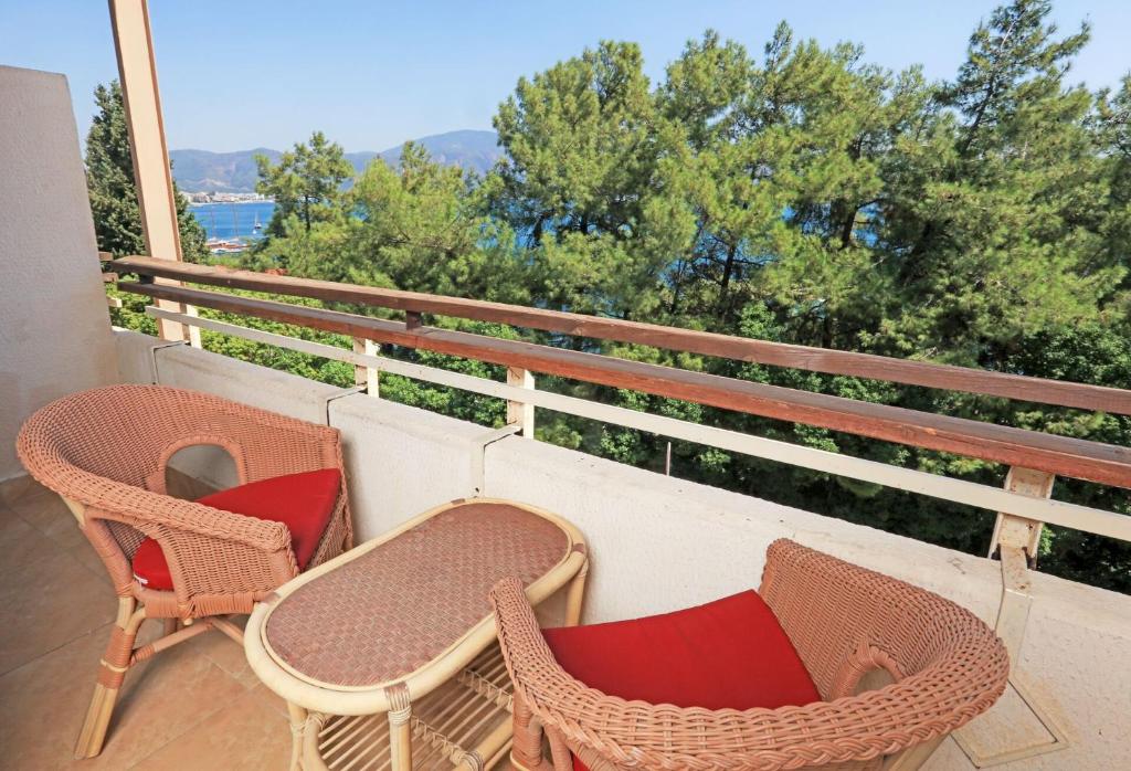 Хотела бы поделиться впечатлениями о проживании в отеле Labranda Mares Marmaris, пока свежо=). Отдыхали семьей из четырех человек - мы с мужем, ребенок 11 лет и мама неделю с 18 по 25 сентября. У нас было бунгало из 3 комнат с достаточно большой террасой и с видом на море (хотя изначально был вид на сад - сделали апгрейд без доплат). Кровати приличные, постельное белье чистое, без дефектов. Но номер в целом подуставший (сантехника нуждается в ремонте в первую очередь, дверь входная закрывалась трудно и была щель). Хотя нас это мало волновало - мы приходили в номер поспать и посидеть на террасе вечером. Уборка была ежедневая, один раз поменяли комплекты полотенец. Воду пополняли ежедневно - по 12 бутылок обычной воды на всех, соки, минералка и сладкая сладкая газировка - все, что заканчивалось, пополняли без напоминаний. Территория огромная, очень зеленая, много красивых ароматных цветов, трещали цикады все время, один раз встретили двух гуляющих черепашек - очень милых. Мы жили наверху - тренировали ноги на подъеме в горку=))) Есть бесплатный теннисный корт и большое футбольное поле. Но в целом впечатление такое же, как и от номера - наверное когда-то это все было впечатляющим, сегодня же не хватает ухоженности... То же самое с лежаками - многое нуждается в ремонте, матрасов мало на лежаках, да и они в пятнах... И вот тут начинается самое мое "любимое", что испортило мне часть отпуска. Всё, что пишут про лежаки на пляже - абсолютная правда! Это просто ужас! Во-первых пляж - точнее для меня это не пляж, а пирс - узкий. Все лежаки, на которых нет людей, заняты полотенцами, иногда не получалось вообще ни одного лежака найти! Приходилось сидеть за столом в пляжном баре или уплывать на понтон и лежать там. Но особенно меня поразило, когда я нашла лежак, передвинула его туда, где есть свободное место, ко мне подошел работник бара и выгнал!! Заявив, что эта зона для постоянных гостей и что она платная. Полежать на солнце платно в этом отеле, имейте ввиду... На следующий день эту зону оцепили красно-белой клейкой лентой для меня это шок. Очень красивый залив, теплое чистое море, шикарная природа - но это абсолютно не заслуга работников отеля. Если бы не веселые пацаны аниматоры Эмре и Эрос, опыт с пляжем очень испортил бы мое пребывание в этом отеле и больше тройки я бы не поставила... После обеда мы ходили к бассейну (кстати, там лежаки находились всегда), где ребята проводили игры в бочу, водное поло и дартс, играли вместе с гостями в том числе. По вечерам проводили веселые вечеринки с танцами, с разными тематиками, с приглашенными артистами. В общем, ребятам огромное спасибо, они спасли наш отдых Очень понравился опыт с водными видами развлечений - покатались на таблетках, водных мотоциклах, можно заказать видео-съемку - очень красиво. Это всё платно. По еде - в общей столовой выбор большой, правда достаточно однообразный. Но голодным никто не остался. А сладости там просто наивкуснейшие. Понравился ресторан Дракон - горячие блюда вкусные очень. На обед мы всегда ходили в итальянский снек-бар - пицца на тоненьком тесте спасибо повару за еду и за веселые беседы каждый раз=) Крепкий алкоголь норм, пиво хорошее, коктейли на любителя, бармены приветливые и веселые - один из них учил меня турецким словам=) Детей было мало, моему ребенку было скучновато играл в водное поло со взрослыми дяденьками=) н