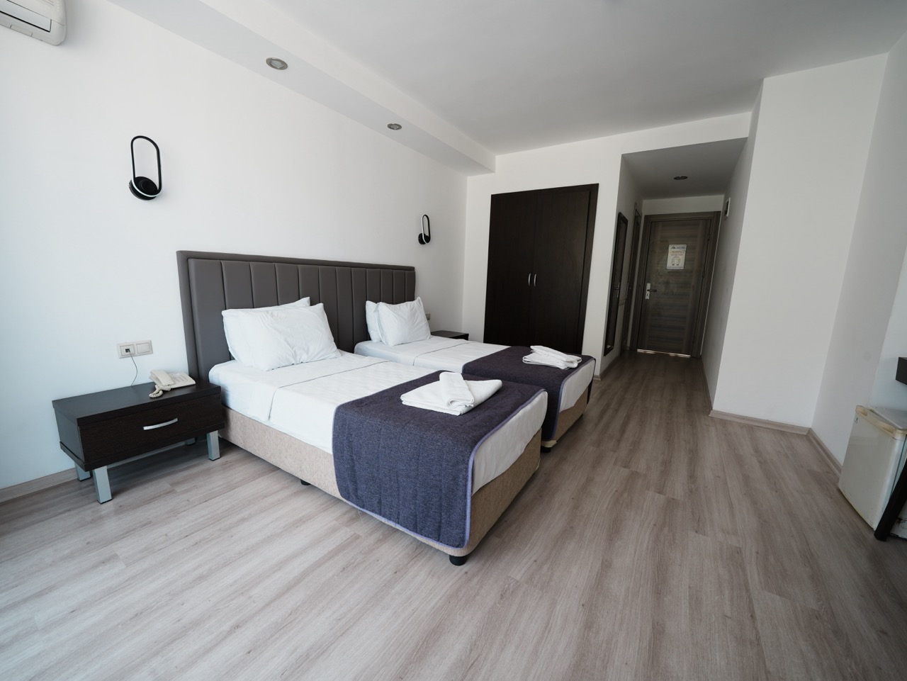 Приехали в отель 16 сентября к 14.00 и нас сразу отправили на обед, чтобы успеть до закрытия ресторана . Зайдя в ресторан, мы поняли, что это ахтунг. Я никогда не видела 4ку с таким ужасным выбором блюд. Одни полуфабрикаты, свежих овощей нет, фрукты: яблоки и сливы, рыба ужасная. Зато картошка фри на завтрак, обед и ужин. Из хлеба был только батон, в итоге мы психанули, купили хлеб и сыр и ходили на завтрак со своими продуктами. Арбузы и дыни, кстати, тоже покупали в магазине. Алкаголь отвратно стандартный, но на 2ю неделю даже розовое вино исчезло и не появлялось. Далее нас заселили, номер стандарт. Номер нормальный, уборка хорошая, но мы особо и не свинячим. А вот дальше приключения, полотенца на пляж нужно требовать, несколько раз нам их просто не меняли, а если и меняли, то 1 раз в день. Пару раз и в номер не доложили полотенца, объяснив, что не хватило. Очень раздражало, что мы доплатили за вид на море, но там же находится бассейн, где днем и ночью орала русская попса. Единственный плюс - всегда были лежаки на пляже и пляж чистый. Отель своих денег абсолютно не стоит. Отдыхали в Ичмелере 4й раз и это был самый отвратительный отель. Не рекомендую!