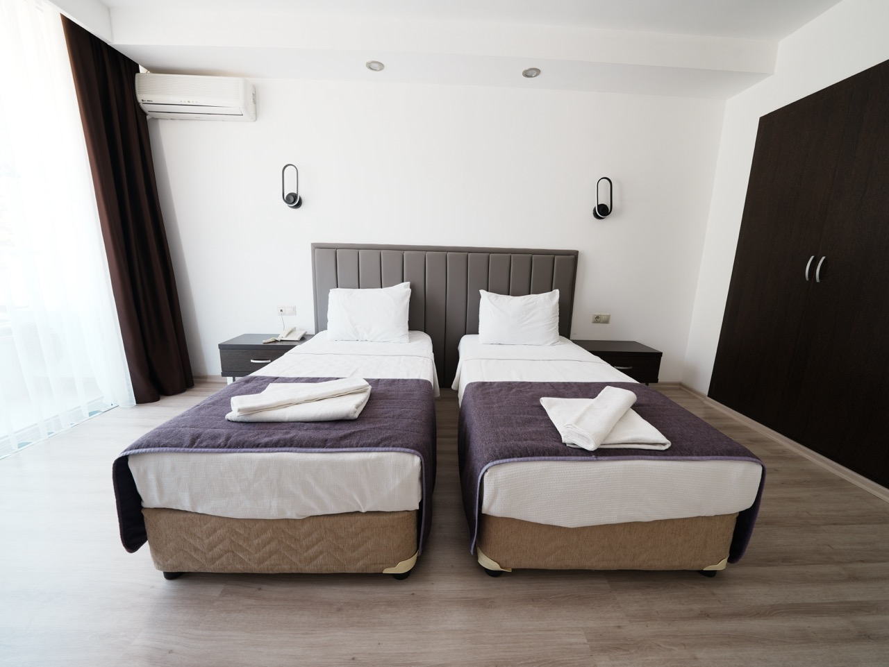 Отдыхаем сейчас в этом отеле. Удачное расположение всего в 70 метрах от пляжа. На пляже собственные лежаки с зонтиками. Полностью не занимаются в любое время. Маленькая совсем территория но очень уютно. Бассейн с шезлонгами и ресторан закрытый зеленью от улицы. Белье и полотенца меняют каждый день. Пляжные полотенца выдают на ресепшене. Не готовят барбекю и омлеты из за ковида. Мини бар отсутствует по этой причине. Персонал доброжелательный . Мороженного нет. Для любителей небольших городских отелей замечательный вариант.