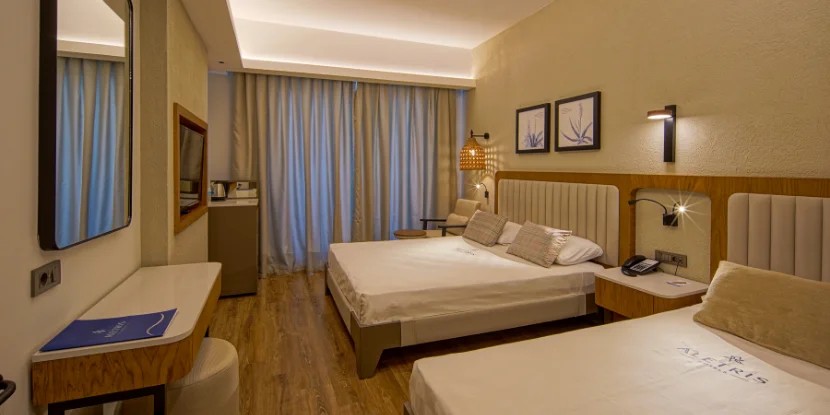 Уютный номер с балконом и видом на море. В номере одна двуспальная и одна односпальная кровать, Wi-Fi, кондиционер, телевизор, мини-бар, сейф, телефон, чайный набор. Собственная ванная комната укомплектована душем, феном и банными принадлежностями.