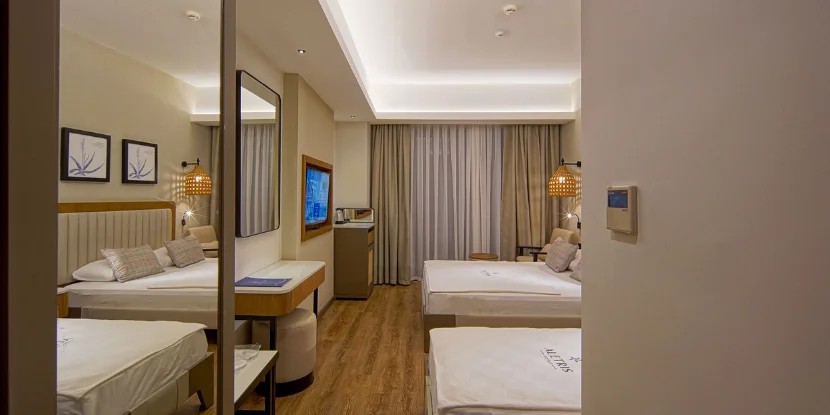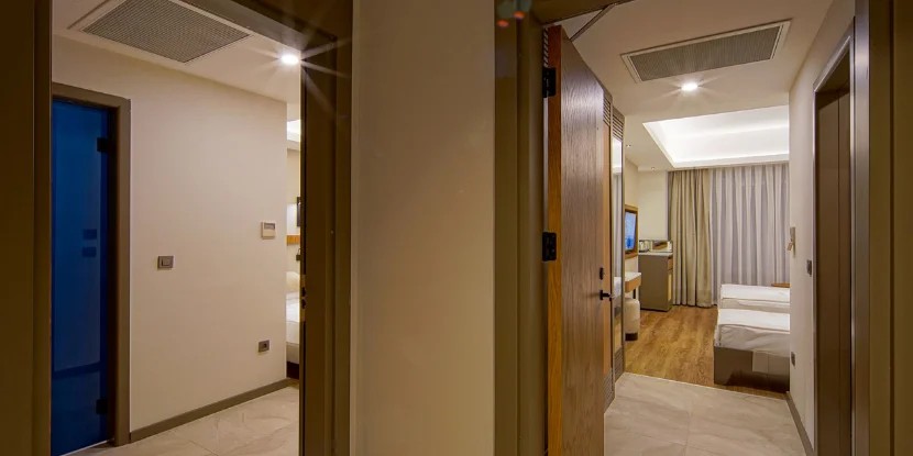 Комфортабельный номер с 2 спальнями, разделенных межкомнатной дверью, ванной комнатой с душем и балконом. Укомплектован телевизором, кондиционером, сейфом, мини-баром, Wi-Fi, телефоном, электрическим чайником, феном, туалетно-гигиеническими принадлежностями.