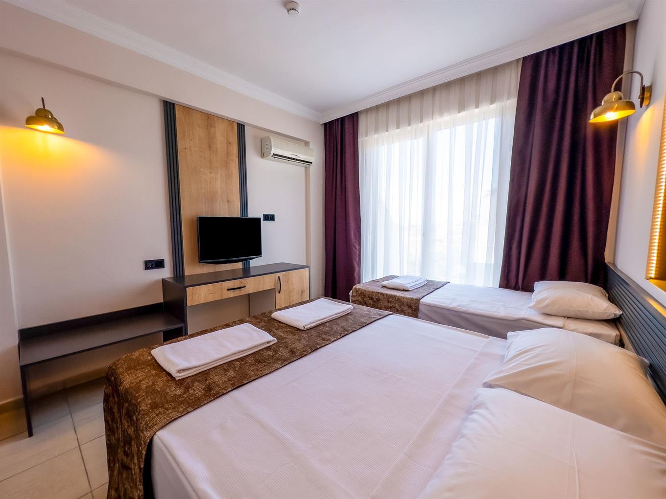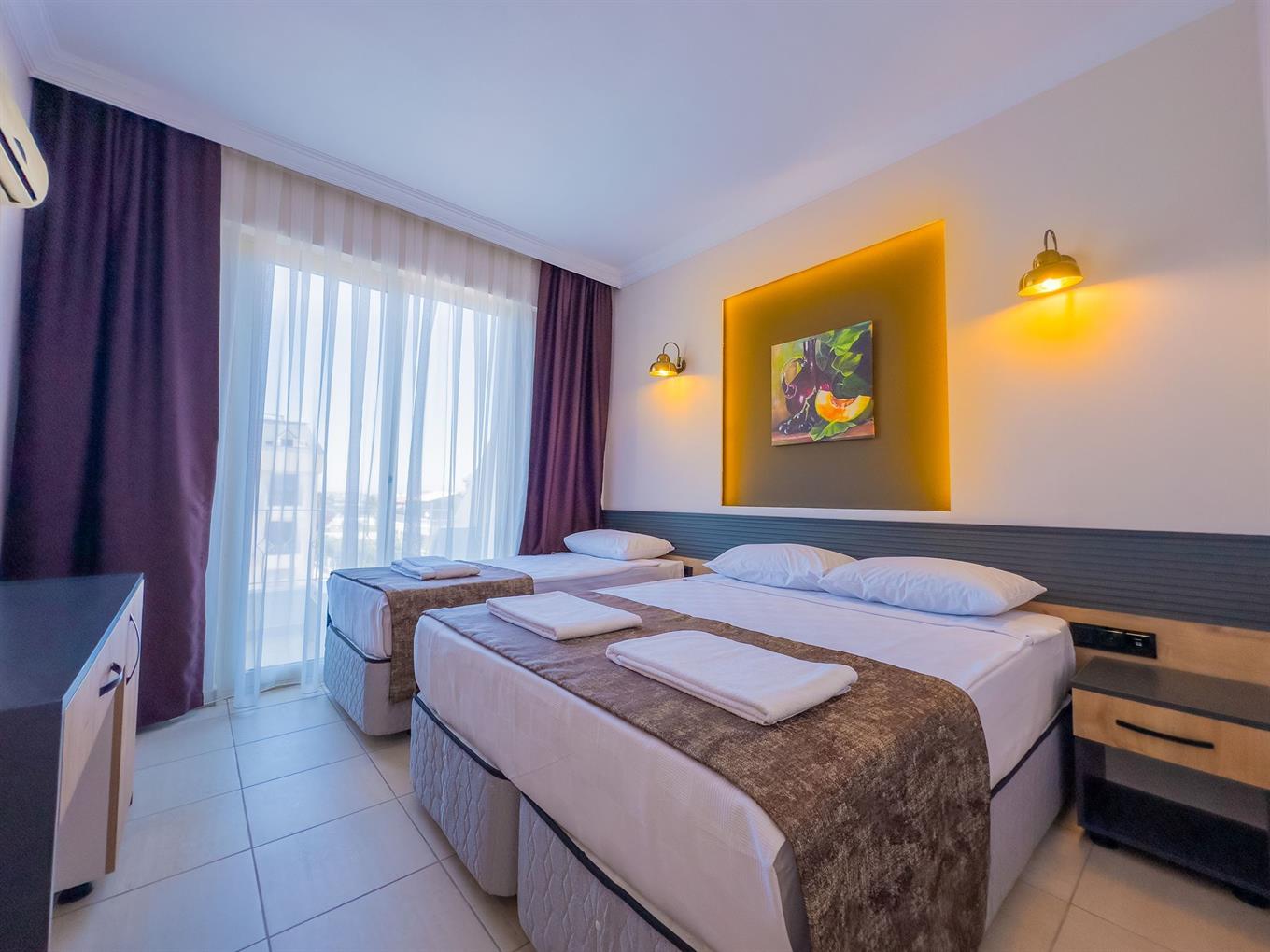 Отдыхали с 22 июля по 2 августа. Слава богу нас переселили на 8 день в другой отель когда начался пожар, еда ужасная однообразная, управляющая отелем Марина сказала у меня на каждого из вас в день 10 долларов , я не могу на эти деньги кормить вас мясом и рыбой. Из спиртного противное вино. Дети подходили за газировкой им наливали на 2 глотка и с такой фразой что ты ведь только что газировку наливала ты говорит кококольная душа всю газировку выпила. Разве можно так говорить? Мы приехали в праздник, отдыхали одни турки, столы ломились, угощали их от всей души, как только они уехали повар ушёл на выходной, дам дали рис пустой, макароны и фасоль. Мы собрались все русские туристы и пошли разбираться с Мариной, а она говорит а смысл вам готовить если вы все выкидываете, мы продукты переводим, а мы говорим было бы вкусно ни кто бы и не выкидывал. В итоге она сварила дома борщ и сделала сладости и привезла нас кормить. Я сколько отдыхаю в Турции но такого не встречала ни где. Вообще дурдом. Турки отдыхали везде был срач , они купались в бассейне до 12 ночи, а нашим детям орали пошли вон из бассейна, после 19 купаться нельзя в бассейне. Автобус едет на море с запозданием, стоишь ждешь на солнцепеке с детьми, ходили ругались просили делать 2 рейса, так как все не влазили. Дурдом а не отель. Персонал без перчаток, без масок, форма одежды свободная, рваные джинсы, грязная голова, курят везде где захотят, на баре то же самое, тарелки и кружки моют в ручную, берешь в руки а с них вода течёт и остатки еды, так противно.... Тем более это в период пандемии, где должна быть чистота. Не ездите это помойка... Нас перевезли в другой отель и мы жили как боги, это небо и земля. Кстати когда начался пожар все отели включили генераторы, кроме нашего отеля, там просто его даже не было. За 8 дней номер ни разу не помыли. Туалетную бумагу попросили а они говорят вы что её едите что ли?? Представляете? Хамство там зашкаливает. Удивляешся как они вообще получили лицензию на работу. Антисанитария.