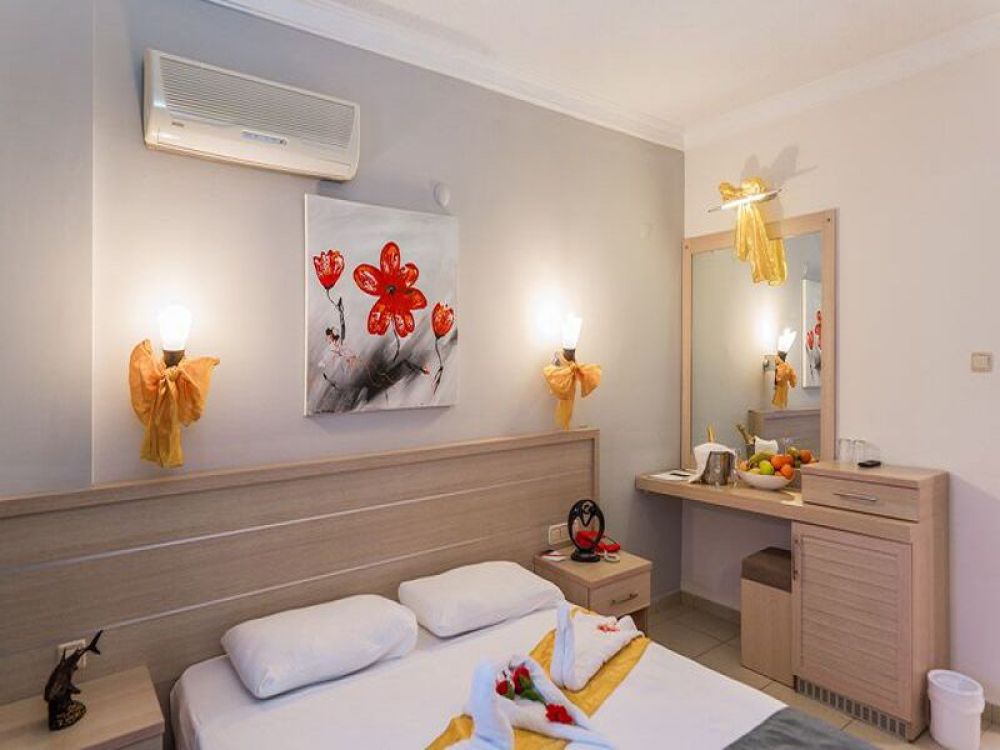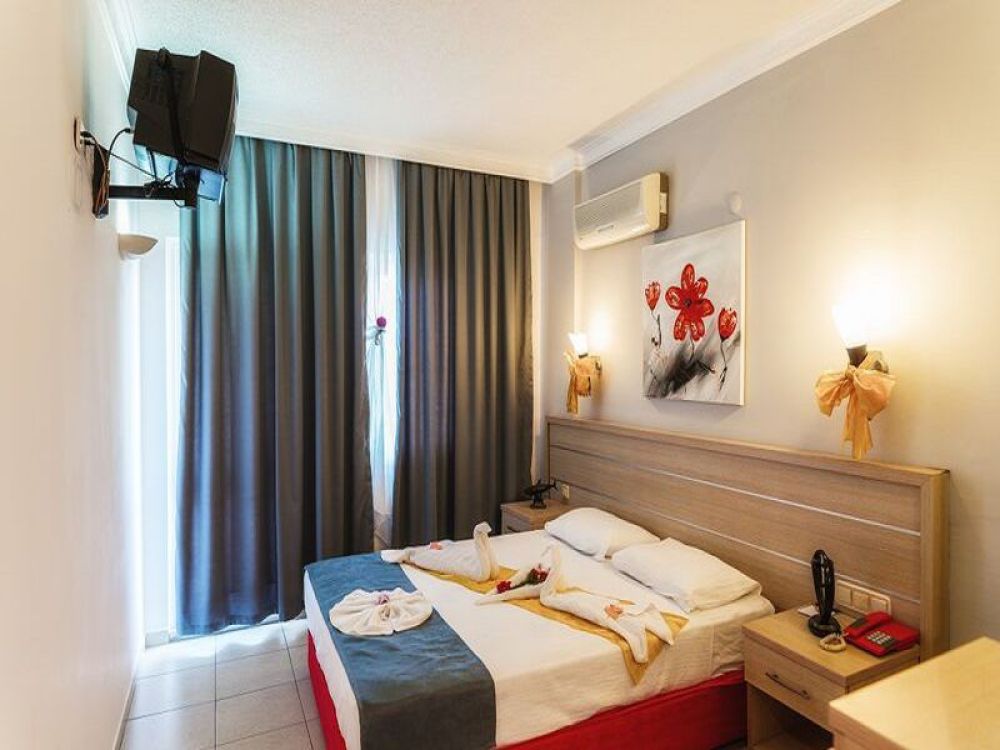 У нас с сестрой был недельный отдых с ограниченным бюджетом, поэтому выбирали из бюджетных отелей. Выбор пал именно на этот отель, т. к. он предлагал живую музыку, хорошую анимацию, шаговую доступность к морю и при этом наличие шатла, красивые виды территории. Мы были немного разочарованы по приезде запущенностью и неухоженностью открывшихся видов. Видно, что отель переживает не лучшие времена, нуждается в финансовых вложениях. У нас был ранний прилёт, нам надели браслеты, отправили на завтрак, сказали, что номер будет готов только к 14.00. Чтобы не терять время даром, переодевшись, мы отправились к морю. Вот оно не разочаровало нас. Ласковое море моментально смыло дорожную усталость и разочарование, подняло настроение, оживило и зарядил энергией. По дороге с моря мы прогулялись по мини-базарчику, затем пообедали и получили долгожданный номер 303. Он был довольно приличным, с хорошим видом на бассейн, все работало! Номер каждый день добросовестно убирала приятная девушка, нам выдали тапочки, всегда пополнилась туалетная бумага. Хочется отметить доброжелательность и трудолюбие персонала:официантов, барменов, работников на ресепшене и других. Благодаря их стараниям мы ставим оценку выше средней. Но, на наш взгляд, аниматор работал спустя рукова, вечера скучные, с бесконечной турецкой музыкой. Мы совершенно не против красивой турецкой музыки, но поскольку среди туристов были представители других национальностей, хотелось бы, чтобы репертуар был разнообразными и интересным для всех отдыхающих. Живой музыки мы так и не услышали. Мы нашли выход, чтобы разнообразить наши вечера: мы прогуливались по чудесной набережной, где можно было посидеть на лавочках, подышать свежим морским воздухом, послушать хорошую музыку, во многих отелях-живую. Наш отдых в общем-то удался. Туристам хочется пожелать не скупиться на чаевые, не скандалить, находить плюсы в минусах. Руководству отеля хотелось бы предложить:установить кондиционеры в лобби и ресторане,в зале приготовления пищи-хорошую вытяжку и посудомоечную машину, обновить посуду, закупить чайные ложечки, расчистить прилегающую к отелю территорию от хлама и мусора,изменить дизайн лобби и ресторана. И напоследок хочется отметить Спа-салон, где работают массажисты высокого уровня! Нелюх и Фуркан, спасибо вам!!