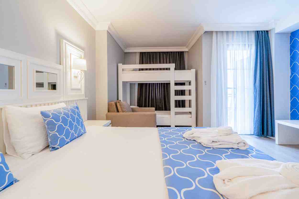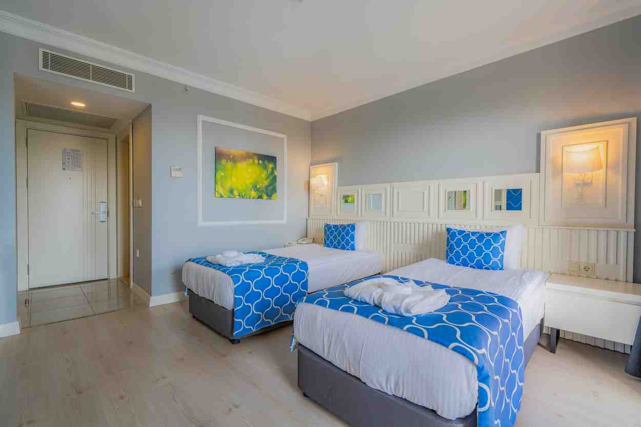 Качество отеля в целом оправдывает свою стоимость. Плюсы: • разнообразное и вкусное питание; • ухоженная территория; • отзывчивый персонал; • всегда есть свободные лежаки и у моря, и у бассейна; • вкусный турецкий кофе в кофейне; • большой выбор десертов для сладкоежек. Минусы: • дорога из аэропорта занимает около 3 часов; • детский мини-клуб работает формально: аниматор не заинтересован, мини-диско однообразное и рассчитано скорее на малышей (для ребёнка 6 лет уже неинтересно); • уборка номеров оставляет желать лучшего; • дверь на балкон закрывается только на самодельный крючок и остаётся щель, через которую ночью хорошо слышно шум от трассы; • отель стоит у трассы, и для номеров главного корпуса с окнами на дорогу очень шумно; • в 5:20 утра слышен азан из мечети, и просыпаешься волей-неволей.