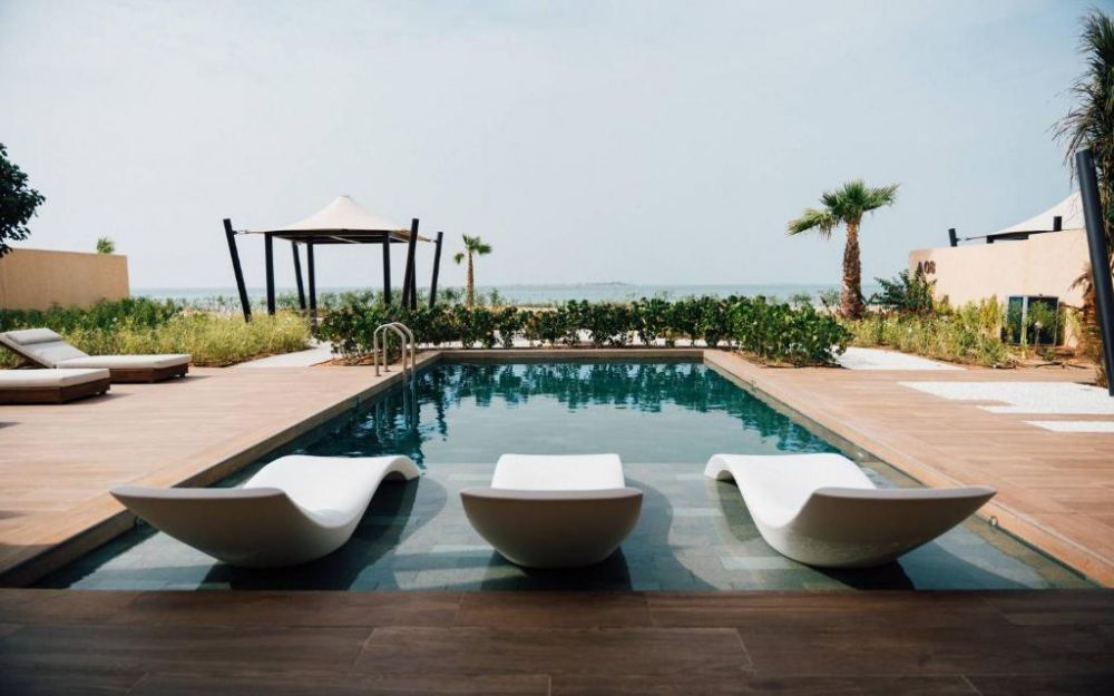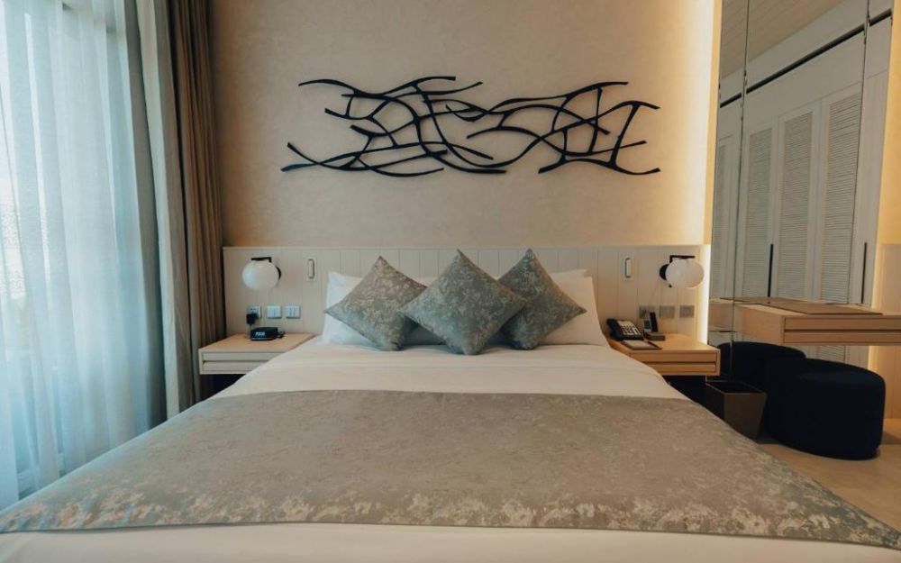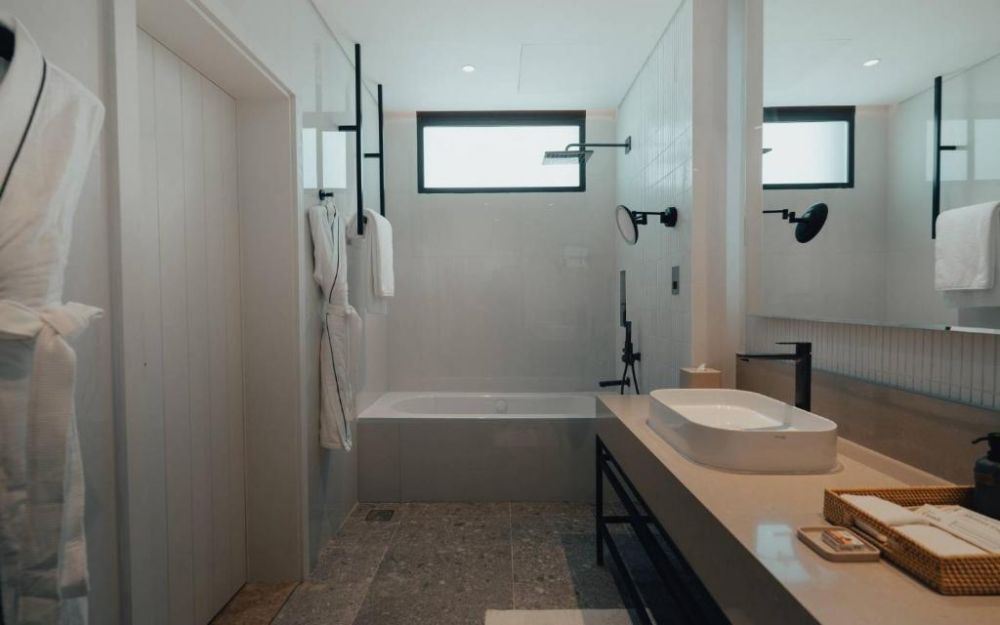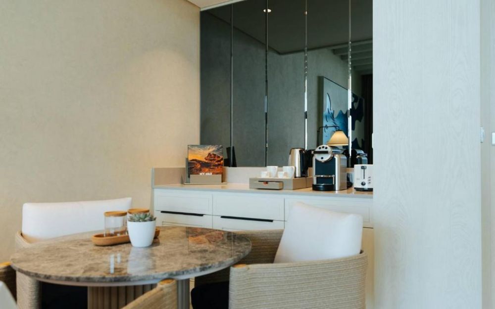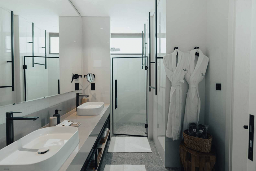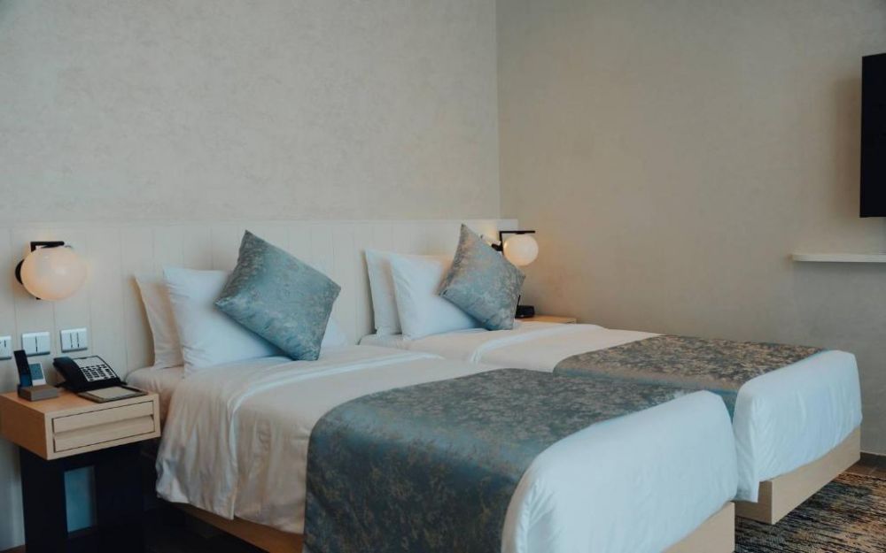 В номере есть две спальни, оборудованная гостиная, ванная комната с душем и ванной, терраса с бассейном. В удобства включены мини-бар, беспроводной Интернет, кондиционер, телевизор, телефон, чайный набор, косметические наборы, фен, халаты, тапочки. В главной спальне установлена двуспальная кровать, во второй комнате — 2 односпальные кровати.