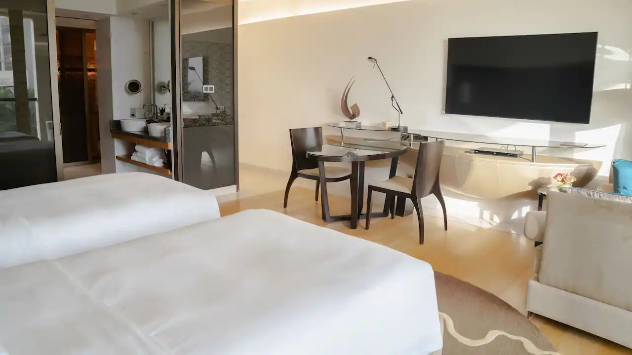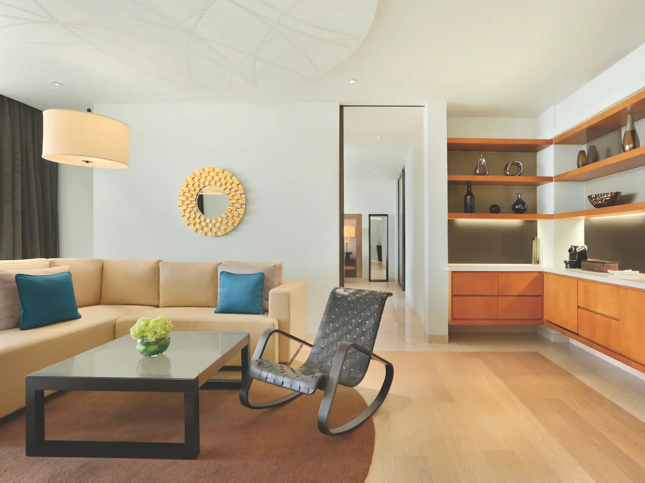 Отдыхали в Park Hyatt Abu Dhabi Hotel & Villas с 16 по 22 сентября вдвоём с другом. Это наше второе посещение парк хайят, и мы не пожалели что остановили свой выбор вновь на этом замечательном отеле. Прекрасно всё, начиная от заселения с онлайн регистрацией, до апгрейда номера и позднего выезда. Очень приятно видеть знакомые лица среди персонала, ещё приятней, когда тебя узнают) и говорят welcome back. Прилетели Etihad airways сразу в Абу-Даби, трансфер не заказывали, доехали на такси, примерно 80 дирхам, ехать 20 минут. Отель произвёл только самые лучшие впечатления! Номер шикарный, просторный, современный и очень удобный на 6 этаже с потрясающим видом на море. Уборка всегда своевременная и качественная. Хочется поблагодарить ребят и девушек из ресторана The cafe , всю вашу команду(к сожалению не знаю всех по именам, запомнил Саид,Жасмин), за то что всегда готовы помочь, дружелюбные, отзывчивые, учитываете все пожелания. еда вкусная, разнообразная, сервис на высочайшем уровне. Каждый завтрак и ужин превращался в настоящее удовольствие. Вкусный кофе, большой выбор свежих соков, фруктов,сыров, прекрасно приготовленные стейки. Также хочется отметить сотрудников на ресепшен очень вежливые, внимательные, всегда готовые помочь, вызвать такси, подсказать что-то. Благодаря этому чувствовали себя комфортно. Особая благодарность парню Саид из охраны, спасибо за помощь и тёплые приветствия. Брали билеты в три развлекательных парка на выбор прямо в отеле около консьержа. Получилось 540 дирхам. Выгоднее, чем брать в один парк, на сайте цена 345 дирхам за один. Советую. Всё парки расположены в районе Yas mall, цена за такси примерно 50 дирхам в одну сторону. Пляж чистый, территория ухоженная, белый песок, чистая бирюзовая вода, температура и воды, и воздуха 34°, бассейны просторные. Пляжные полотенца и воду со льдом всё приносит пляжный персонал. Атмосфера спокойствия и уюта позволяет полностью расслабиться и насладиться отдыхом. Мы остались в восторге, хотели бы выразить глубочайшую признательность всему персоналу отеля Park Hyatt за чудесный отдых и вернуться сюда снова!