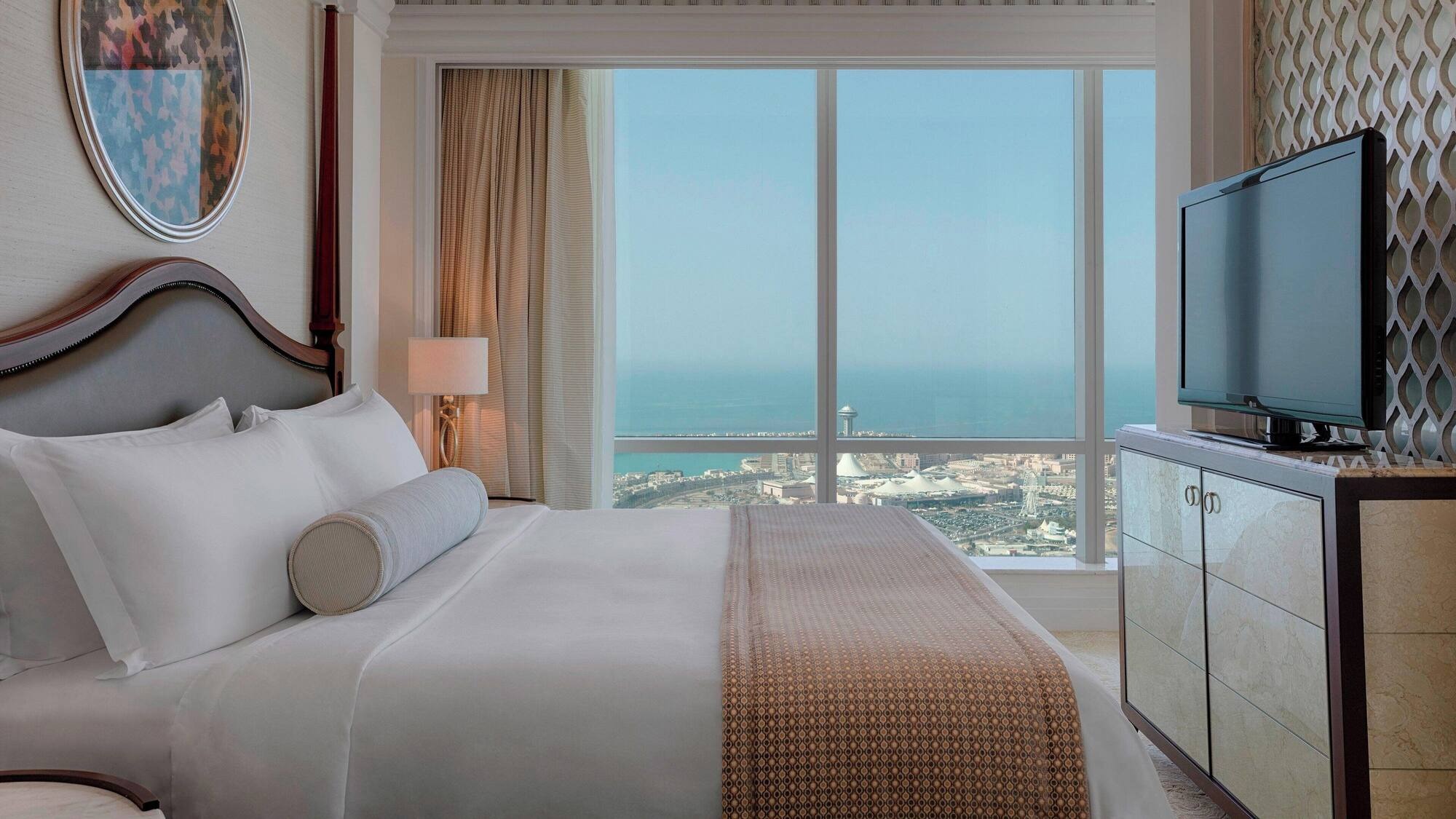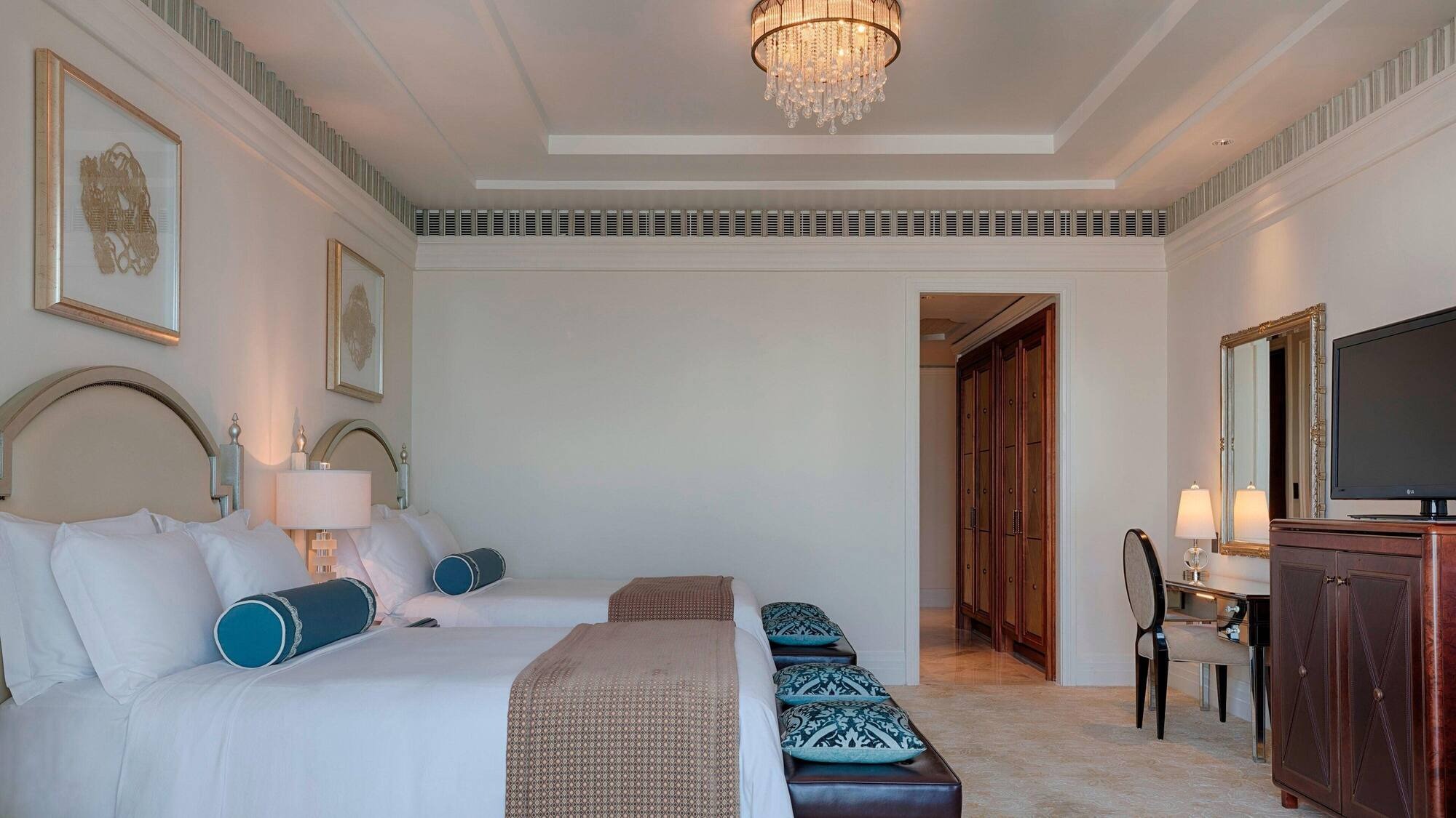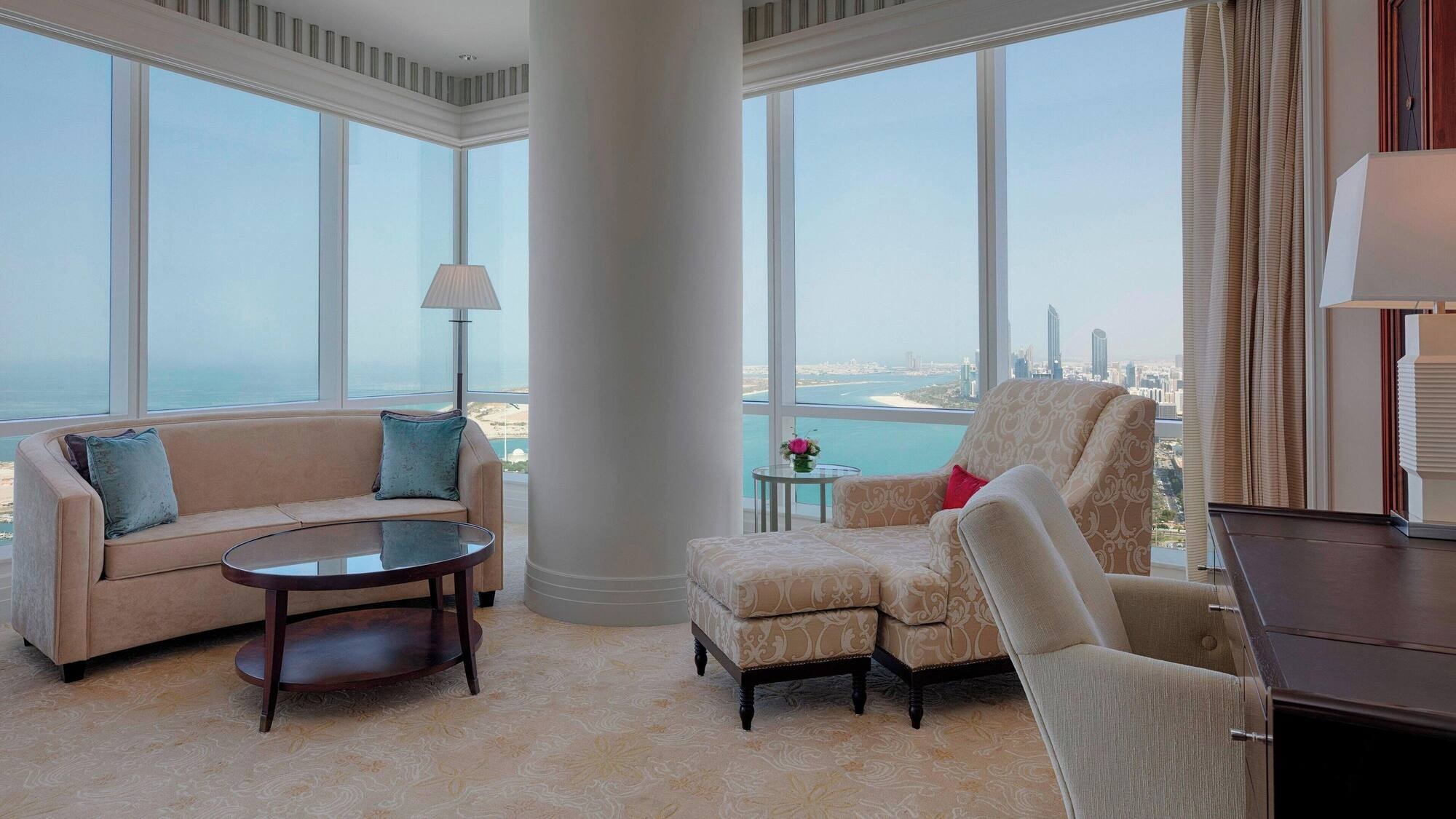 Отдыхали в отеле St.Regis в конце сентября 7 ночей трое взрослых. У нас был номер Grand deluxe suite. Увидели в этом отеле для себя только плюсы: 1. Отличный номер с великолепным видом (мы жили на 43 этаже). Очень красивый, есть все необходимое, уборка на 5 . И вообще интерьеры отеля каждую минуту радовали наш глаз. 2. Великолепный персонал во всех службах отеля. Нам очень понравилась работа всех сотрудников, но особенно хотелось бы выделить тех, с кем мы больше общались. Наш батлер mr. Ghanshyam Kumawai. Он был с нами каждый день, удивлял и радовал. Настоящий профессионал. В ресторане нам помогали mr. Chathura Gayan , mr. Thirupathi , ms. Katеrina. Очень приятное и душевное общение и высочайший профессионализм. Также отдельное спасибо хотим сказать консьержу mr.Erwin Rachim, который быстро и четко организовал нашу поездку в мечеть (зарегистрировал нас и помог с женской одеждой). Мы посещали много отелей в разных странах, но с таким идеальным сервисом встретились впервые. Очень надеемся, что отель дорожит такими сотрудниками, потому что со своей стороны они выкладываются на работе на 100%. Кроме того у нас возникло приятное ощущение, что нам искренне рады. 3. Про питание в отеле написано много хороших отзывов, присоединяемся к ним, повара знают свою работу, несмотря на то, что мы были на HB, лишние килограммы приехали с нами домой, потому что все было очень вкусно и очень красиво. 4. Так как мы приезжали в основном для пляжного отдыха, то каждый день проводили на пляже и у бассейна. Пляж отличный, широкий, отель засыпал его белым песком (это хорошо видно сверху, на соседних пляжах песок серый). Лежаки, зонты удобные, всегда были места. Сотрудники на пляже и у бассейна тоже отличные, всегда помогали и приносили воду. Бассейн небольшой, но очень красивый и хорошее джакузи. Единственное, что бы мы хотели предложить отелю в качестве улучшения, это сдвинуть буйки хотя бы метров на 5 глубже, потому что во время отлива приходится ходить до них пешком, а песок на дне не очень приятный. Нам повезло, что отливы в период нашего пребывания были смещены на ночь и утро и когда мы приходили на пляж, вода уже начинала прибывать. Но все равно после Саадията, на котором мы жили перед этим неделю в другом отеле, нам было не совсем комфортно. 5. Резюмируя хотелось бы сказать, что мы под впечатлением от посещения отеля и влюбились в сеть St.Regis. Приехав домой начали планировать следующие путешествия именно в этой сети. Если мы еще раз соберемся в Абу-Даби, то обязательно выберем этот отель для посещения и всем рекомендуем.