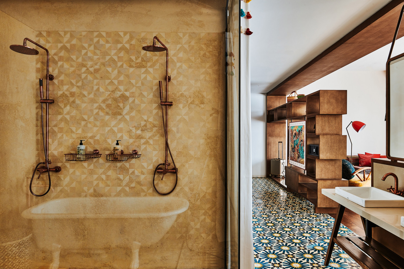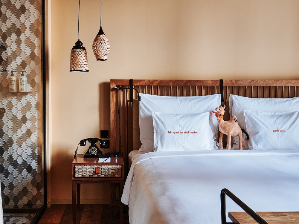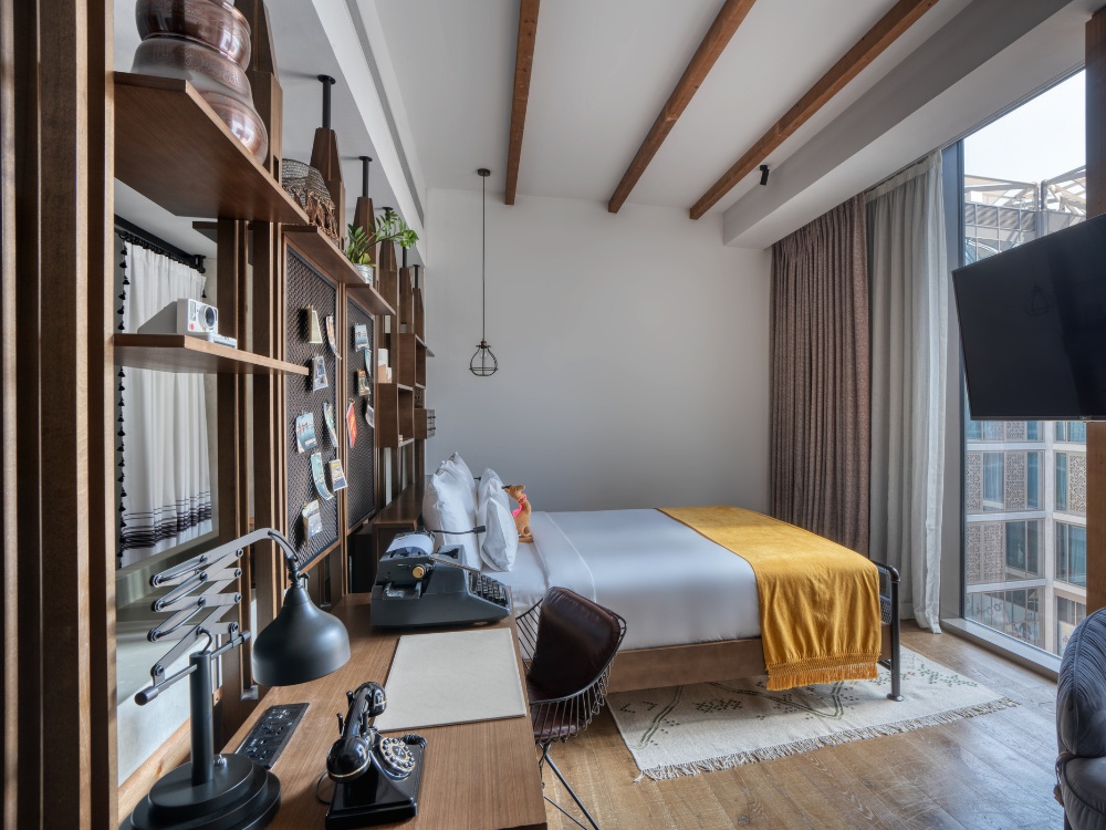 Комплектация номера включает двуспальную кровать king-size, кондиционер, телевизор, телефон, мини-бар. В числе прочих удобств Wi-Fi, фен, туалетно-косметические принадлежности. Ванная комната с душем и ванной.