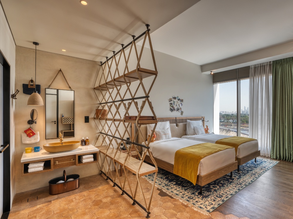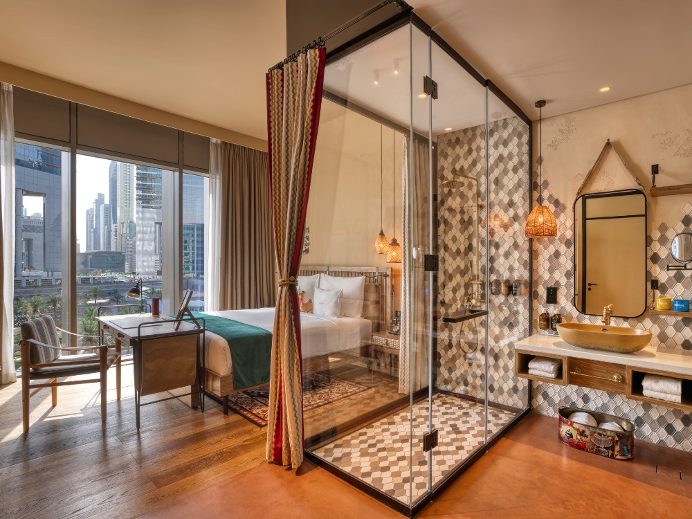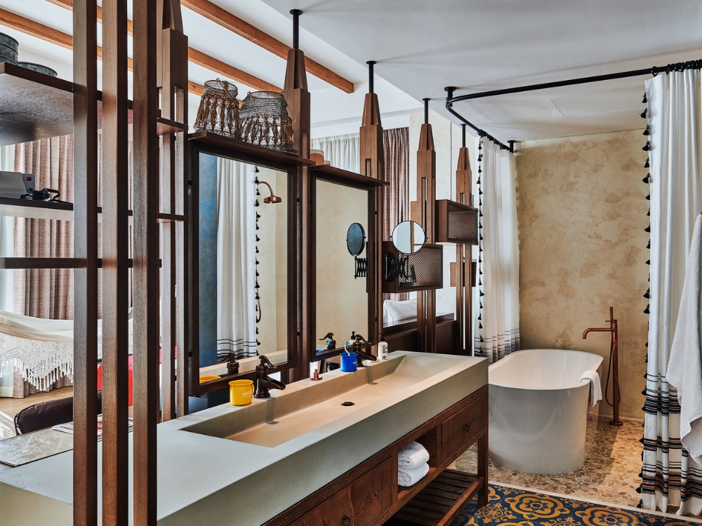 В комплектации номера двуспальная кровать king-size, кондиционер, телевизор, телефон, мини-бар, беспроводной Интернет. Ванная комната с душем, ванной, феном и туалетно-косметическими принадлежностями.