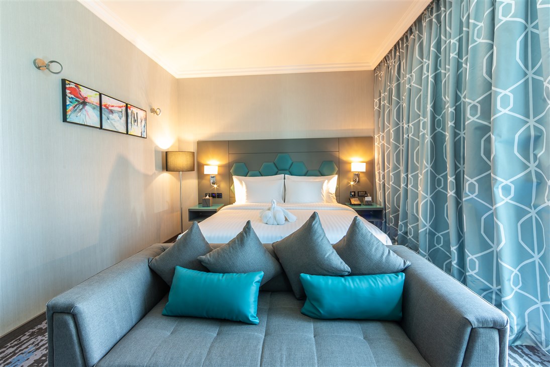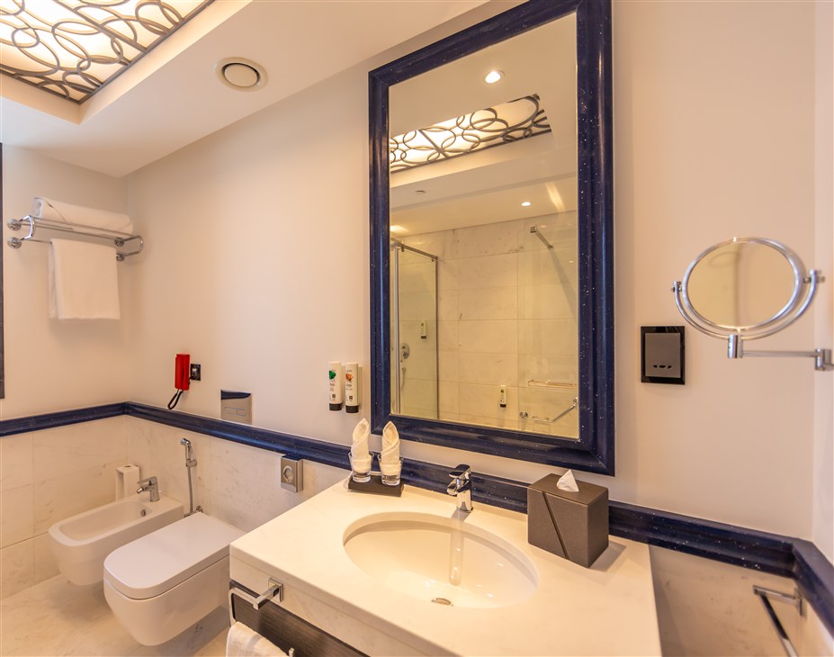 Премиум номер оснащен кондиционером, мини-баром, телевизором, телефоном, набором для чая и кофе. Гости размещаются на двуспальной кровати king-size/2 односпальных кроватях. В ванной комнате душ, ванна, туалетные принадлежности.