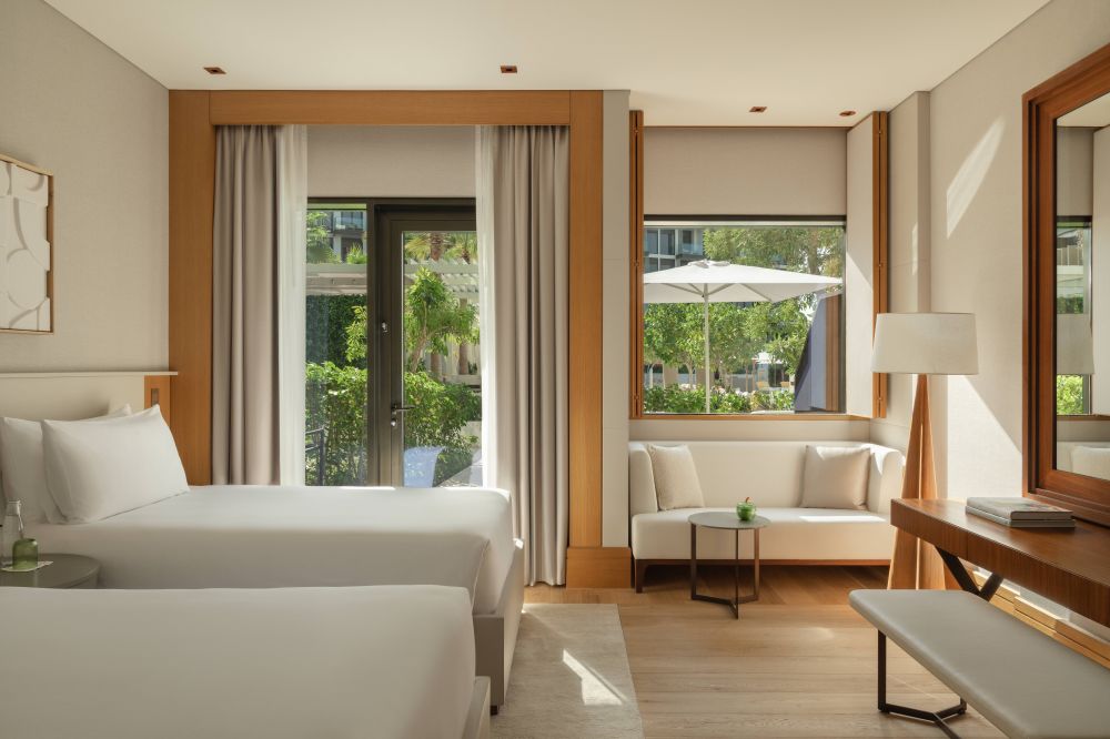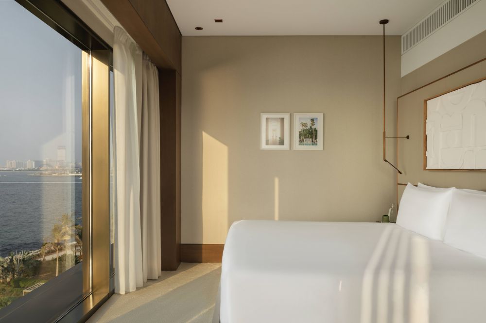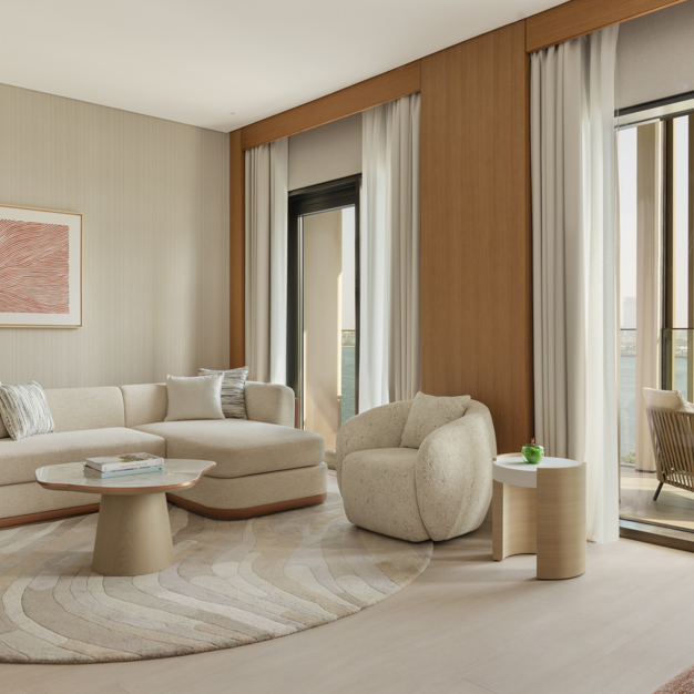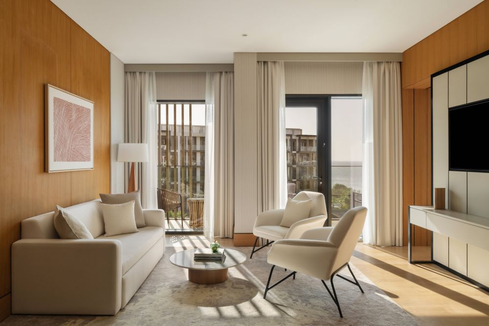 Номер включает спальню с двуспальной кроватью и гостиную с комплектом мягкой мебели. С террасы открывается вид на море. Ванная комната оснащена ванной, феном, косметическими принадлежностями. В числе прочих удобств кондиционер, телевизор, телефон, мини-бар, сейф, чайный набор, халаты, тапочки.