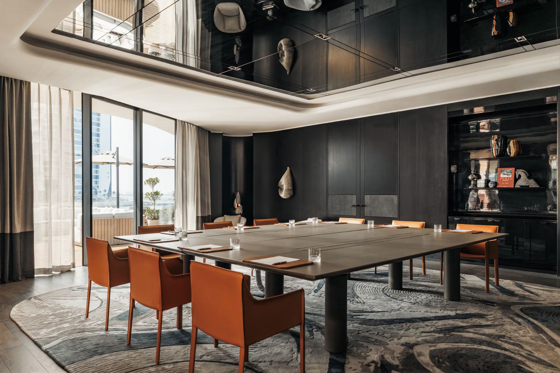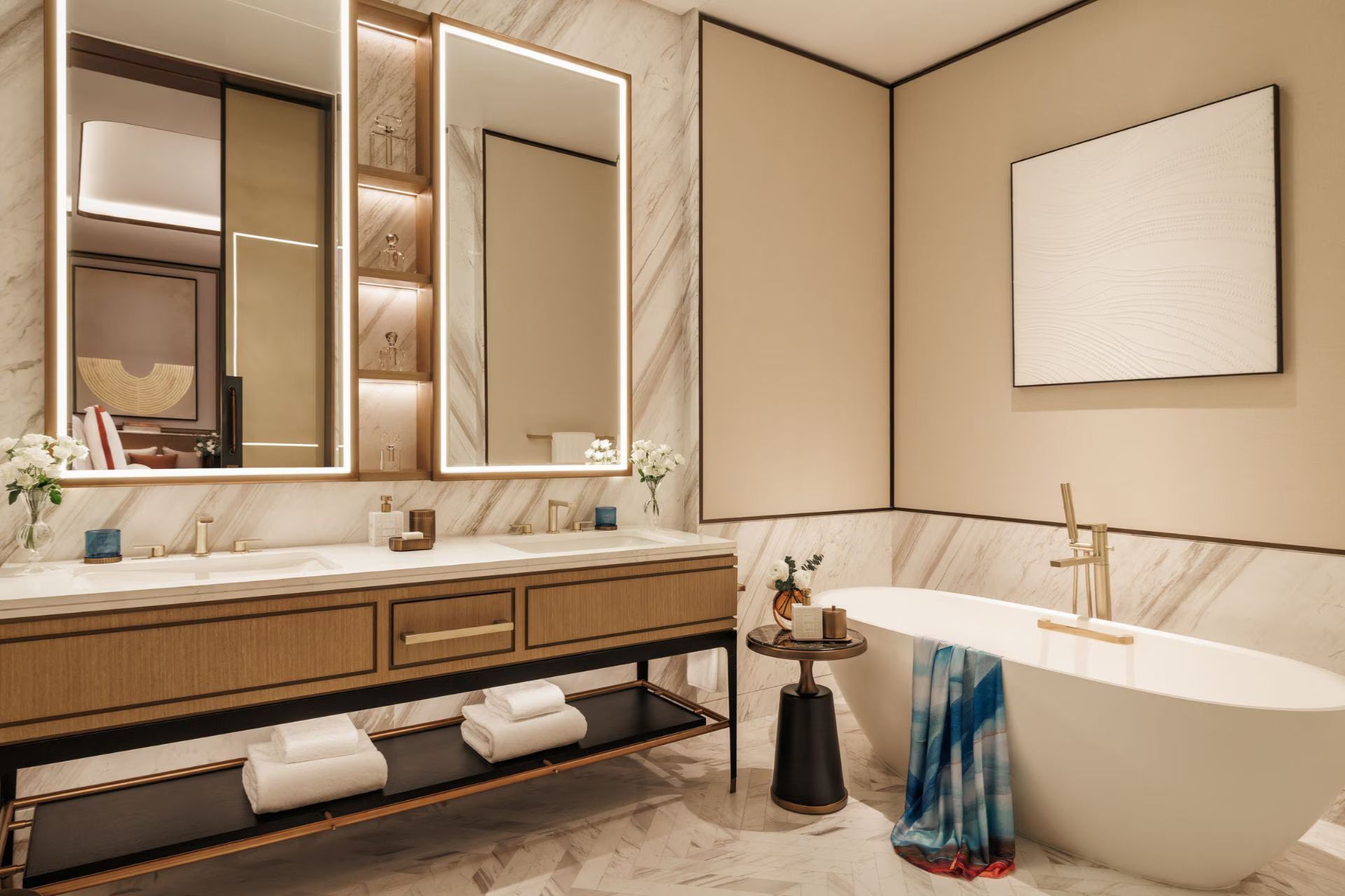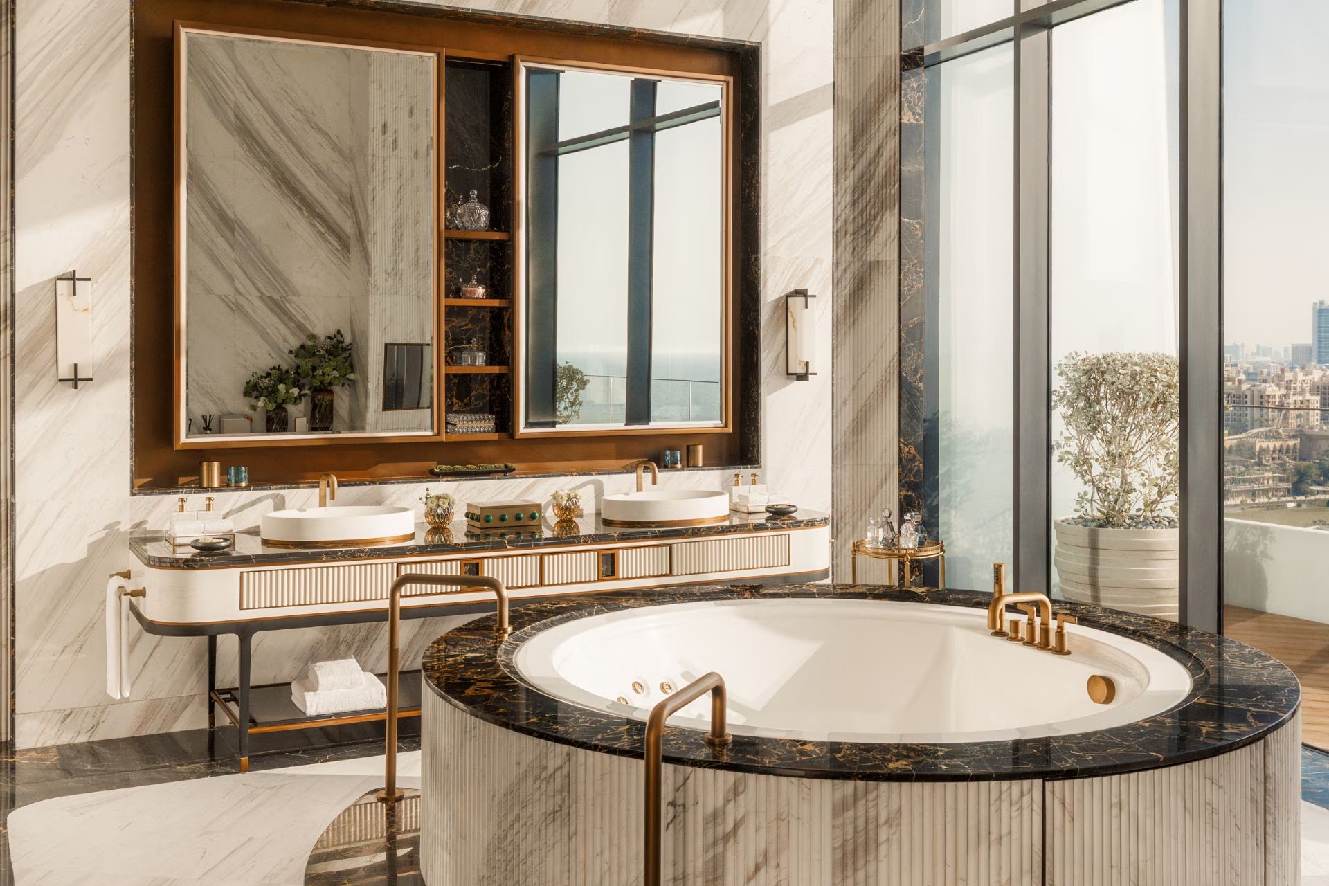 Номер оформлен в современном стиле, есть просторная меблированная терраса с панорамным видом на пристань для яхт и Burj Al Arab, собственной ванная комната с душем и ванной, гардеробная комната, спальня с двуспальной кроватью, зоной отдыха с диваном. Из удобств телевизор, Wi-Fi, кофемашина, мини-бар, фен, халаты, тапочки, гигиенические принадлежности, панорамные окна, услуги батлера.