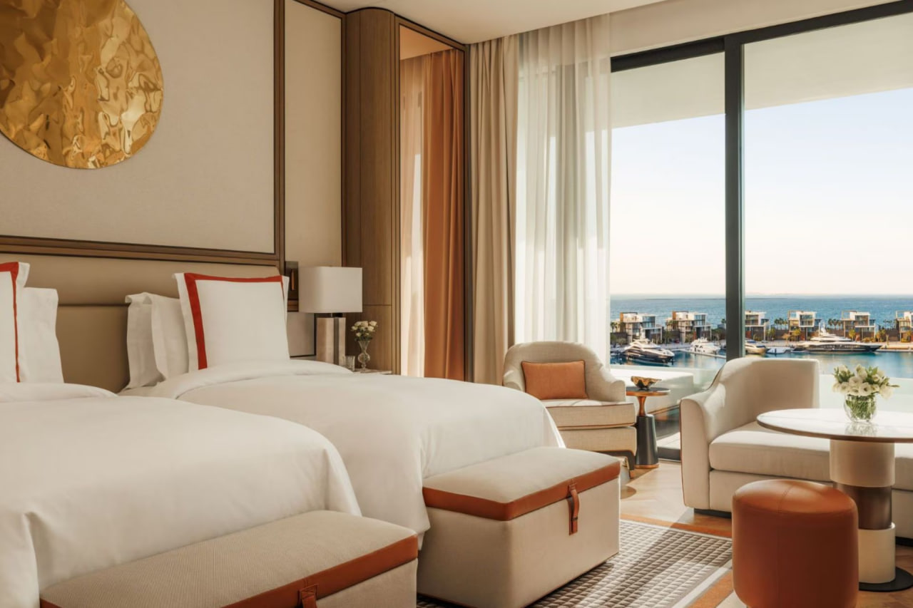 В семейном люксе гости размещаются в 2 спальнях на двуспальных/односпальных кроватях, есть гостиная с диваном, гардеробная, терраса видом на городской пейзаж и пристань для яхт. Ванная комната оснащена тропическим душем и ванной, феном, халатами, тапочками, гостиничной косметикой. В комплектации телевизор, мини-бар, Wi-Fi, кофемашина, коврик для йоги, услуги батлера, доступ в Iliana Pool Club.