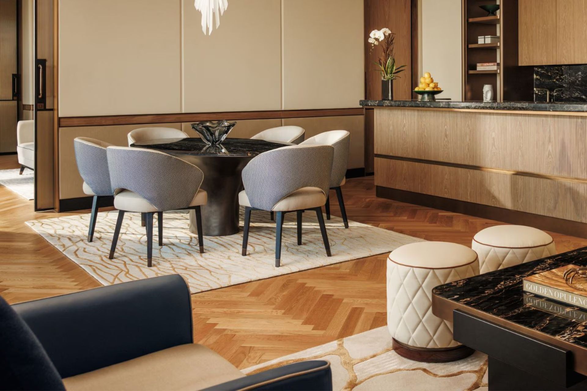 Роскошный люкс оборудован 2 спальнями с двуспальными кроватями, гардеробной, гостиной с мягкой мебелью, кухней, обеденной зоной, ванной комнатой с душем и джакузи, просторной террасой. Среди удобств Wi-Fi, телевизор, мини-бар, кофемашина, халаты, тапочки, фен, набор гостиничной косметики, виниловый проигрыватель, телескоп для наблюдения за звездами, коврик для йоги, услуги батлера, доступ в Iliana Pool Club.