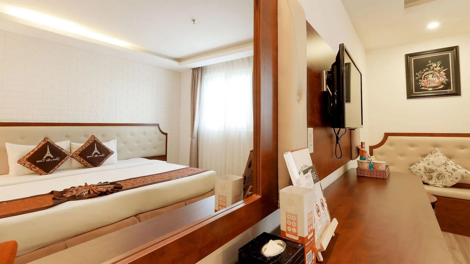 Делюкс с видом на город предлагает спальню с двумя односпальными кроватями, ванную комнату с душем/ванной. К услугам гостей Wi-Fi, кондиционер, телевизор, телефон, мини-холодильник, сейф, набор для приготовления чая и кофе, фен.