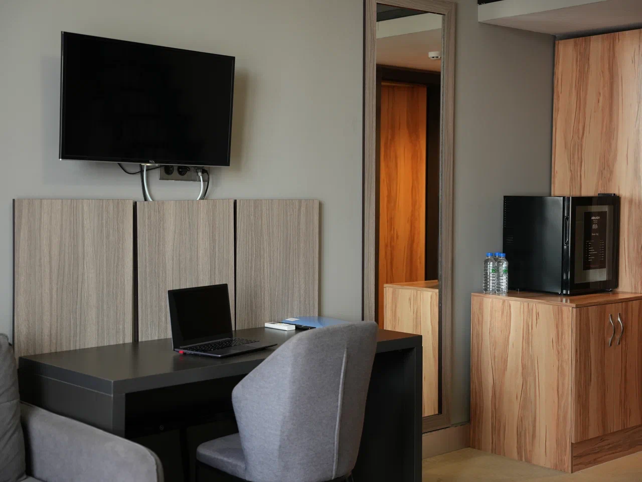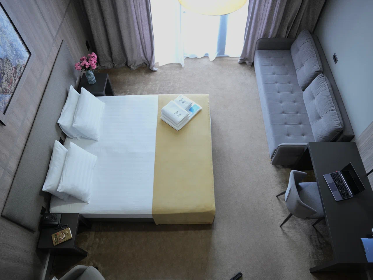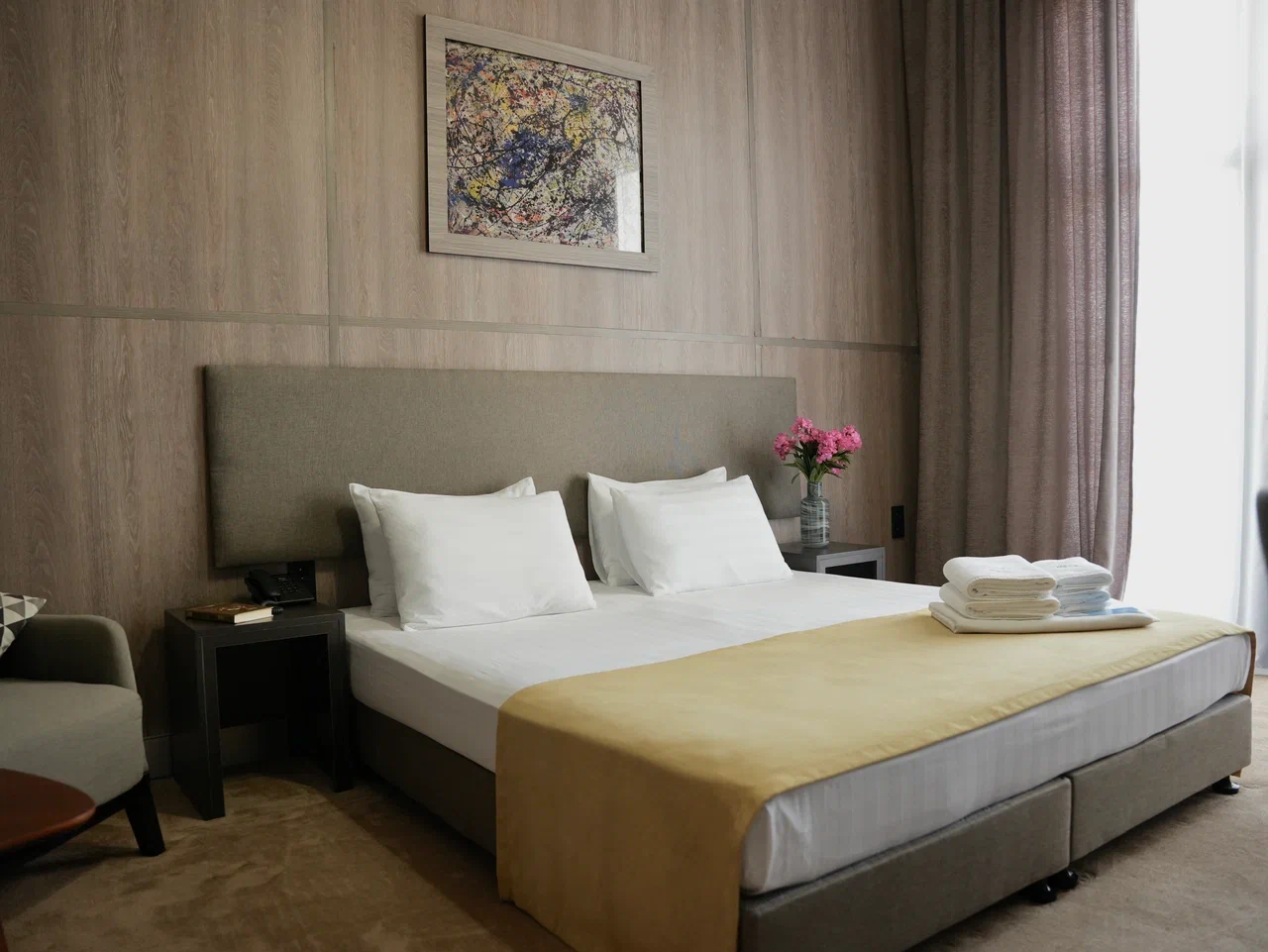 Отель не плохой но номер уже требует ре онта для оплаты в 9000р за сутки и холодильника нет какой то винный шкаф с вентилятором который не работает это слишком дороговато рядом есть отели гораздо цевилные если отель не отреагирует на жалобы то будут терять клиентов потому что рядом отели более цевильные и дешевле