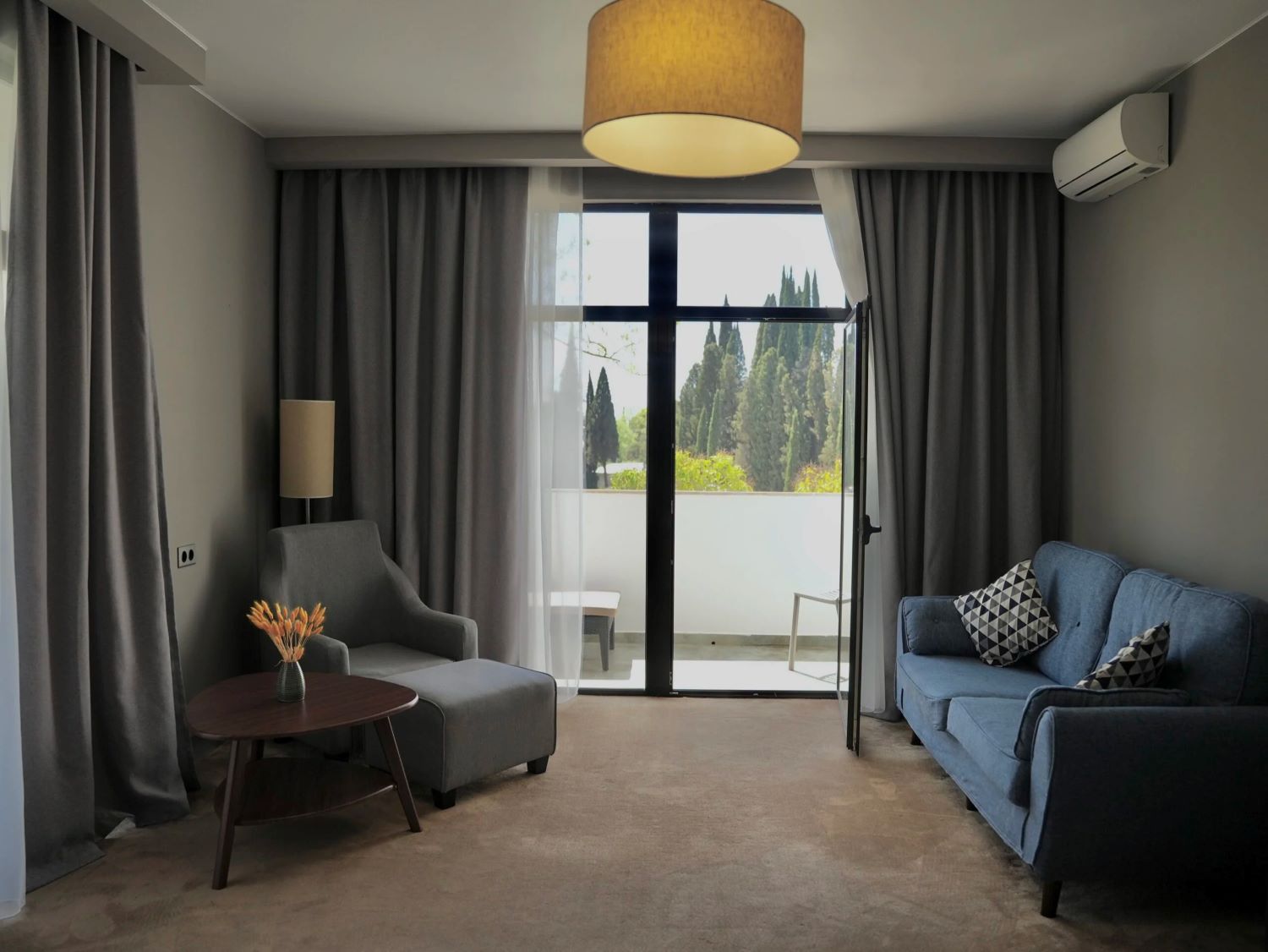В данный момент находимся в отеле Абааш.Выбор был сделан по рекомендации Бюро путешествий WonderLand(за что им огромное спасибо). Отзыв без прикрас. О таком расположении можно только мечтать.В шаговой доступности достопримечательности:Новоафонский монастырь,Новоафонский водопад,Храм Симона Канонита,Железнодорожная станция Псырцха, Дача Сталина.У нас с балкона прекрасный вид на водопад. Номера просторные,чистые,уютные. Театр начинается с вешалки,а отель с ресепшен.В этом отеле вас встретит отличный коллектив администраторов.Получаем ответ на любой вопрос,любая просьба рассмотрена и выполнена.Благодарим за отзывчивость и клиентоориентированность. Уборка в номере,смена полотенец;пополнение питьевой воды,чая и сахара систематически. Пользуясь случаем,хочется передать слова благодарности сотрудникам кухни и обеденного зала.Приветливые,вежливые,тактичные администраторы идеально поддерживают чистоту и контакт с посетителями.Отдельная благодарность поварам за их труд.Вкусно ВСЁ.Моя слабость-варенье из лимонов и варенье из фейхоа. В нашей компании четыре человека и все поддерживают моё мнение в отношении данного отеля. Без лишнего пафоса-СПАСИБО всему коллективу отеля Абааш.Удачи вам и всех благ!